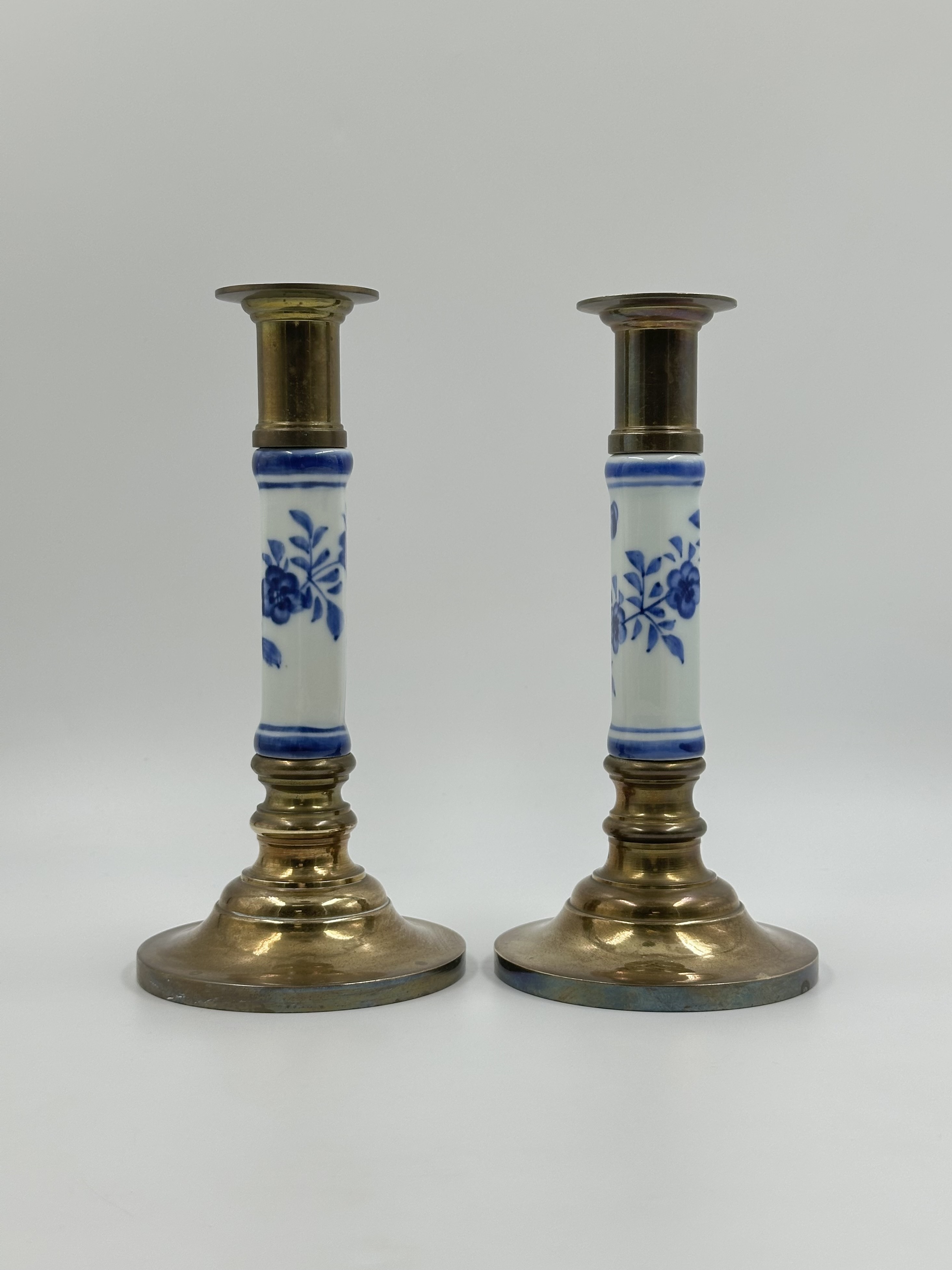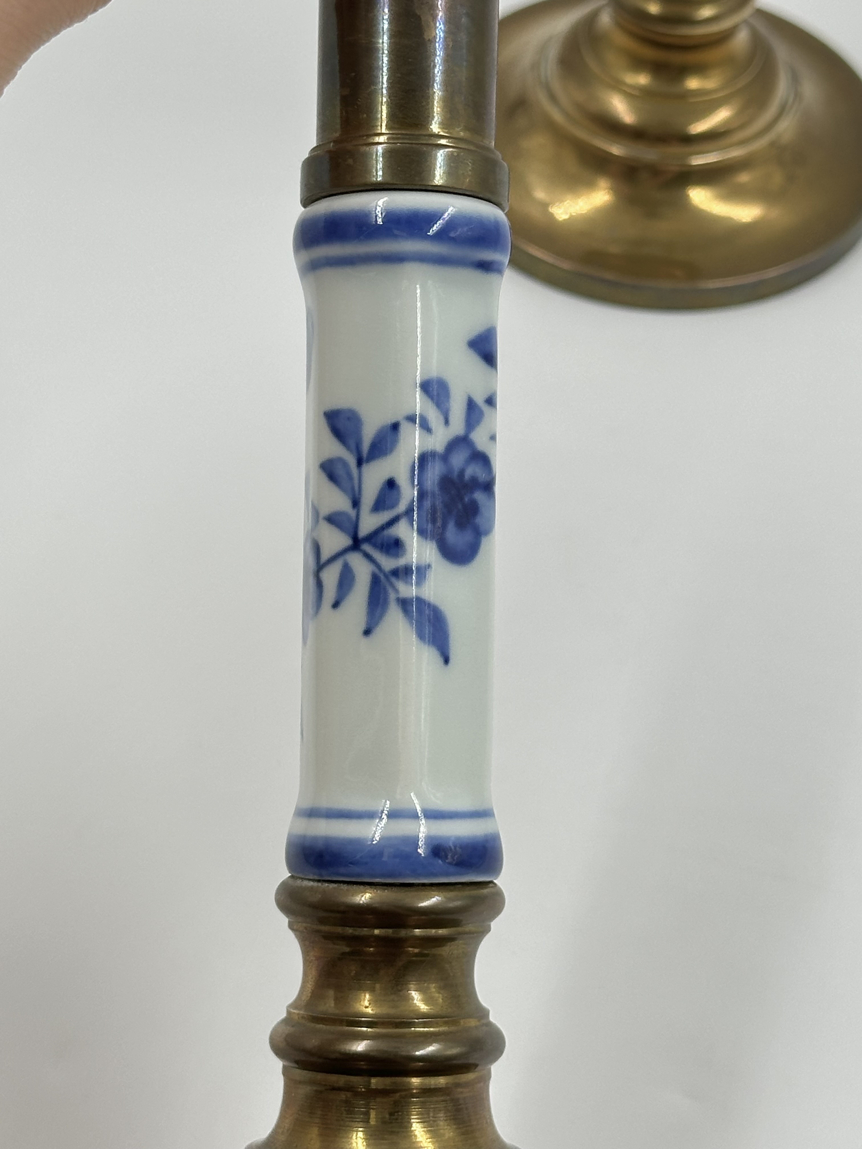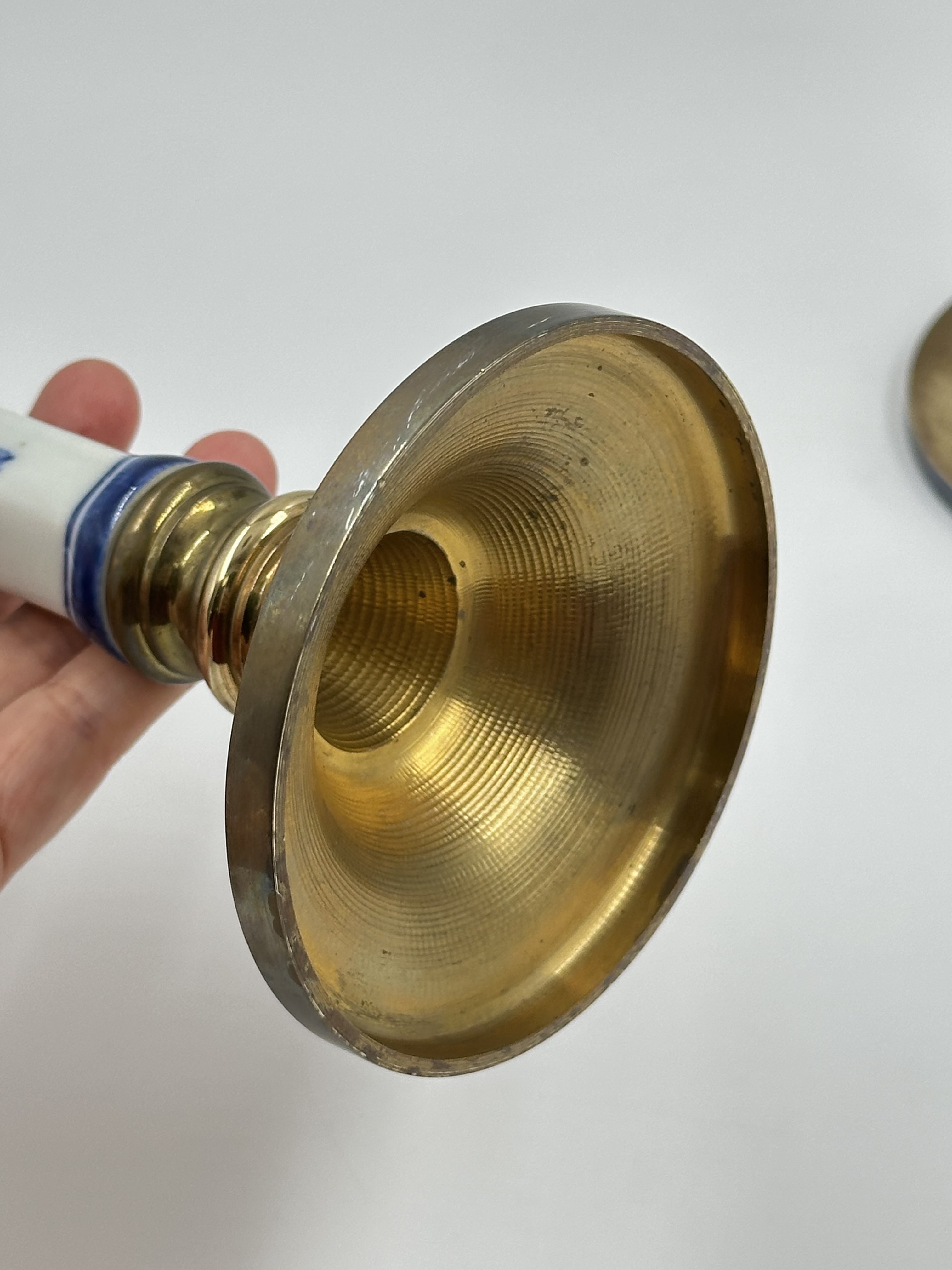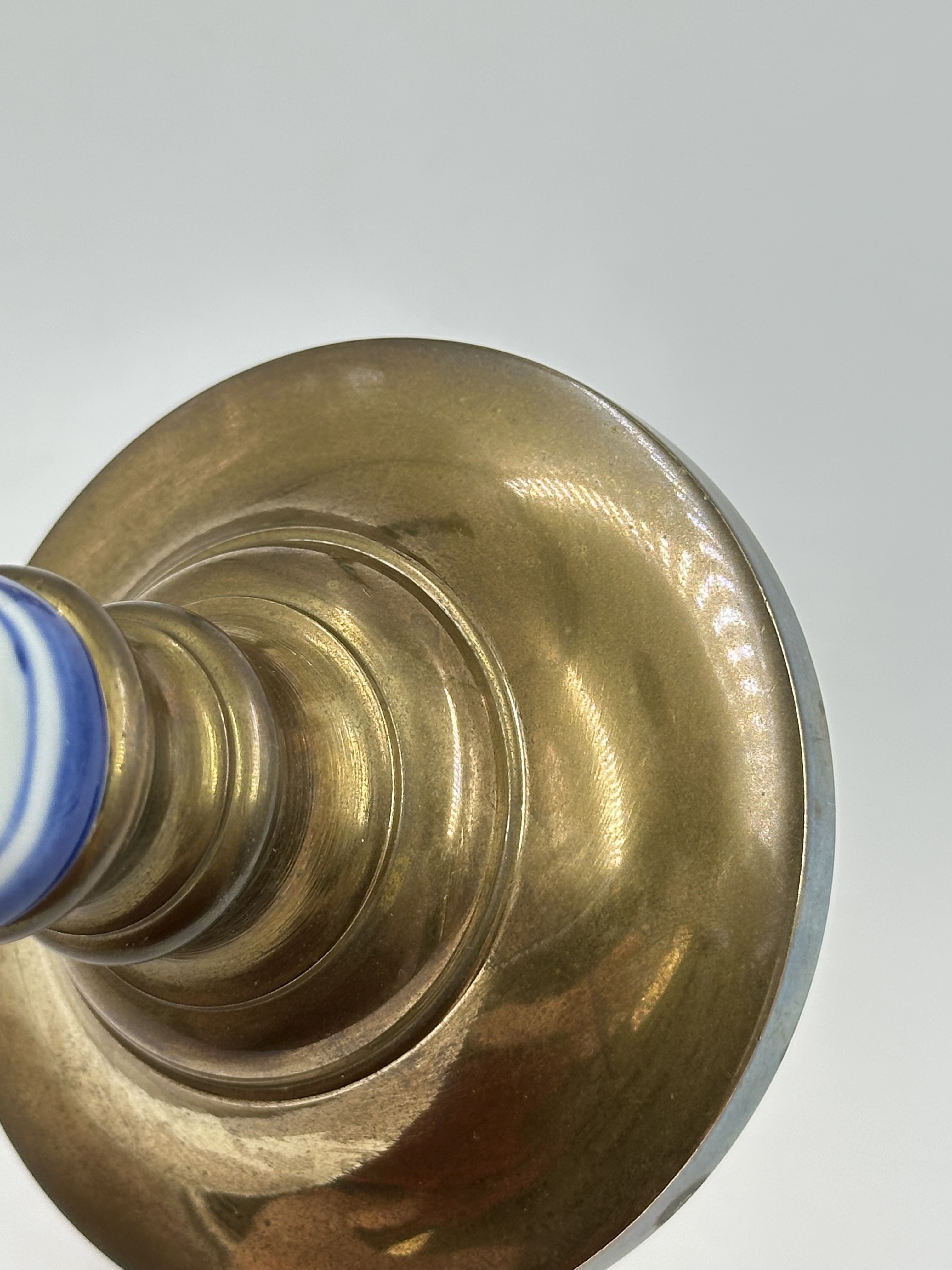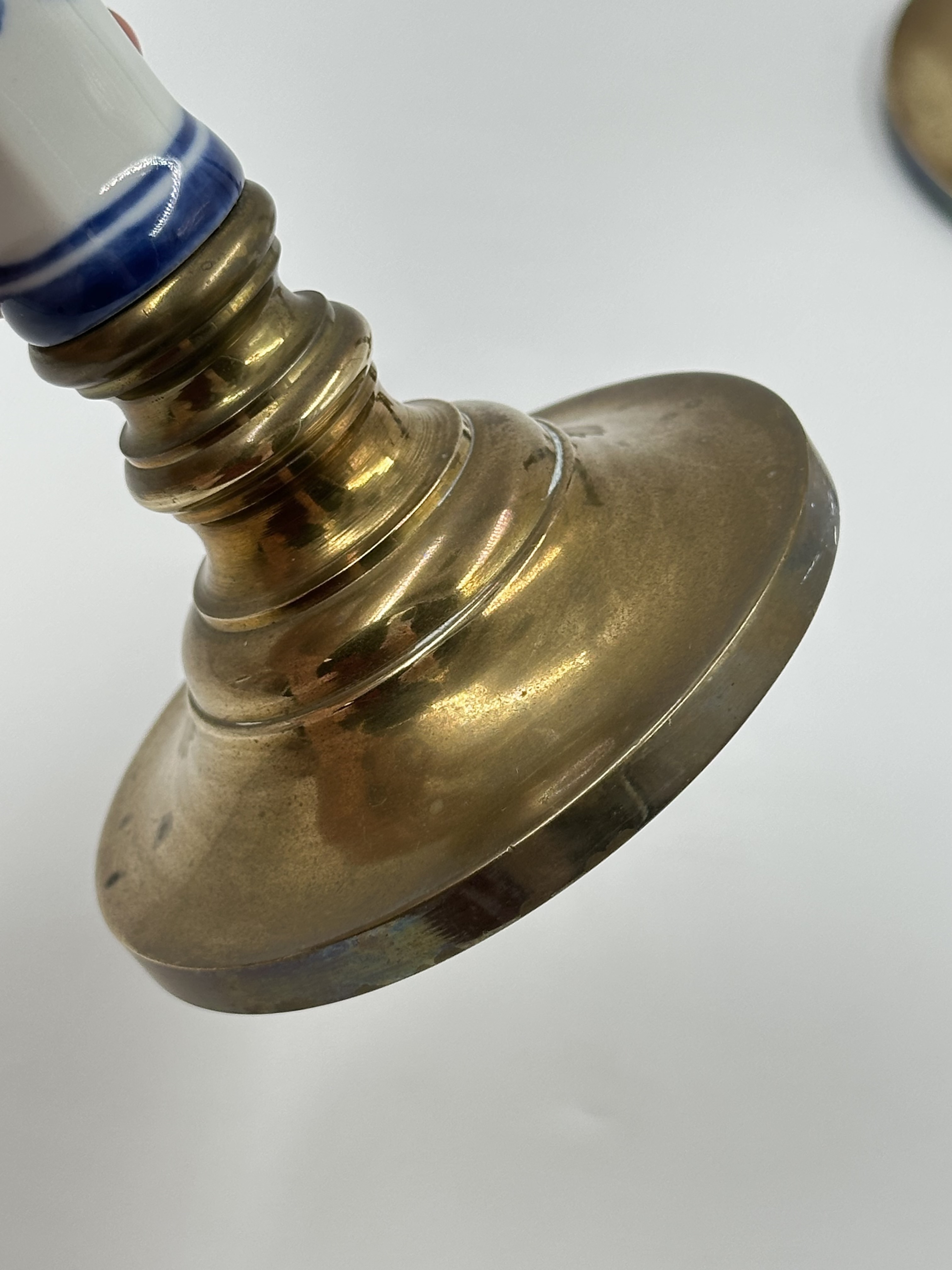 Латунь, керамика. Присутствуют следы времени, потемнения. Высота 18,8 см и 19см.