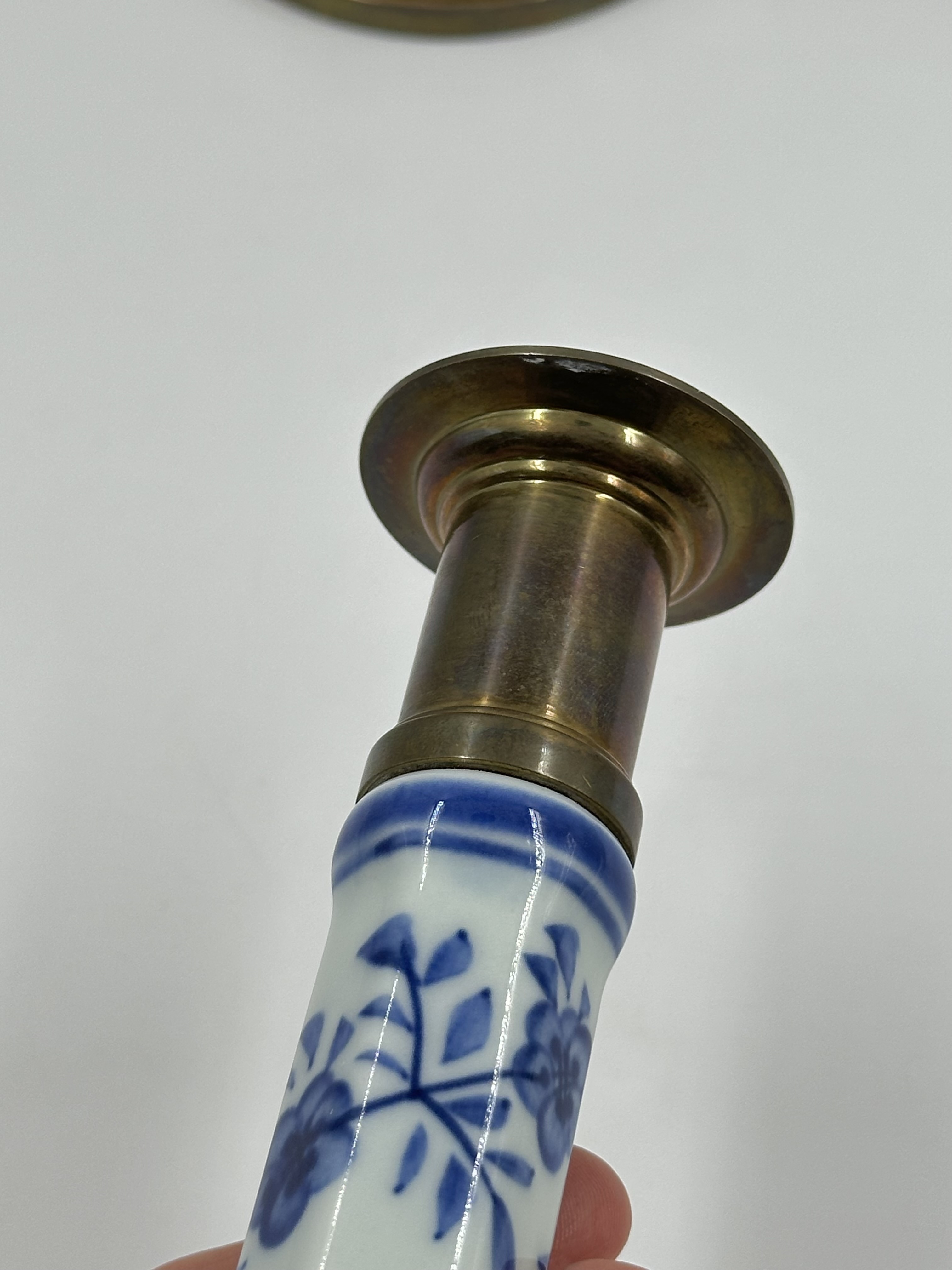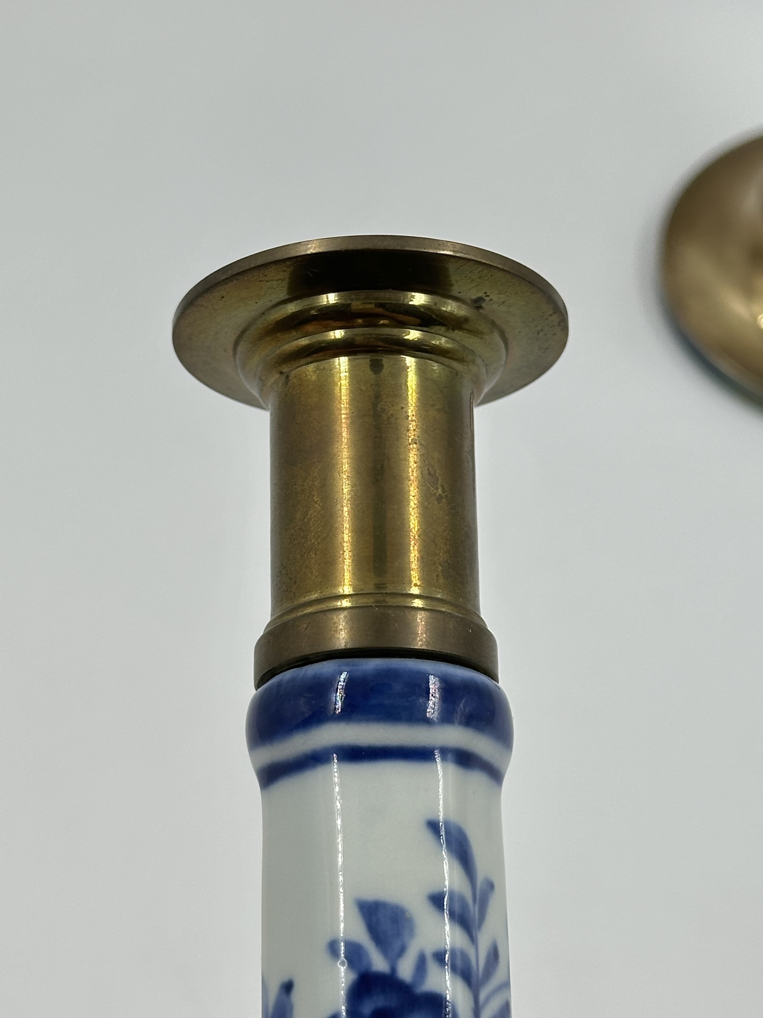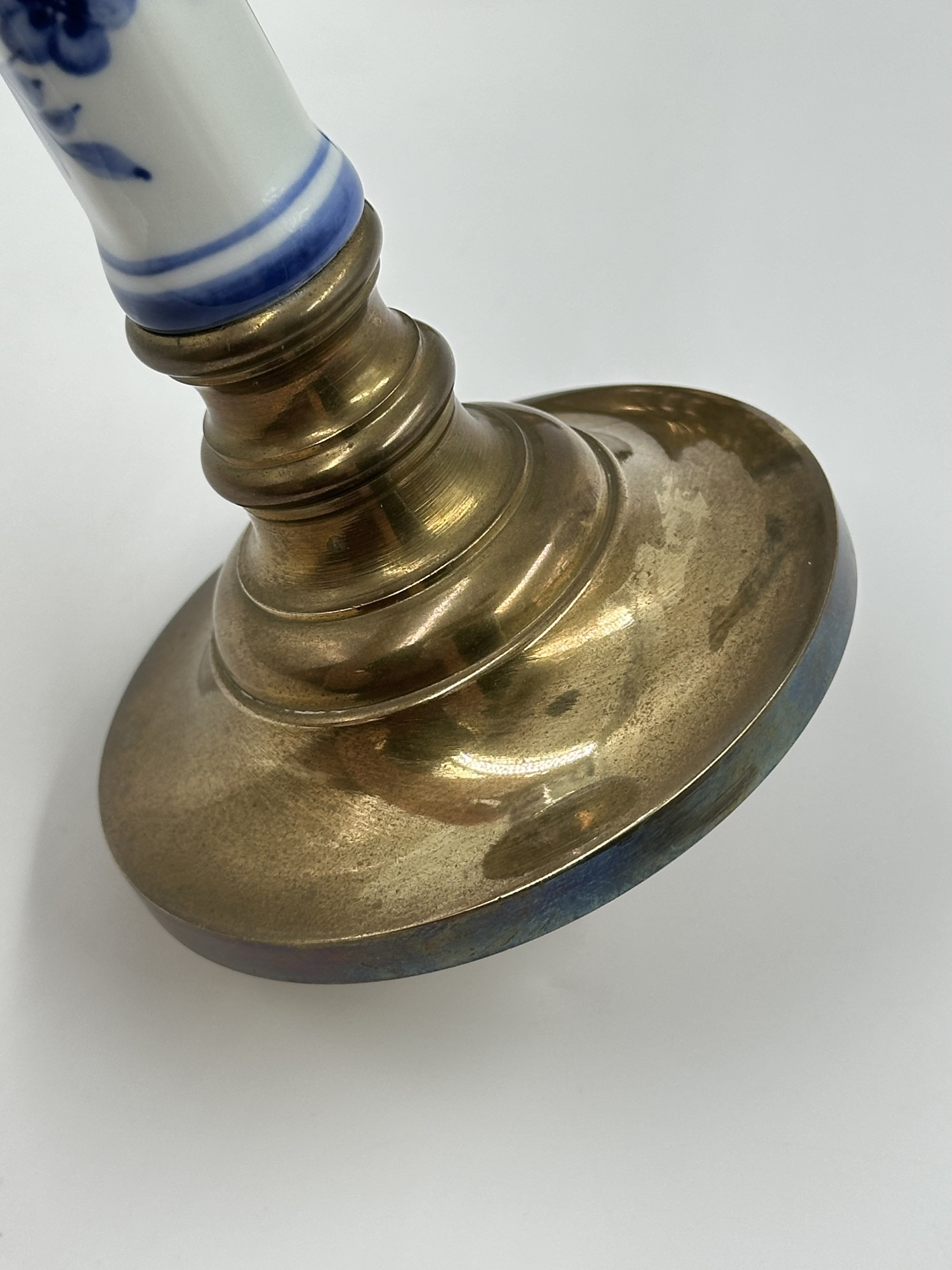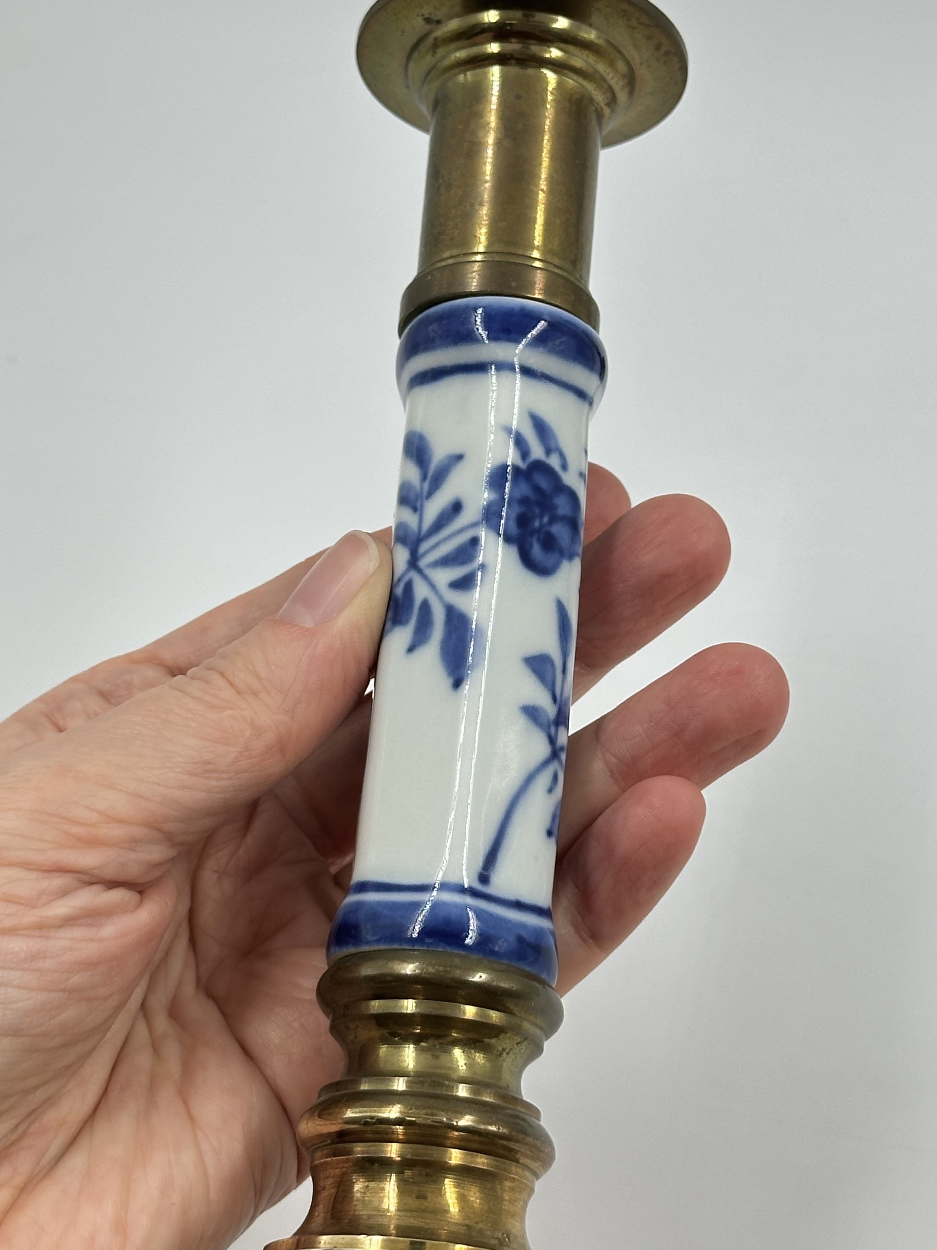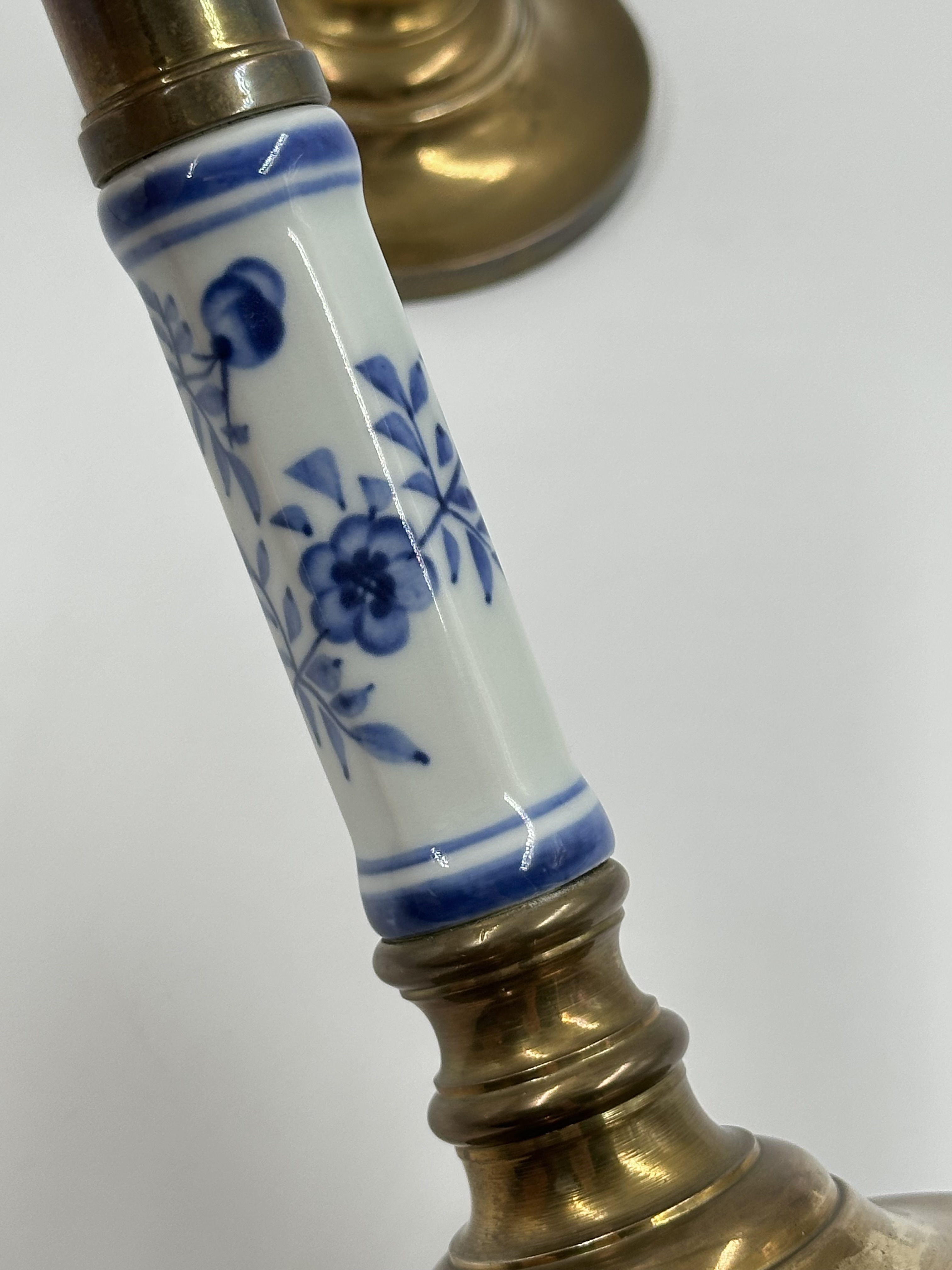Латунь, керамика. Присутствуют следы времени, потемнения. Высота 18,8 см и 19см.