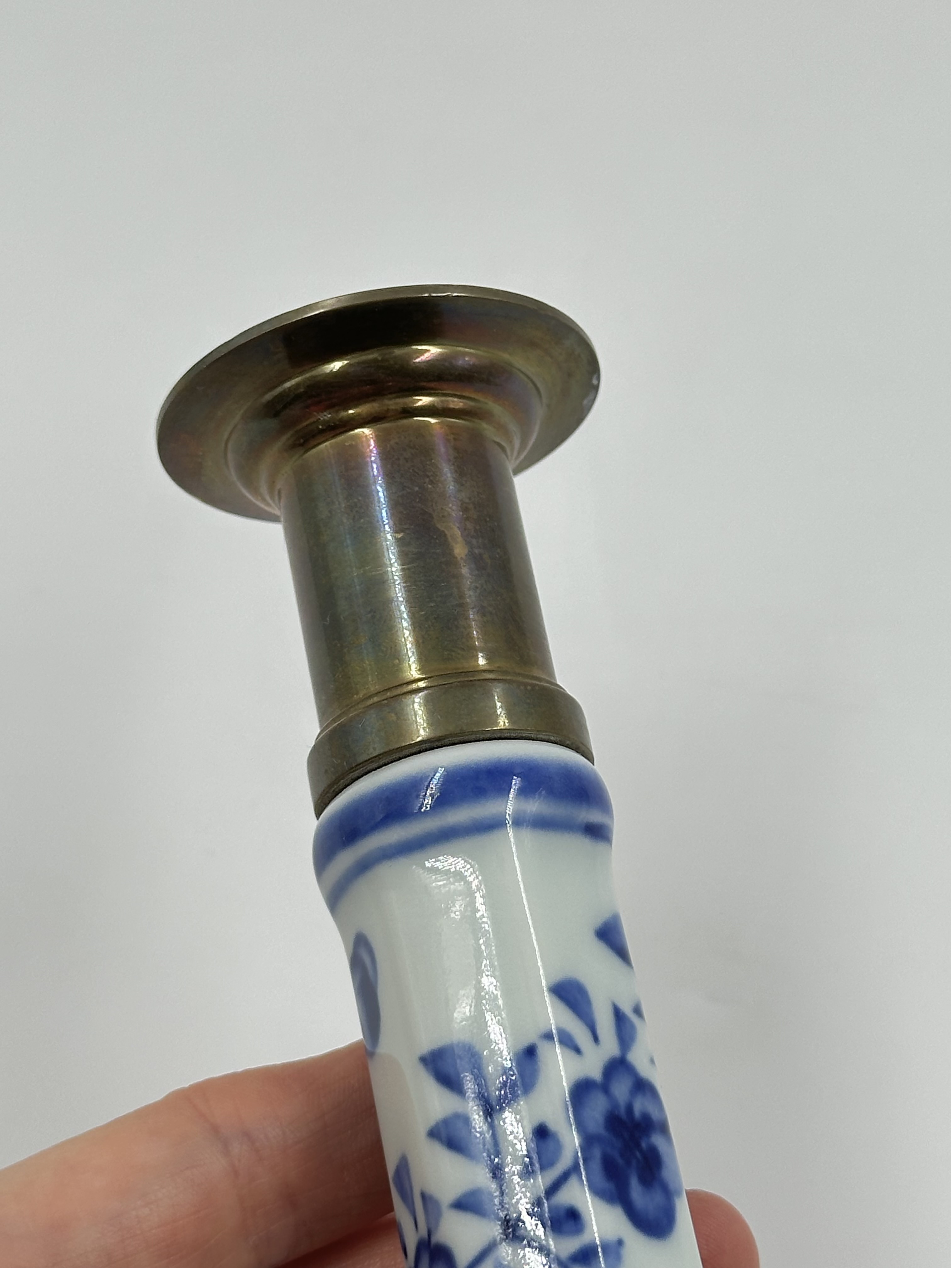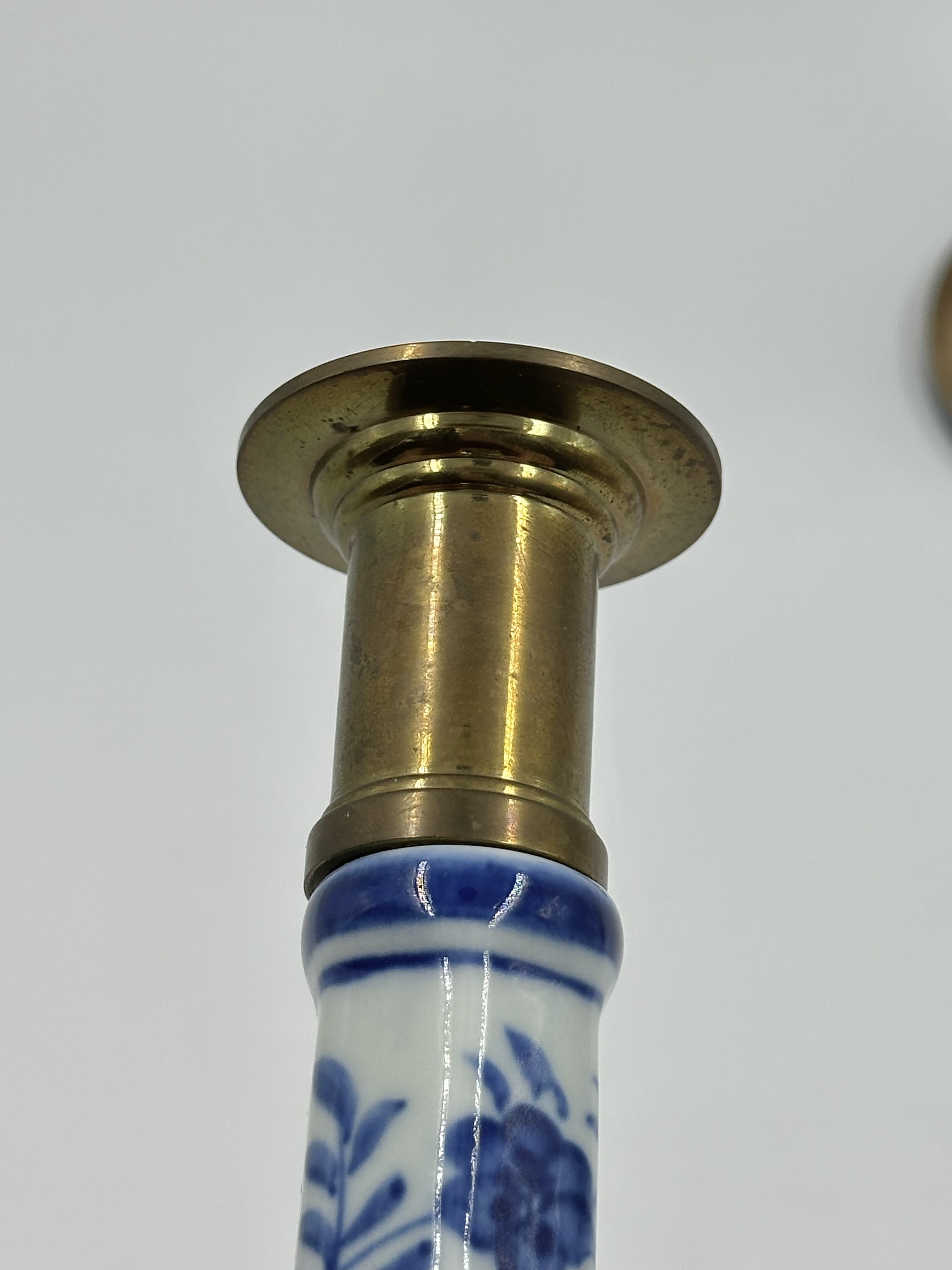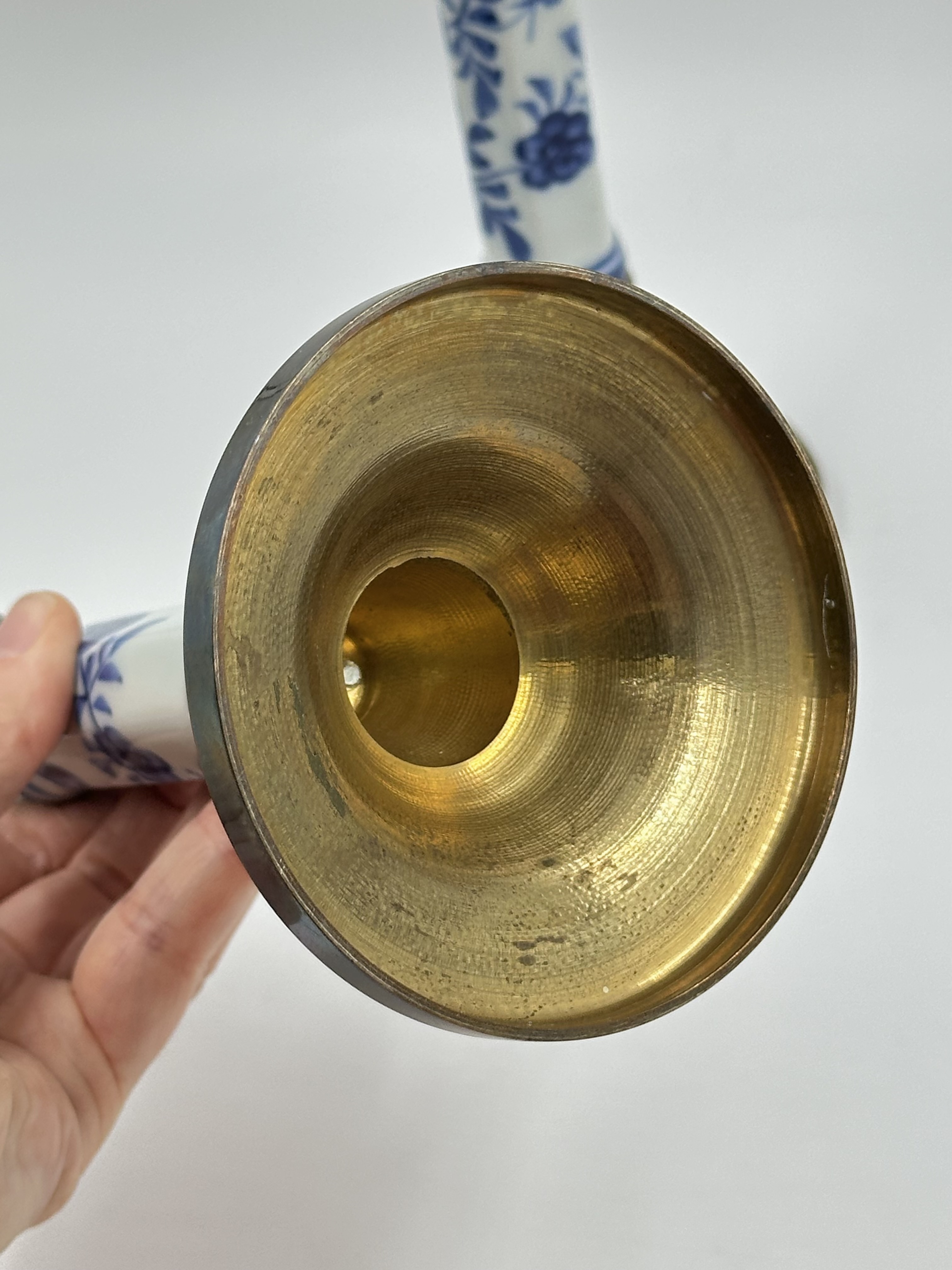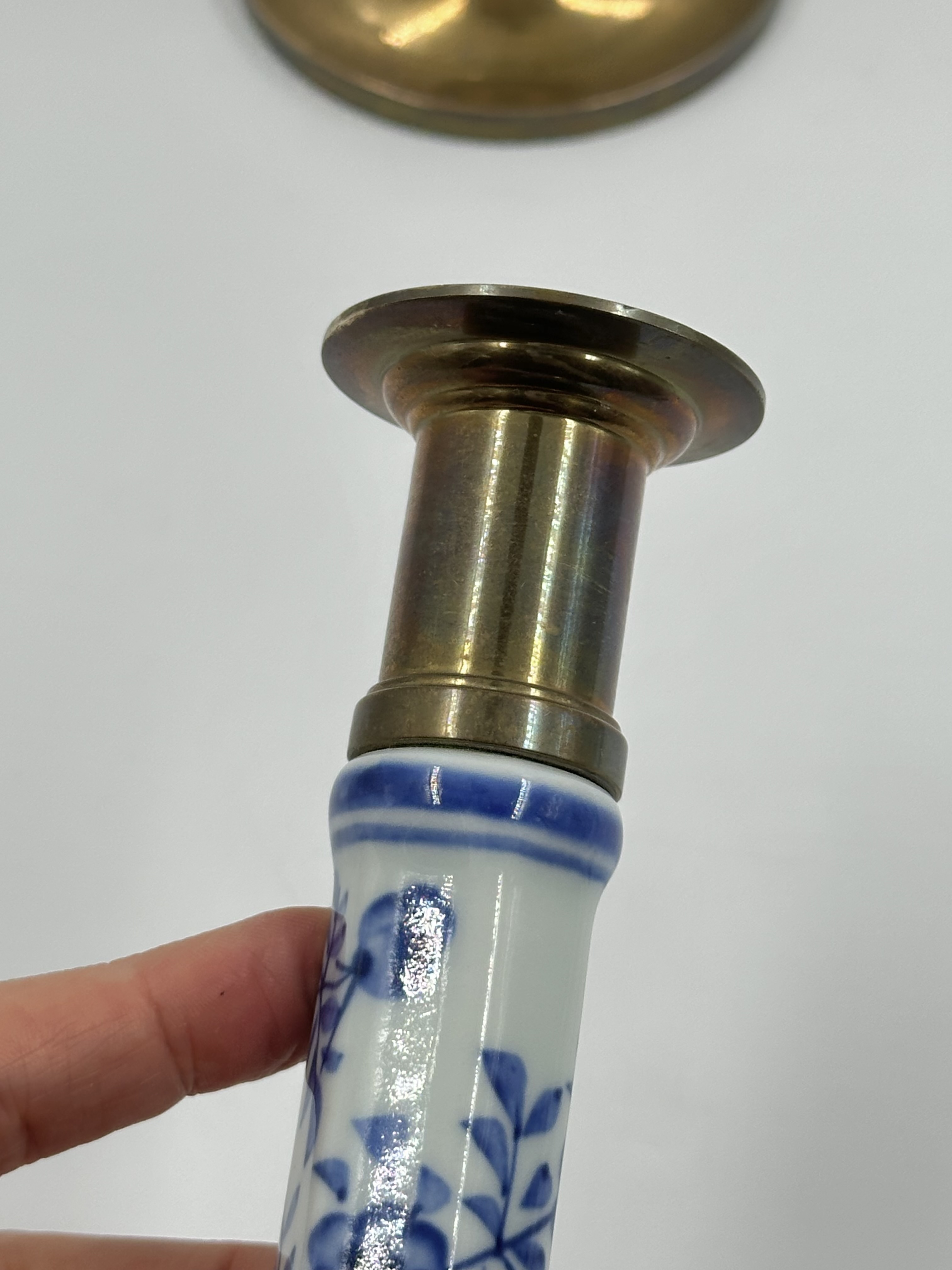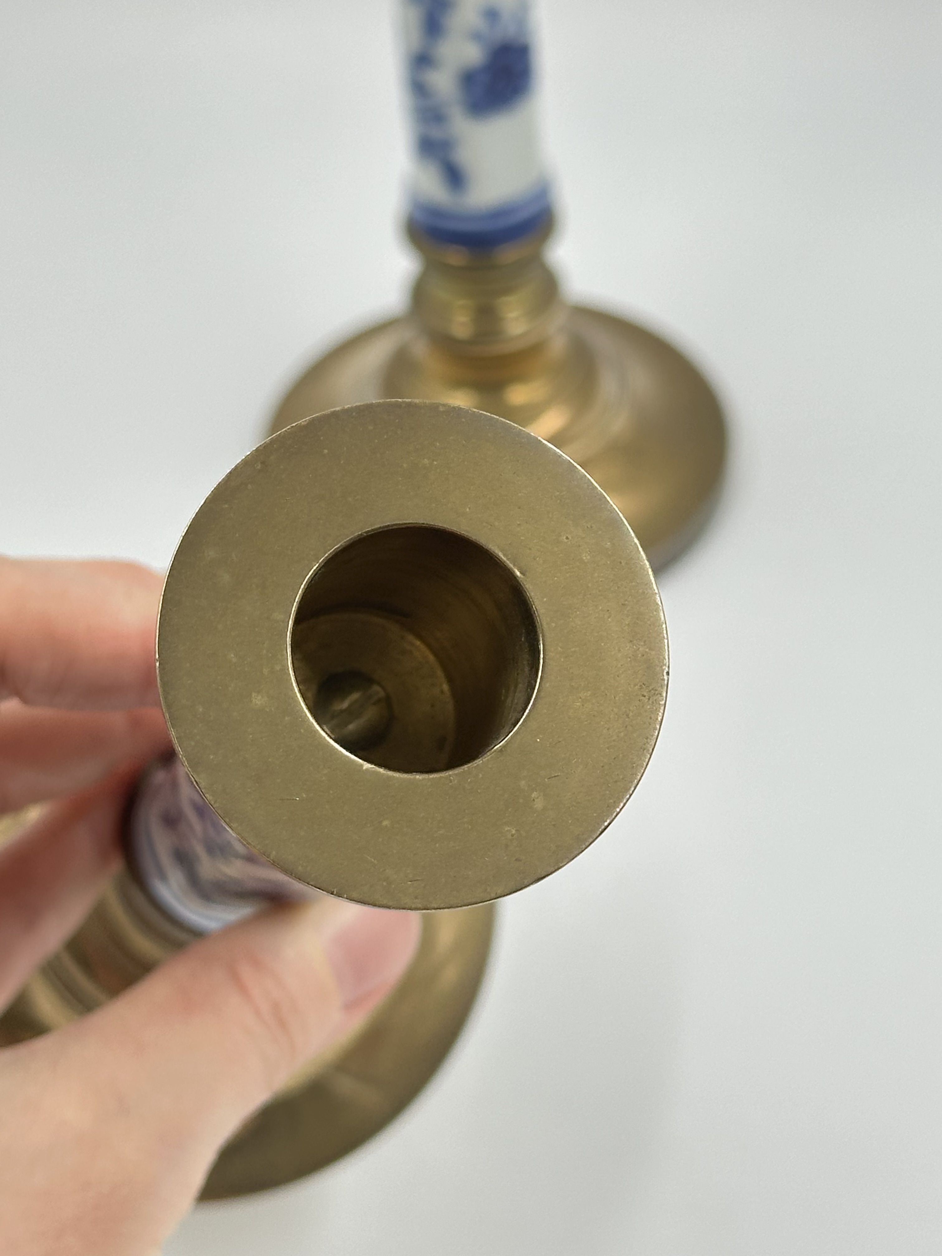 Латунь, керамика. Присутствуют следы времени, потемнения. Высота 18,8 см и 19см.