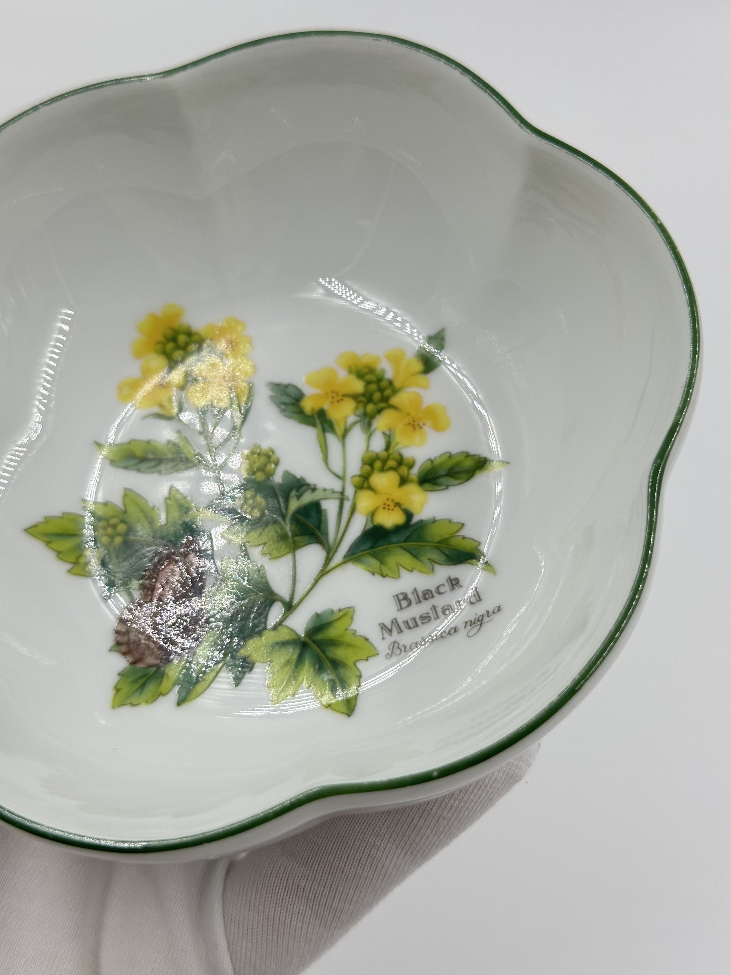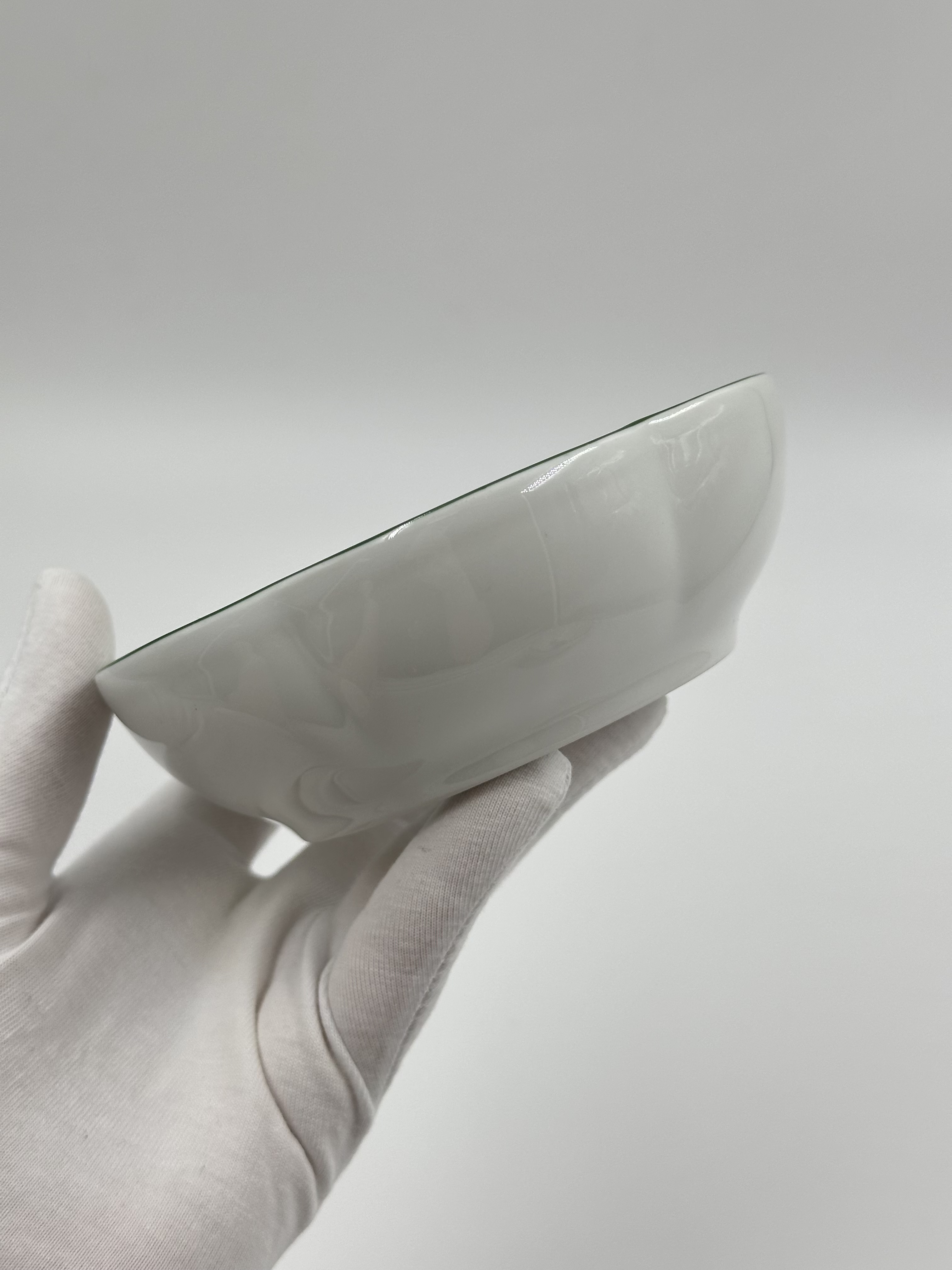 Фарфор. По краю присутствуют небольшие потертости деколи.