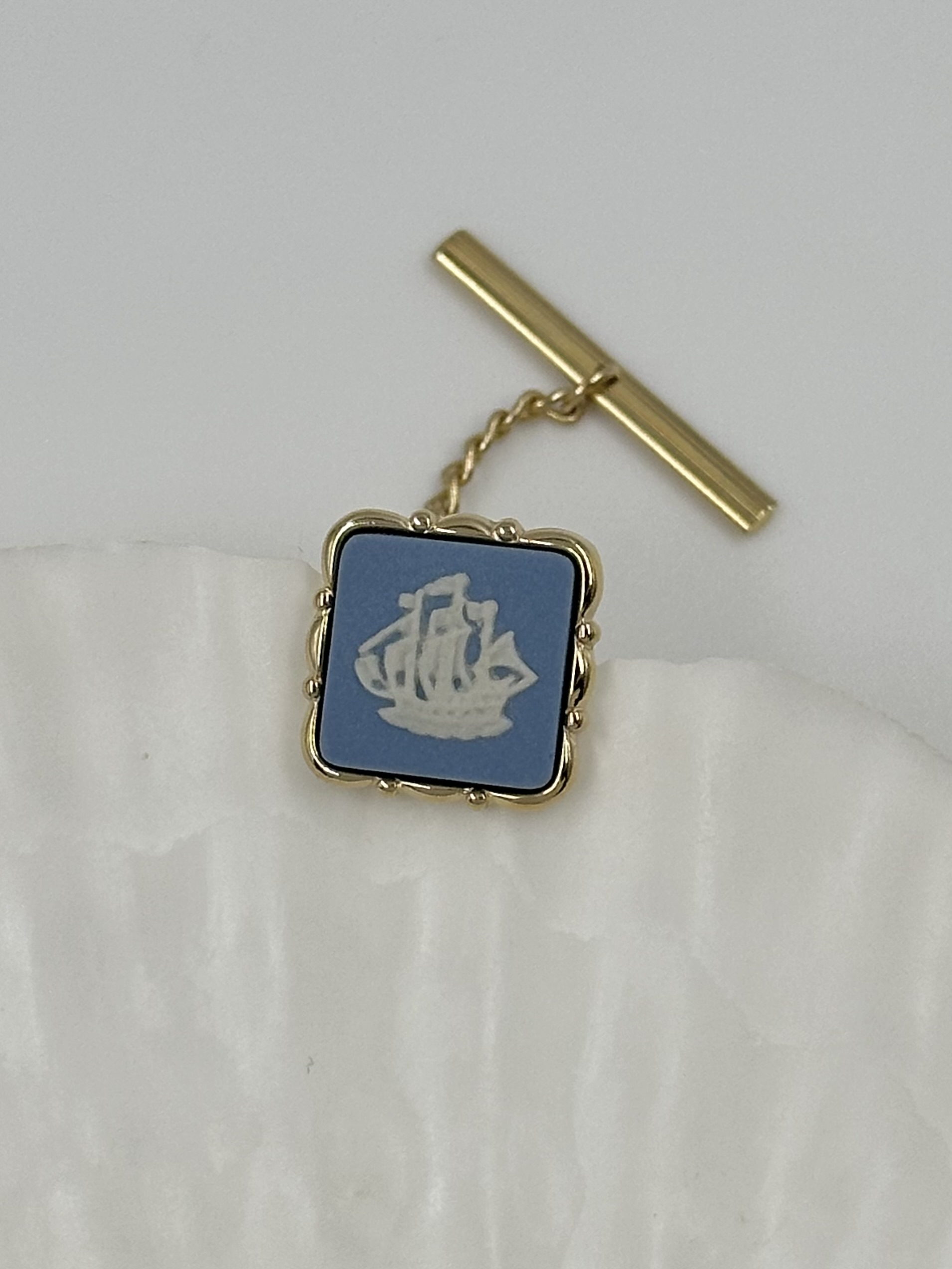 Бижутерный сплав, позолота, фарфор.