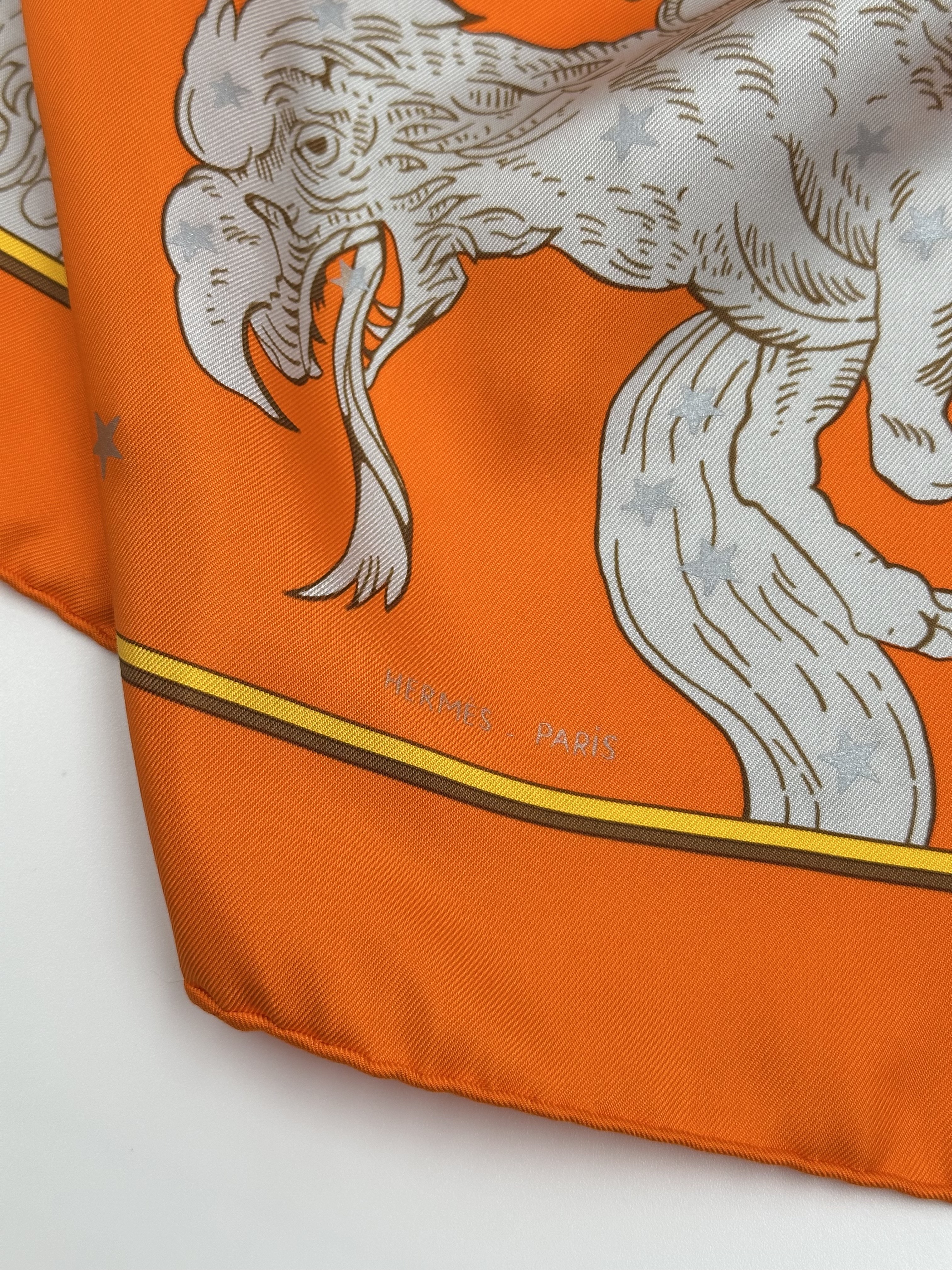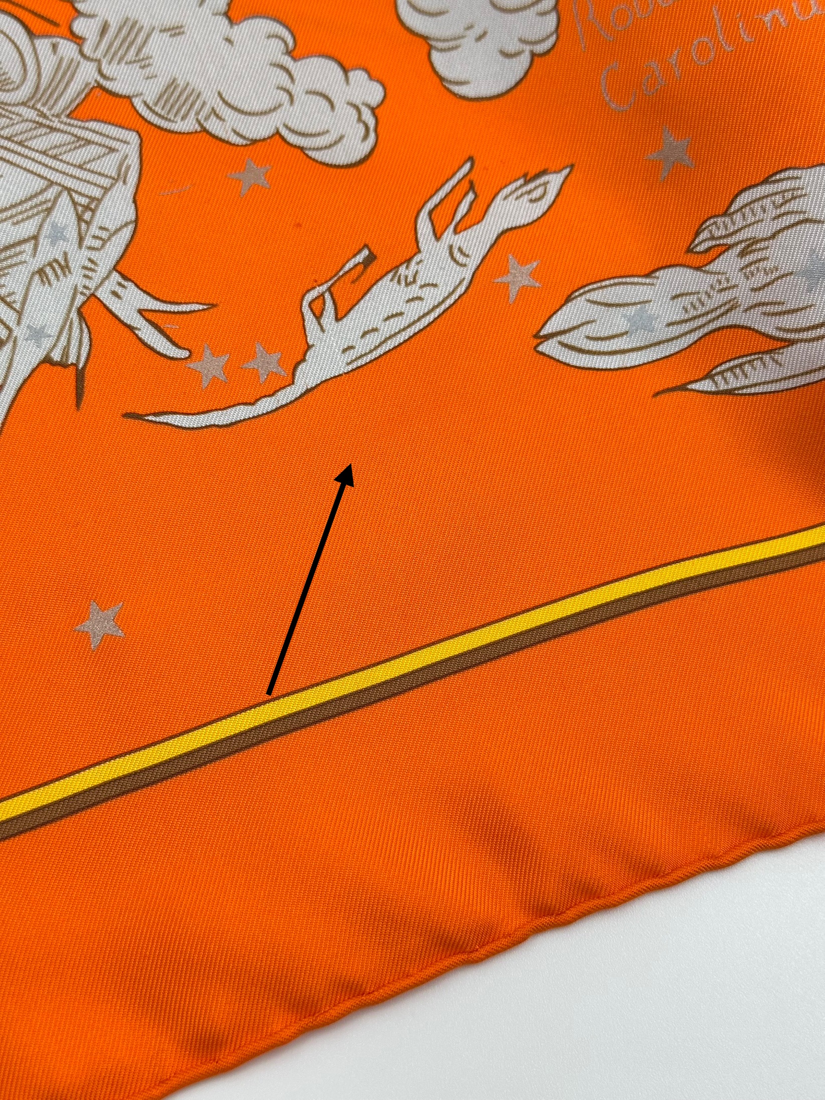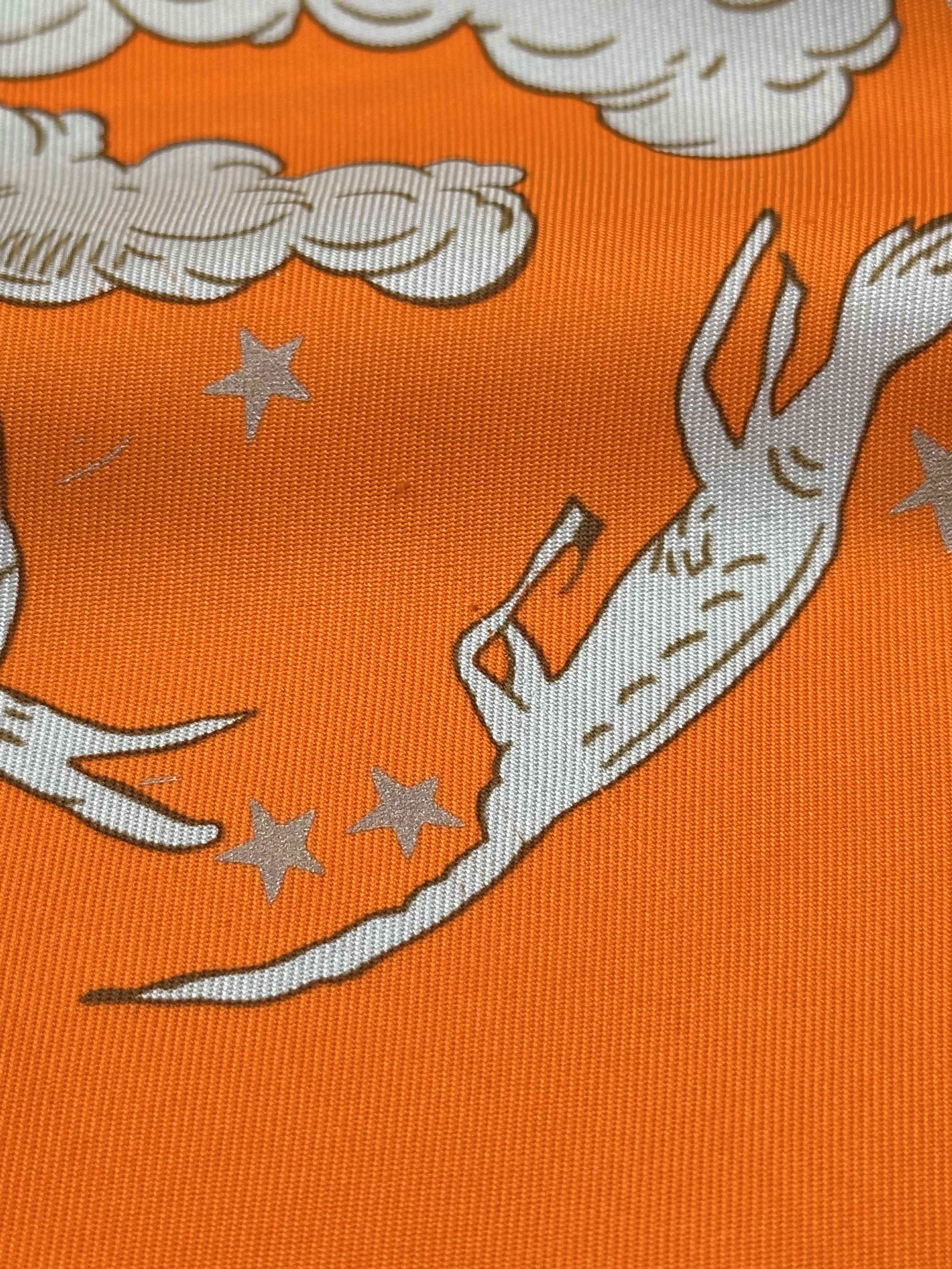Шёлк. Присутствует небольшая "затяжка". Размер 89 х 89см.