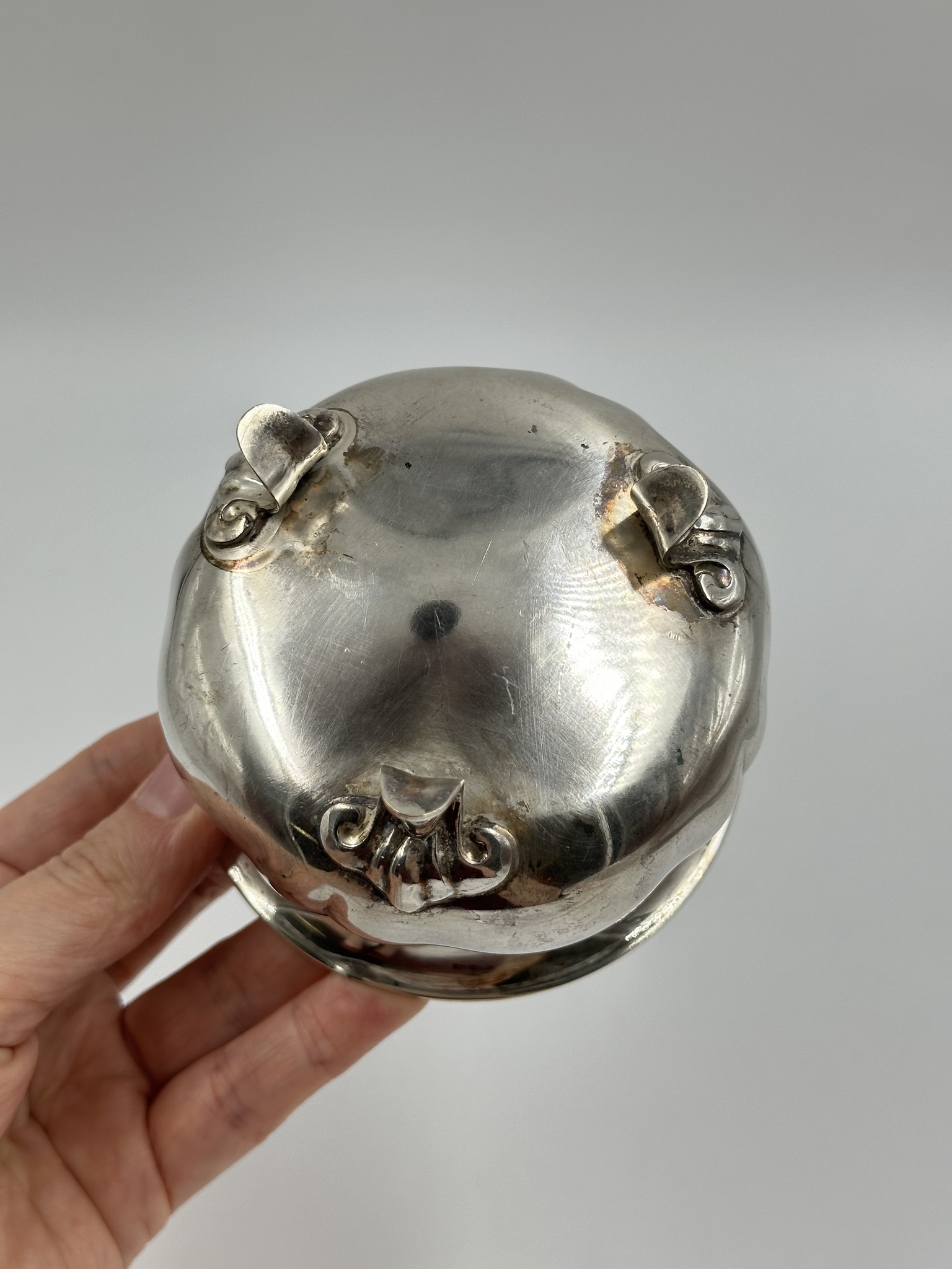 Присутствует небольшая патина, потертости покрытия. Диаметр 9см. Высота 6,2см.