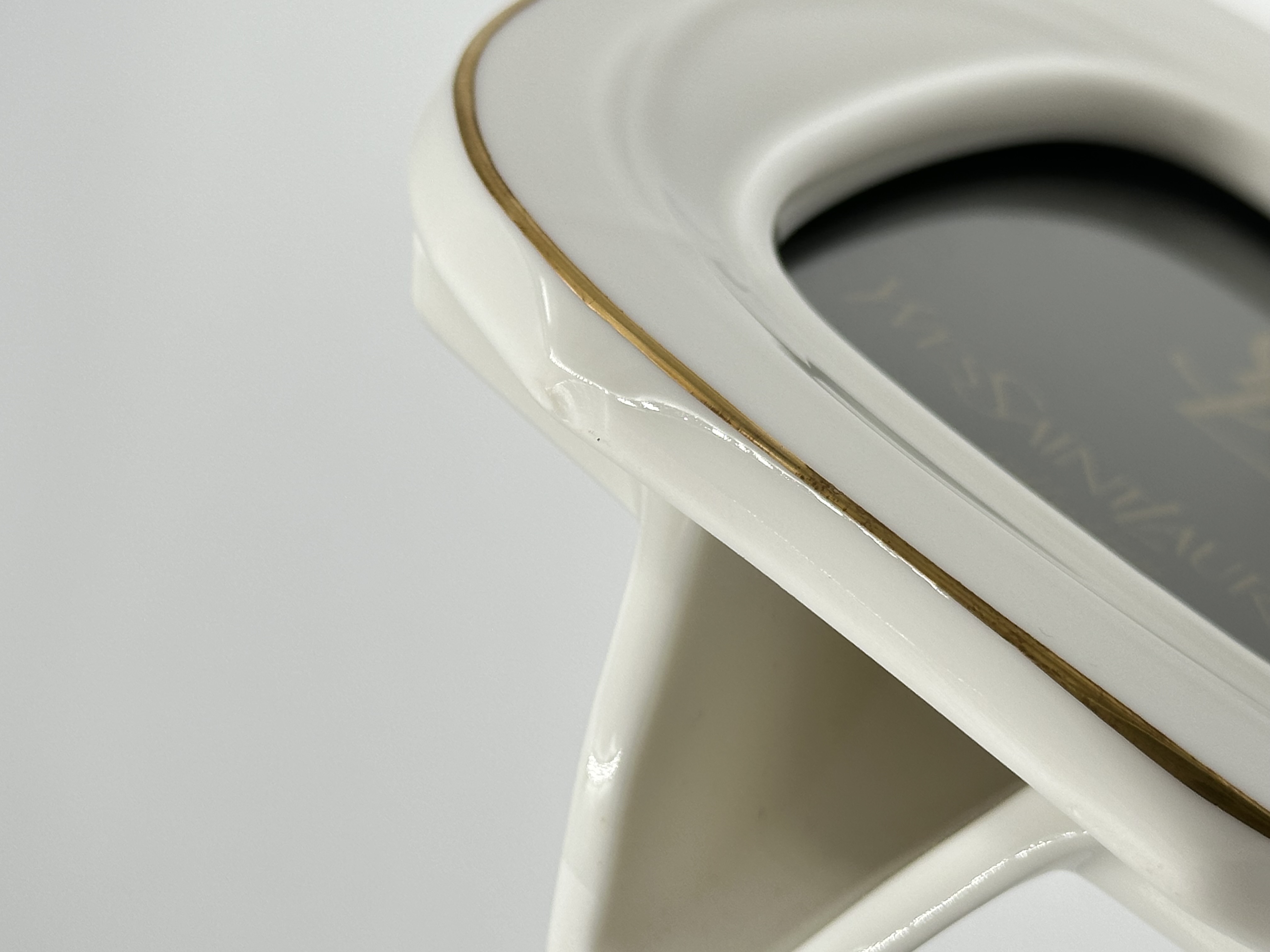 Фарфор. Вставка - пластик. Размер рамки 14 х 16,5см. Размер фото 8,3 х 13см. На основании присутствует небольшой скол.