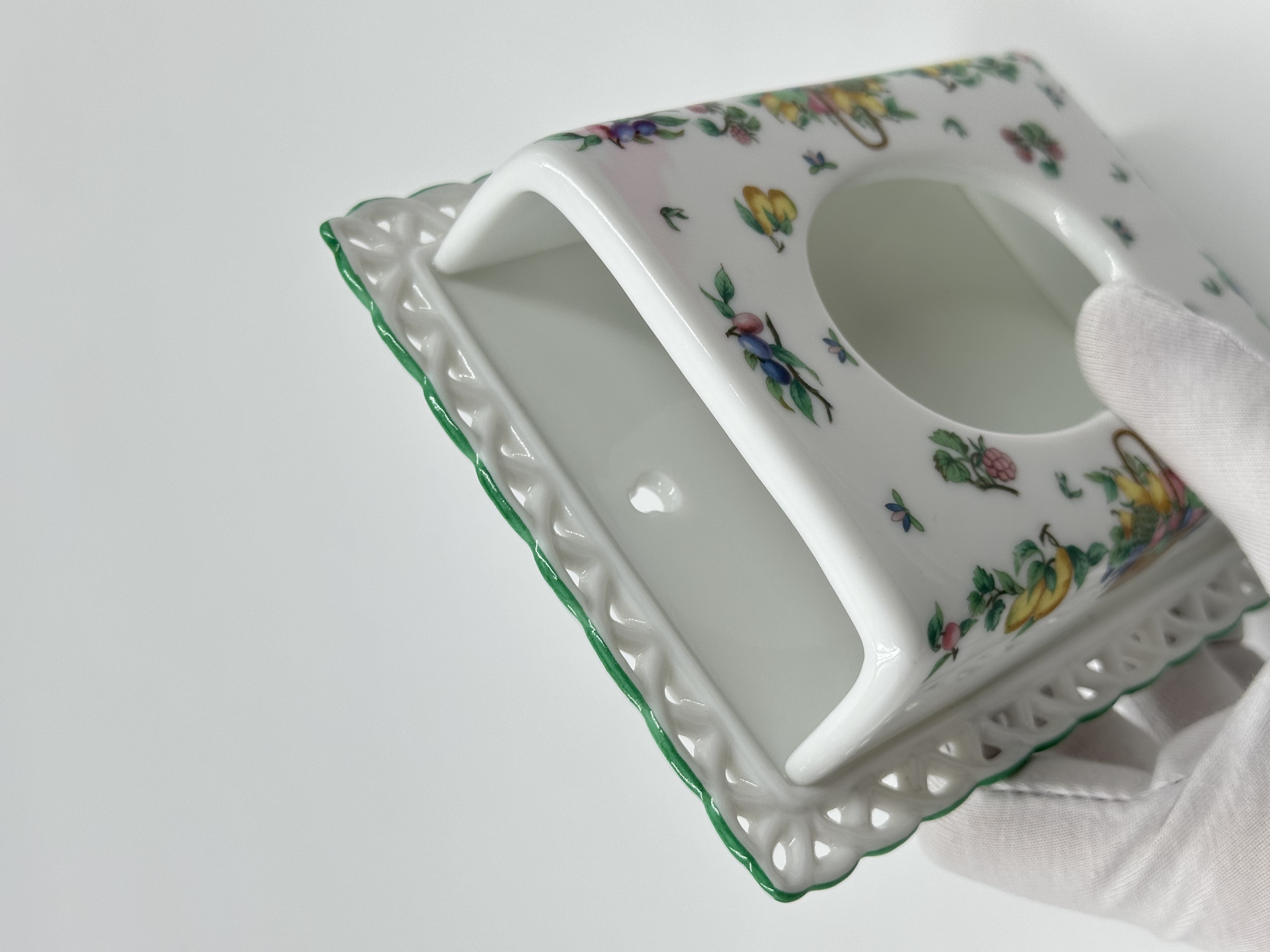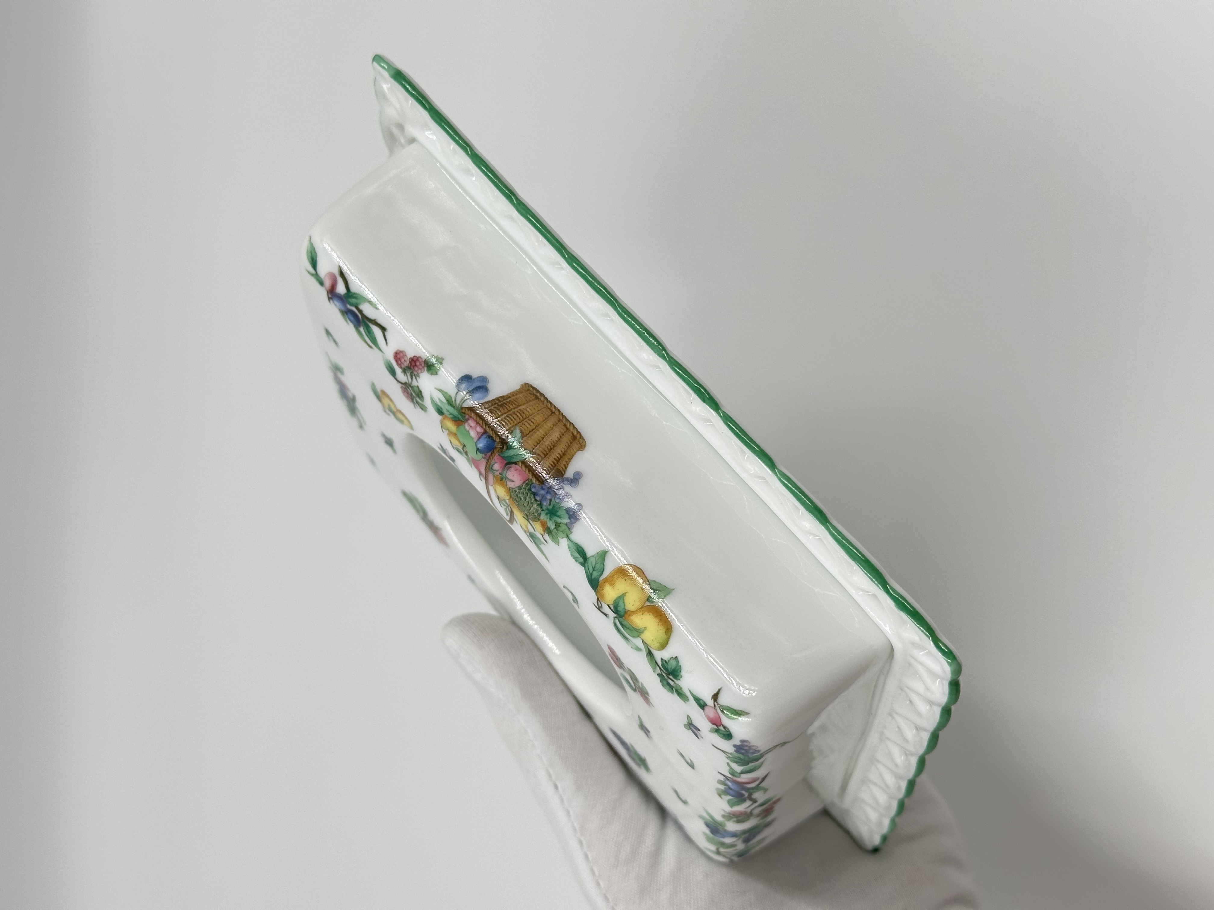 Фарфоровая салфетница. Внешний размер 11,5 х 15см.