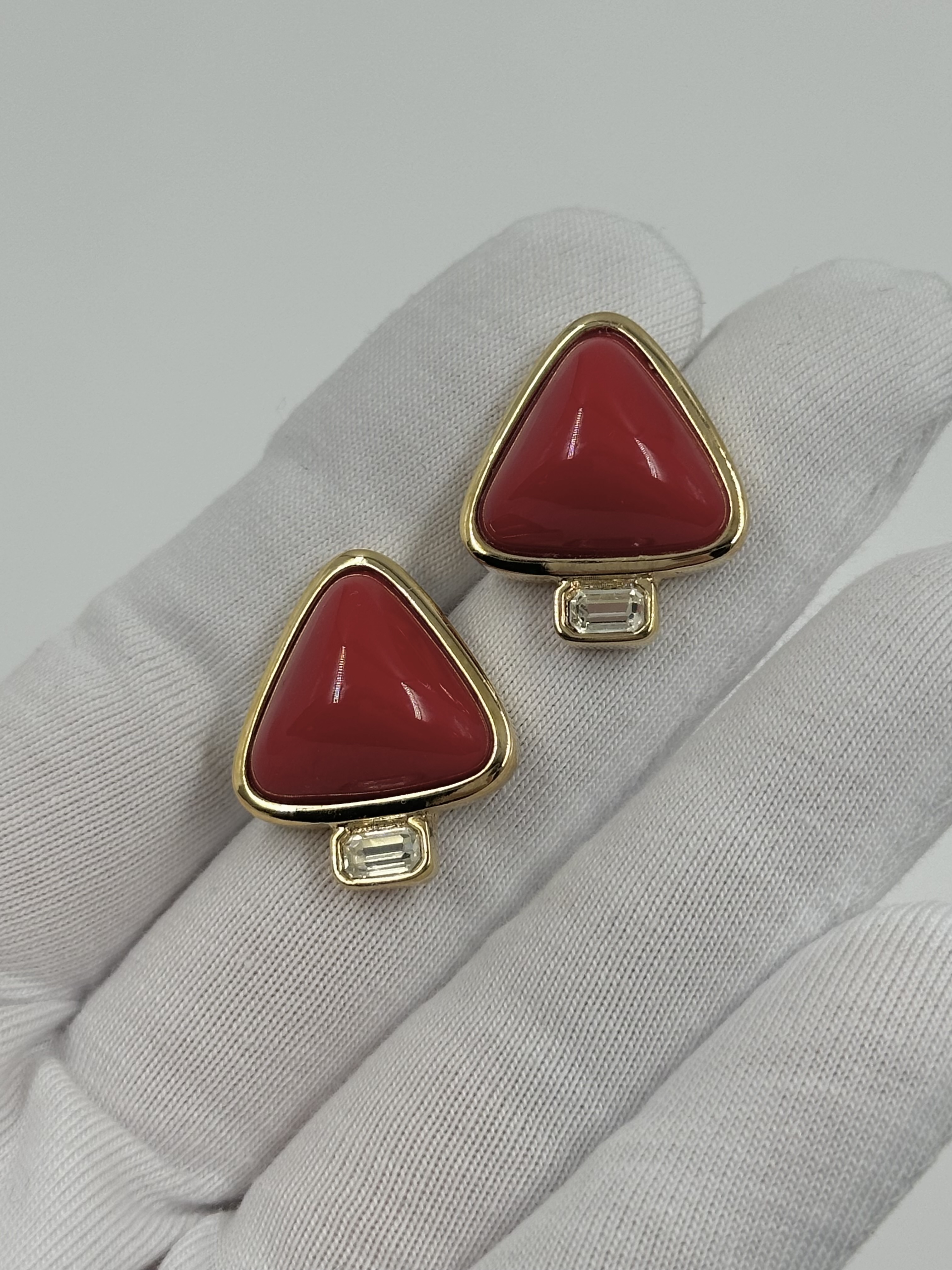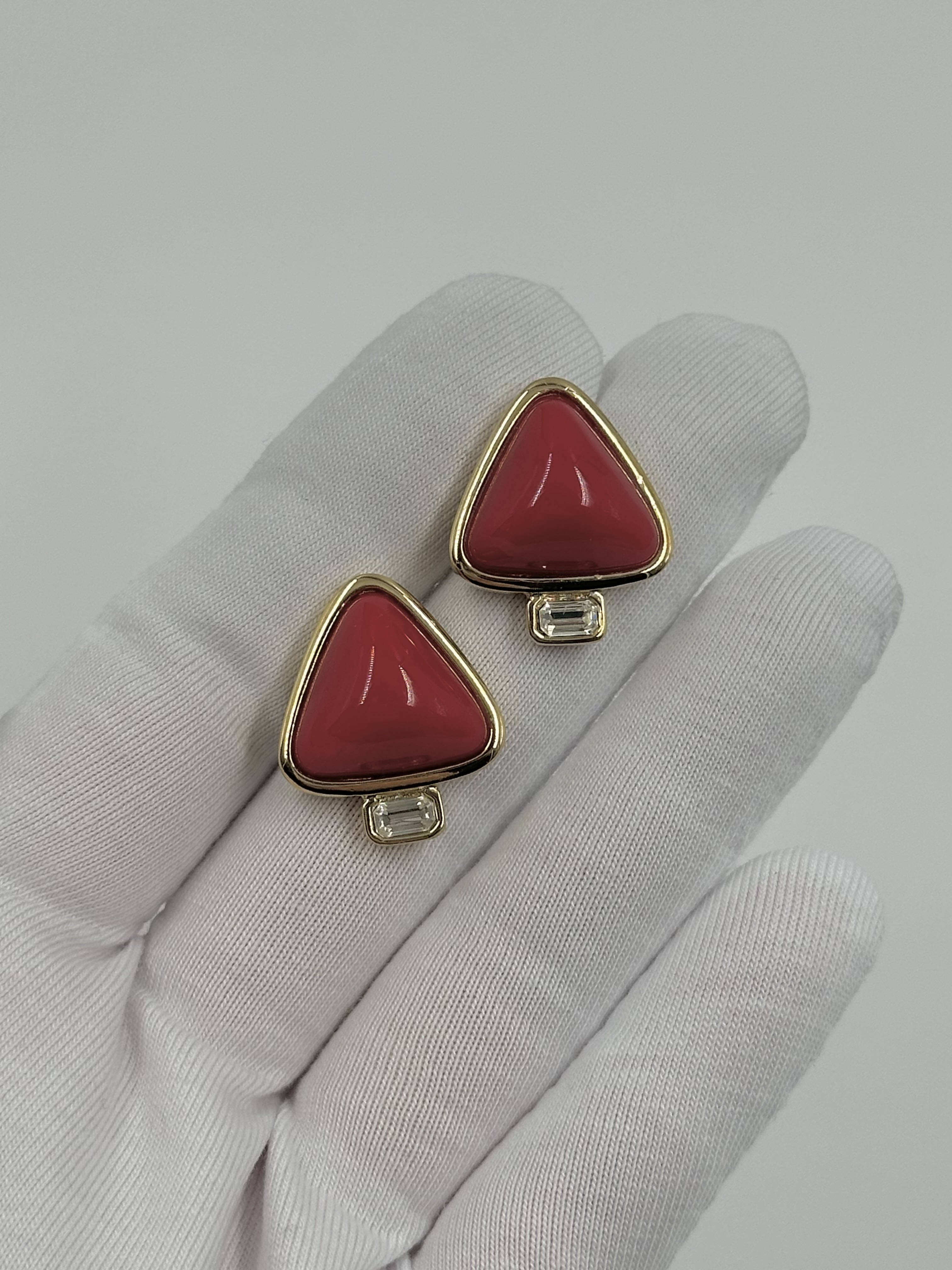 Бижутерный сплав, позолота, пластик, кристаллы. Размер 1,9 x 2,1см.