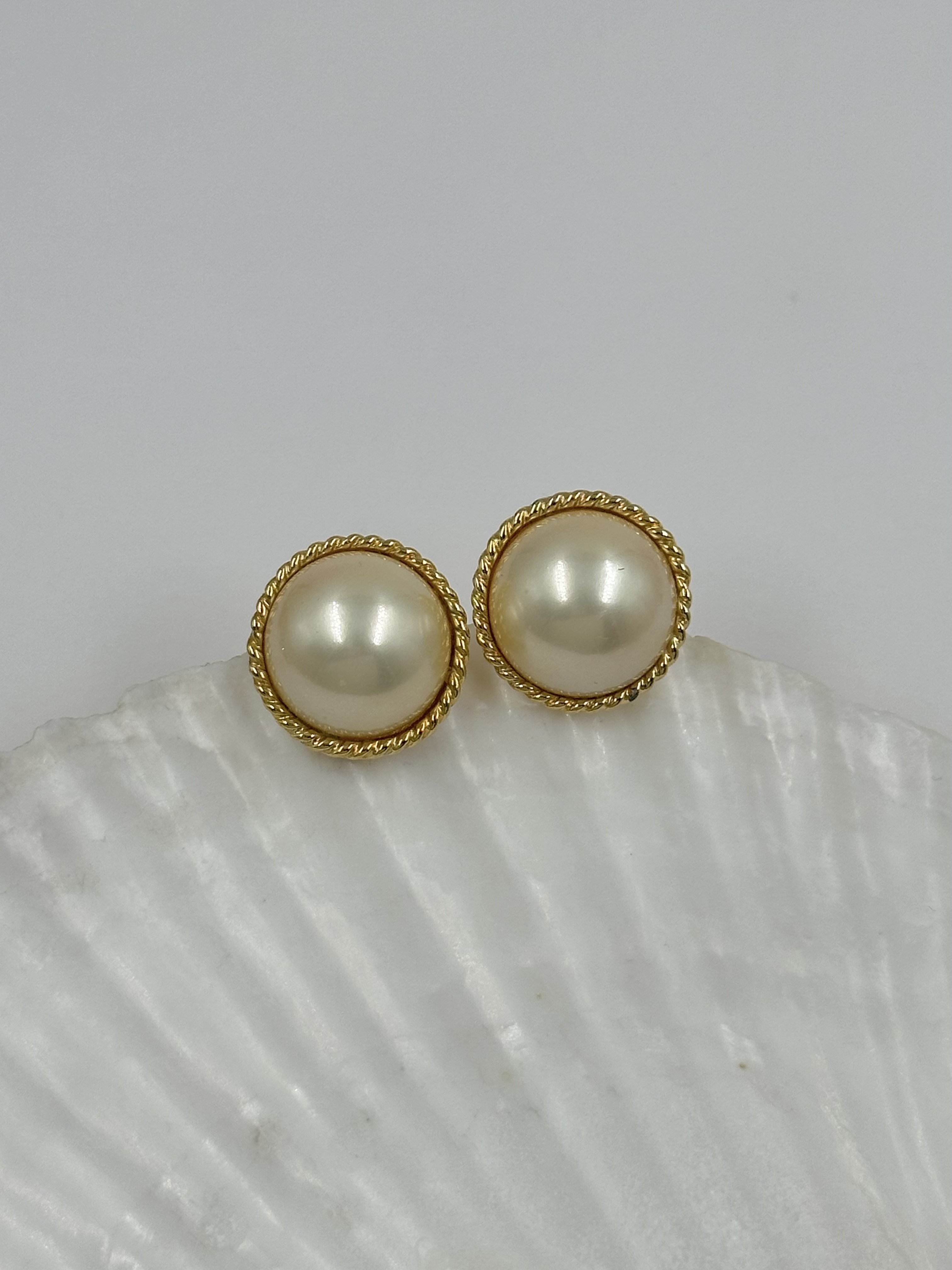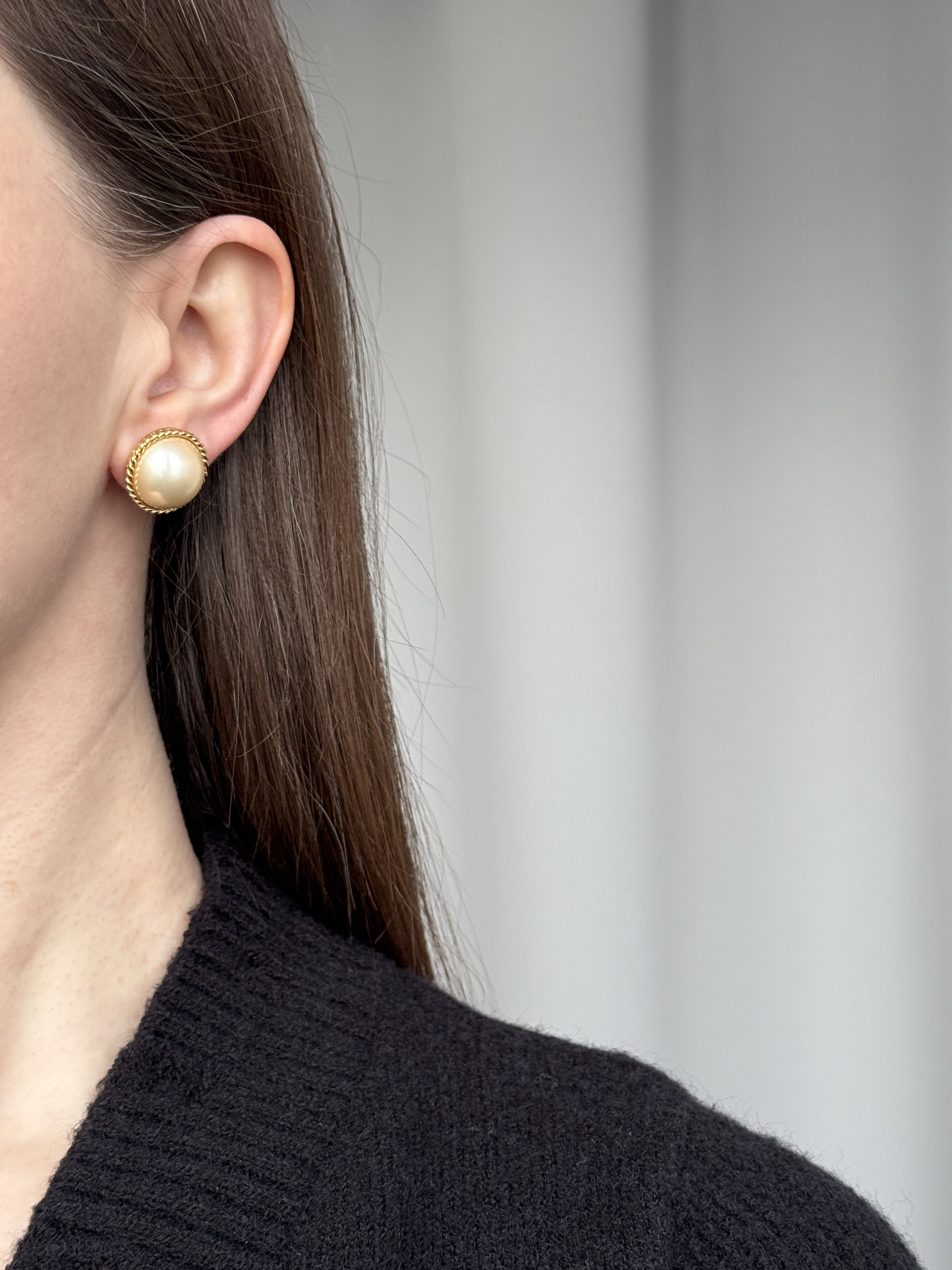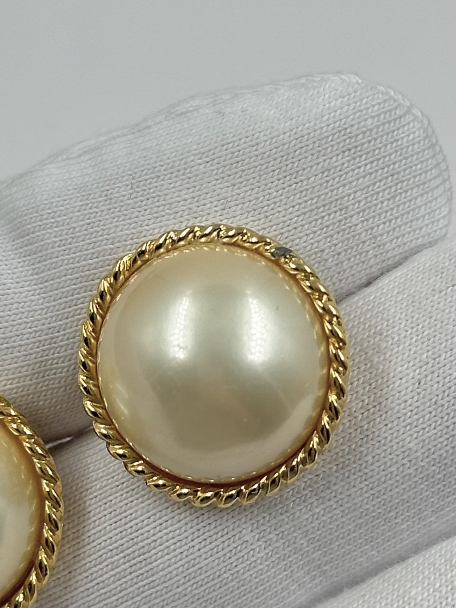 Бижутерный сплав, пластик. На одной серьге присутствует скол покрытия. Размер 2см.