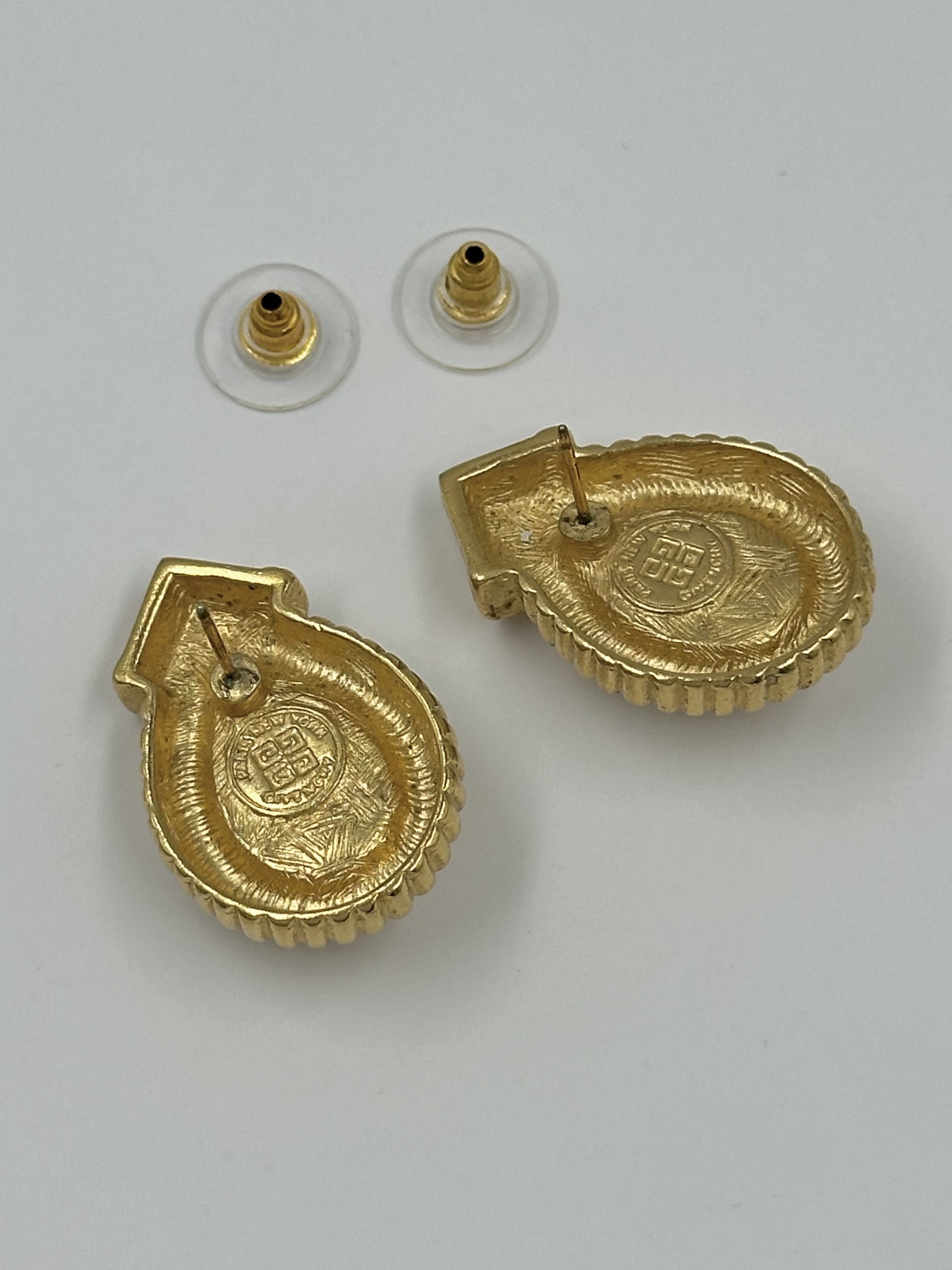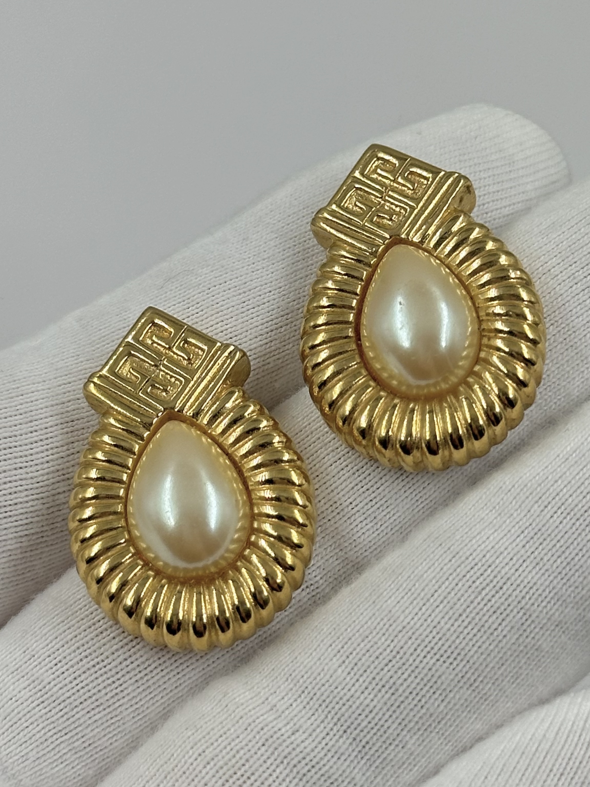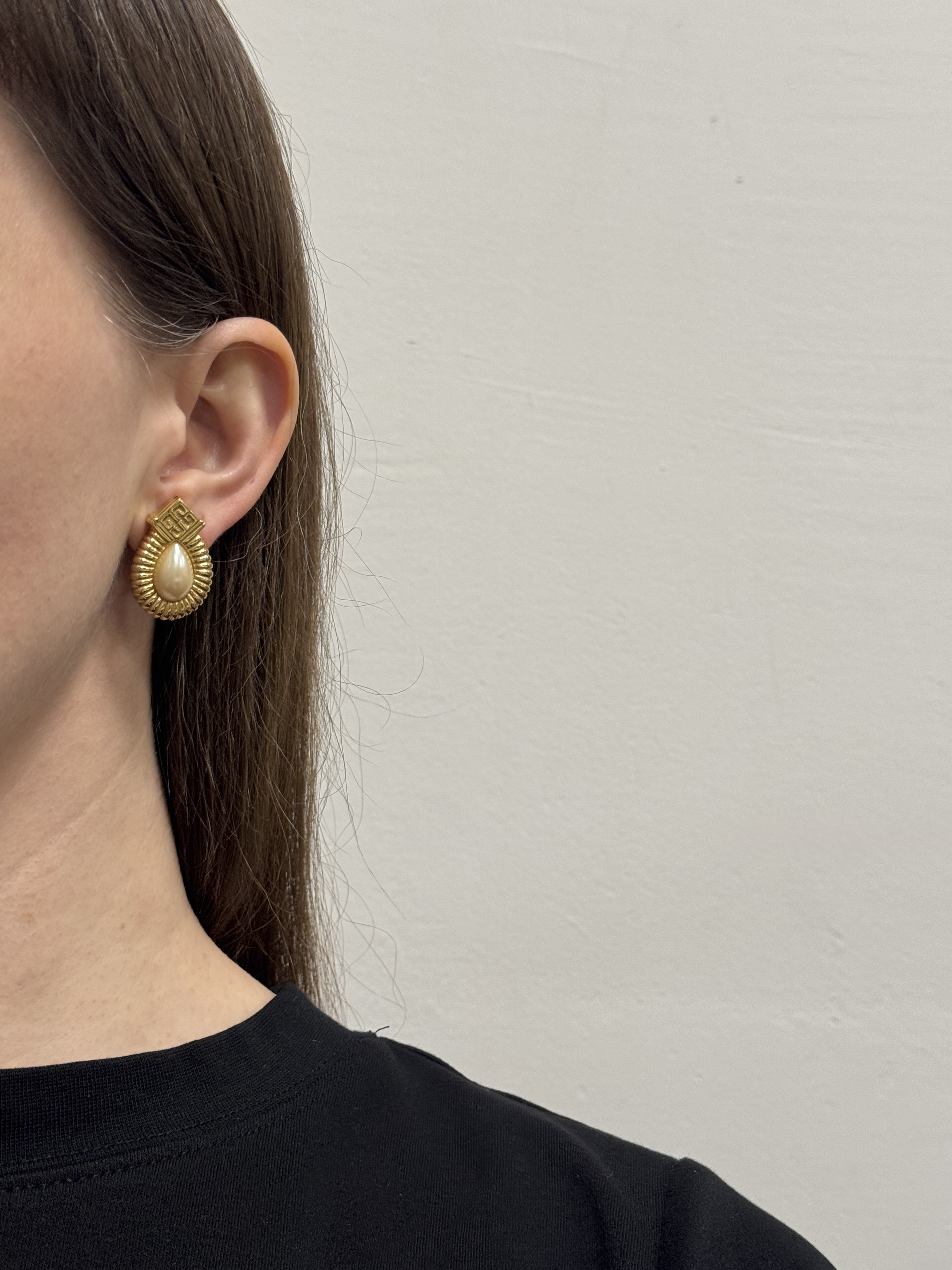 Бижутерный сплав, позолота, имитация жемчуга. Размер 1,9 х 2,8см.