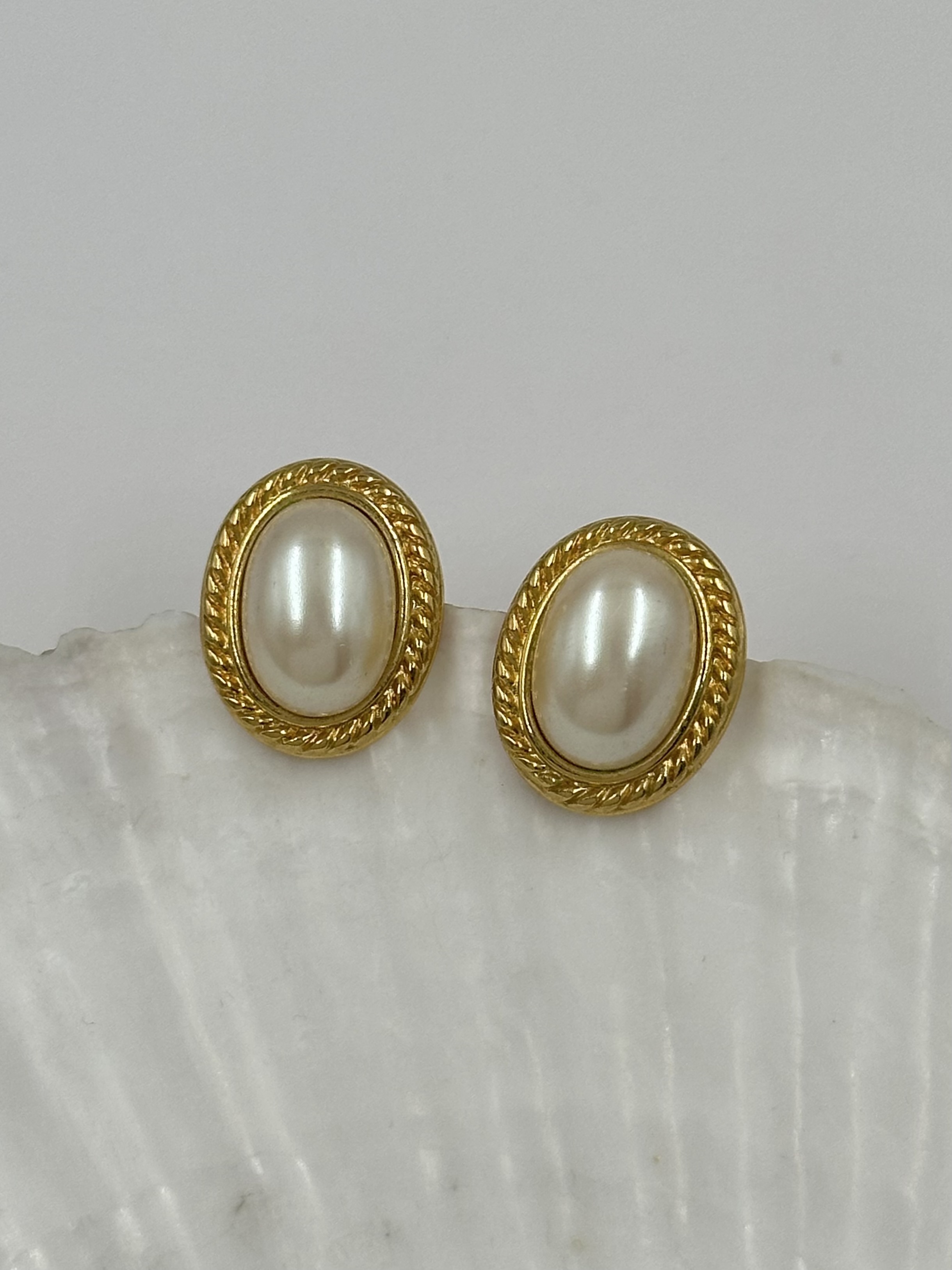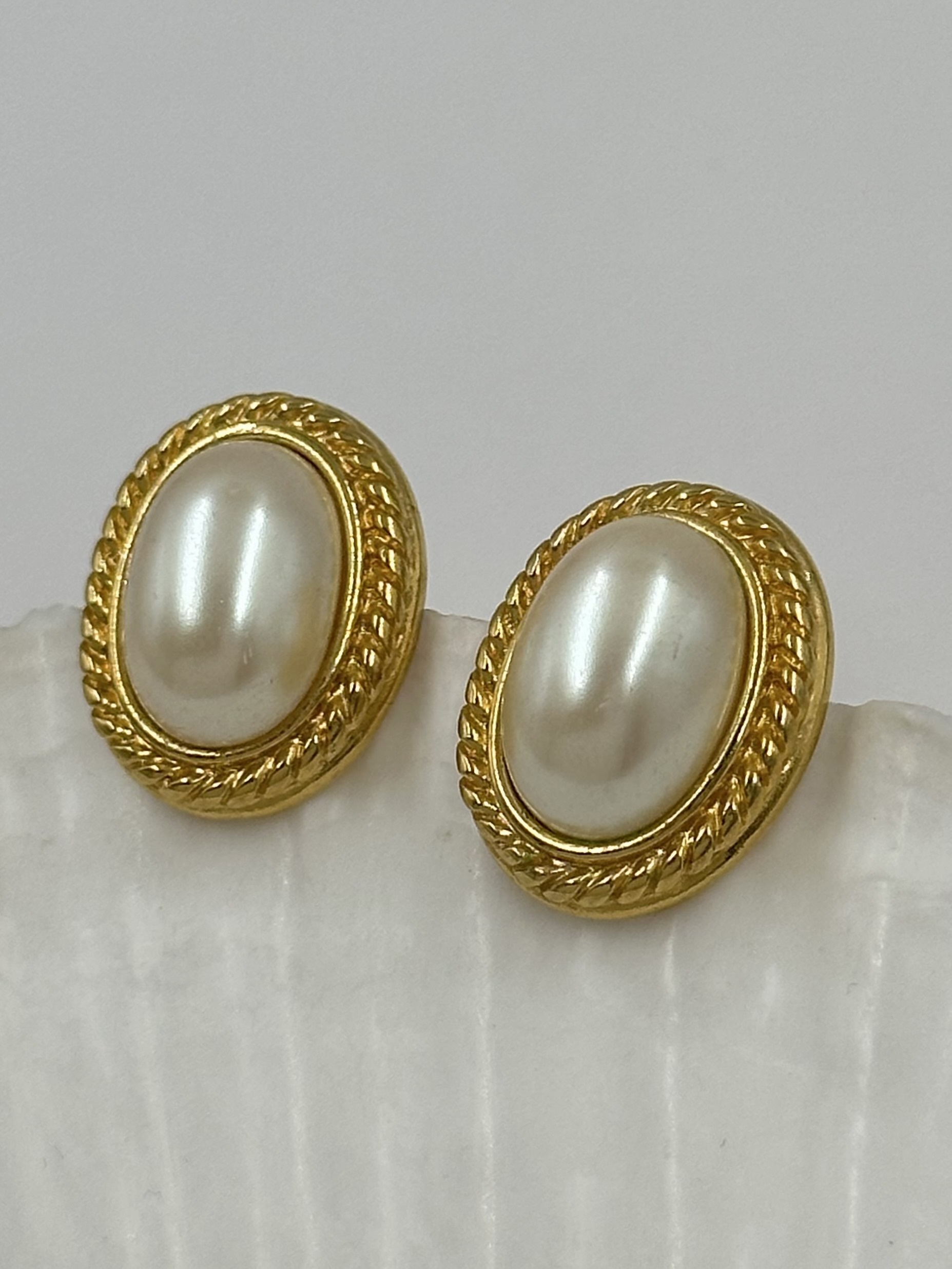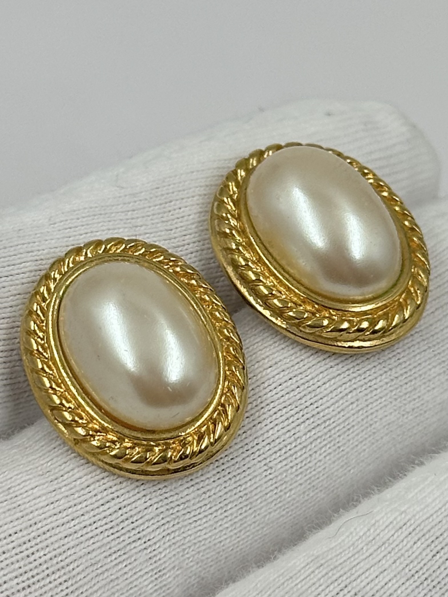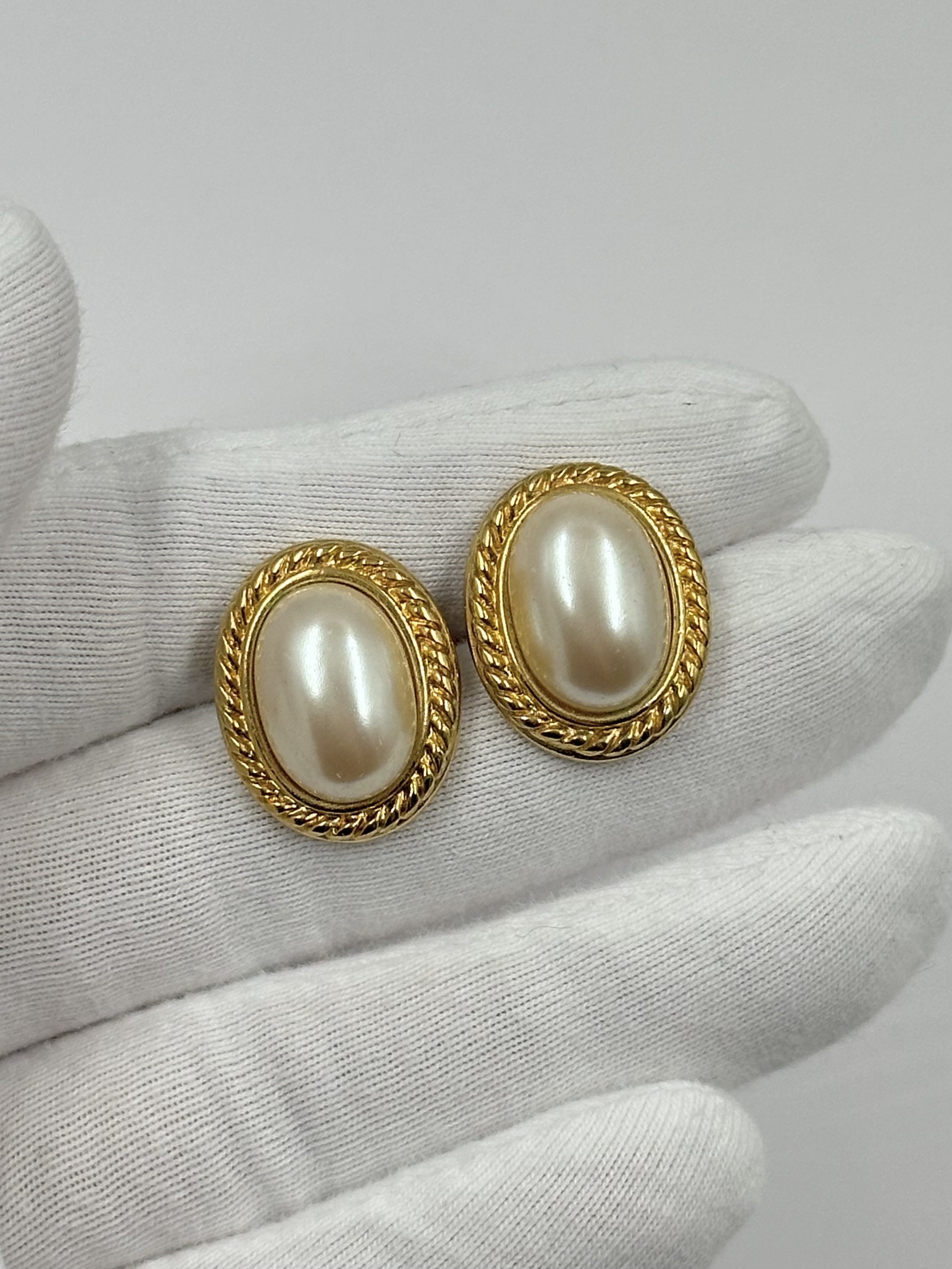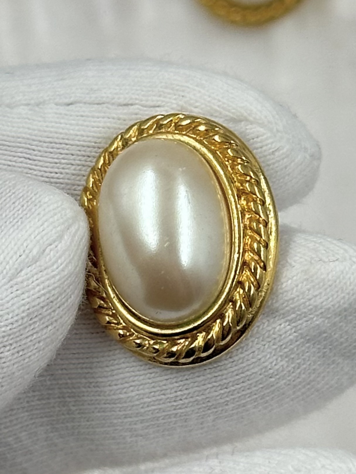 Бижутерный сплав, имитация жемчуга. Размер 1,6 x 1,9см. На одной вставке небольшая царапина.