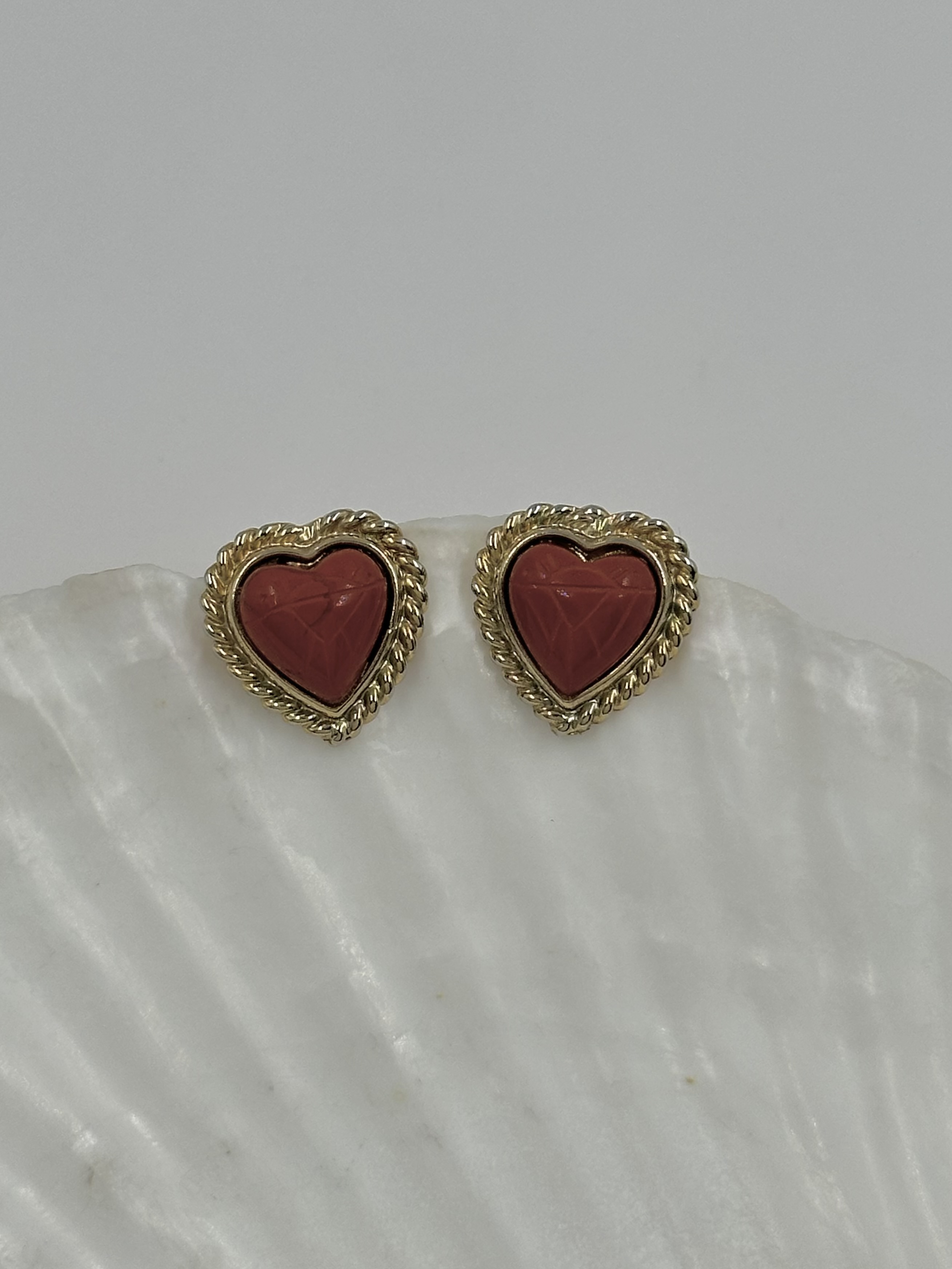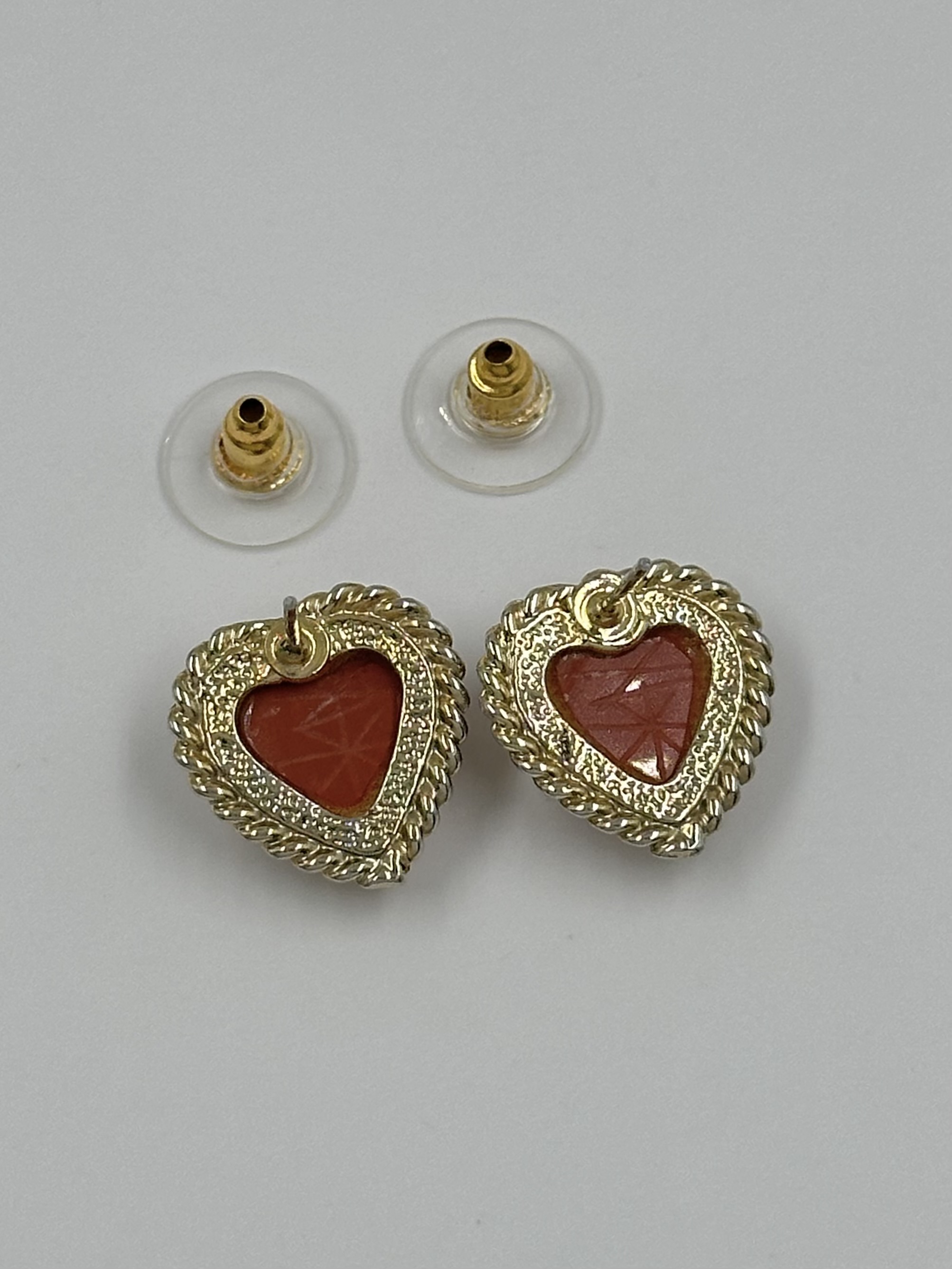 Бижутерный сплав, стекло тёмно-красного цвета. Присутствуют небольшие потертости.
