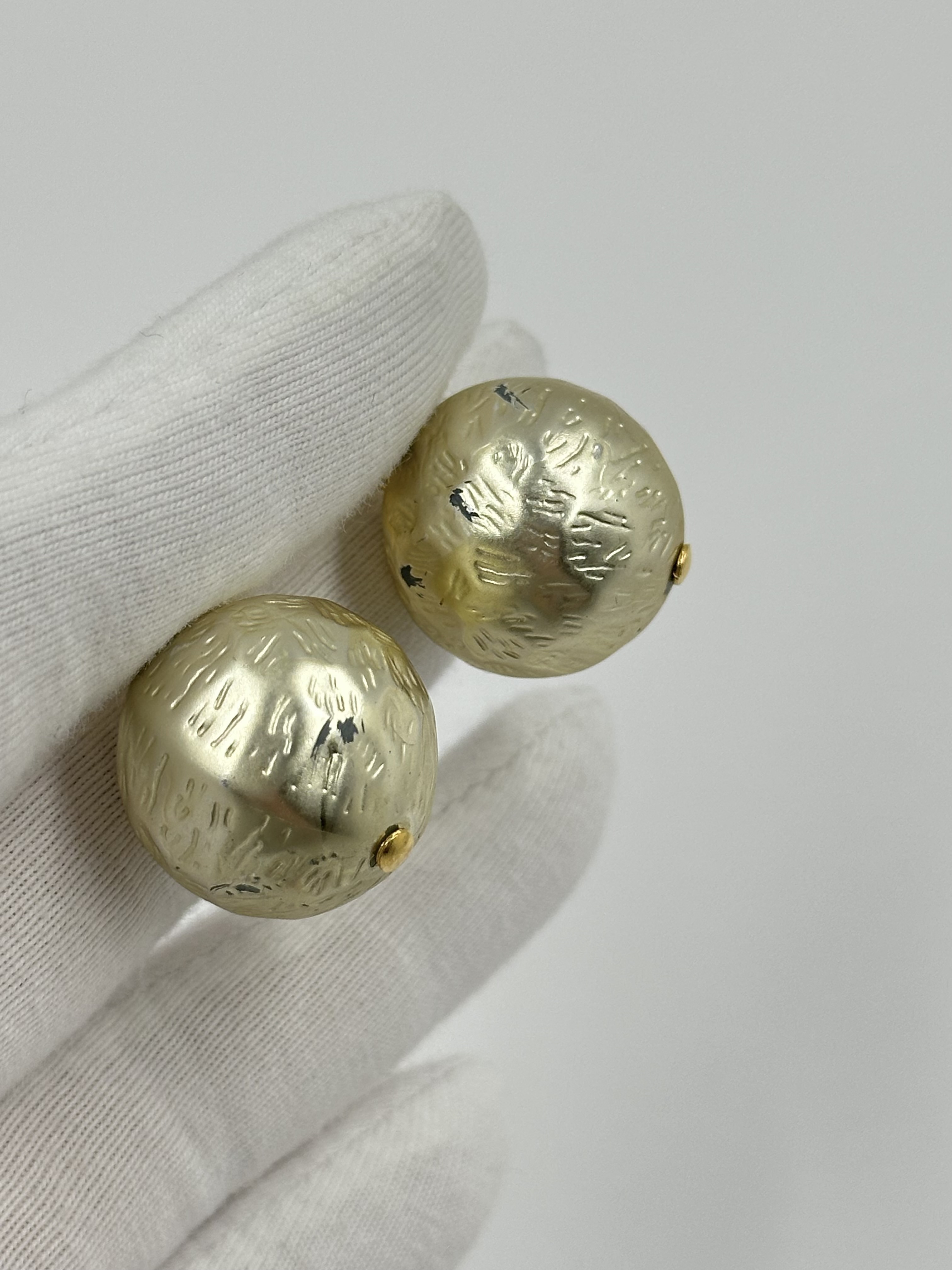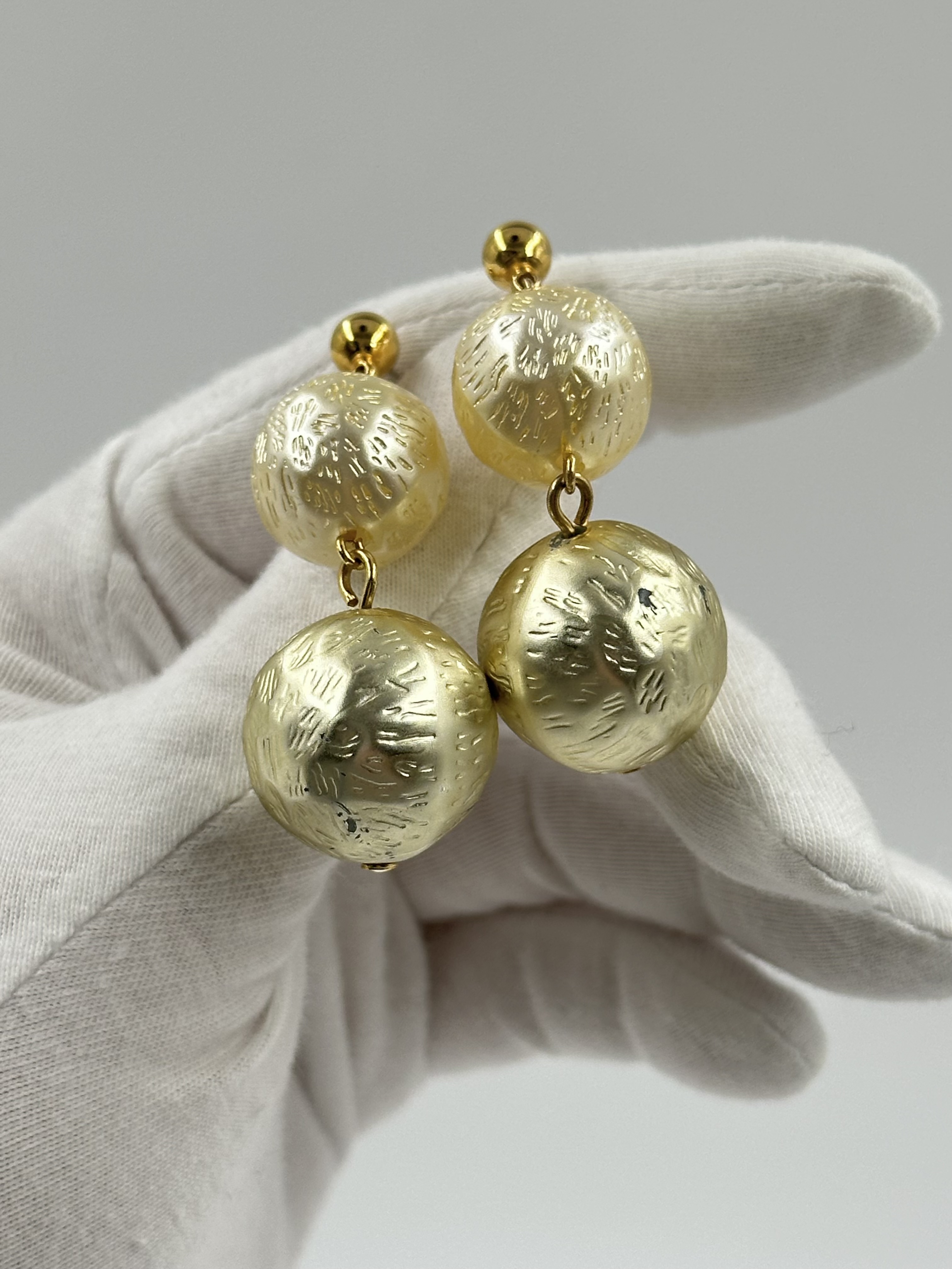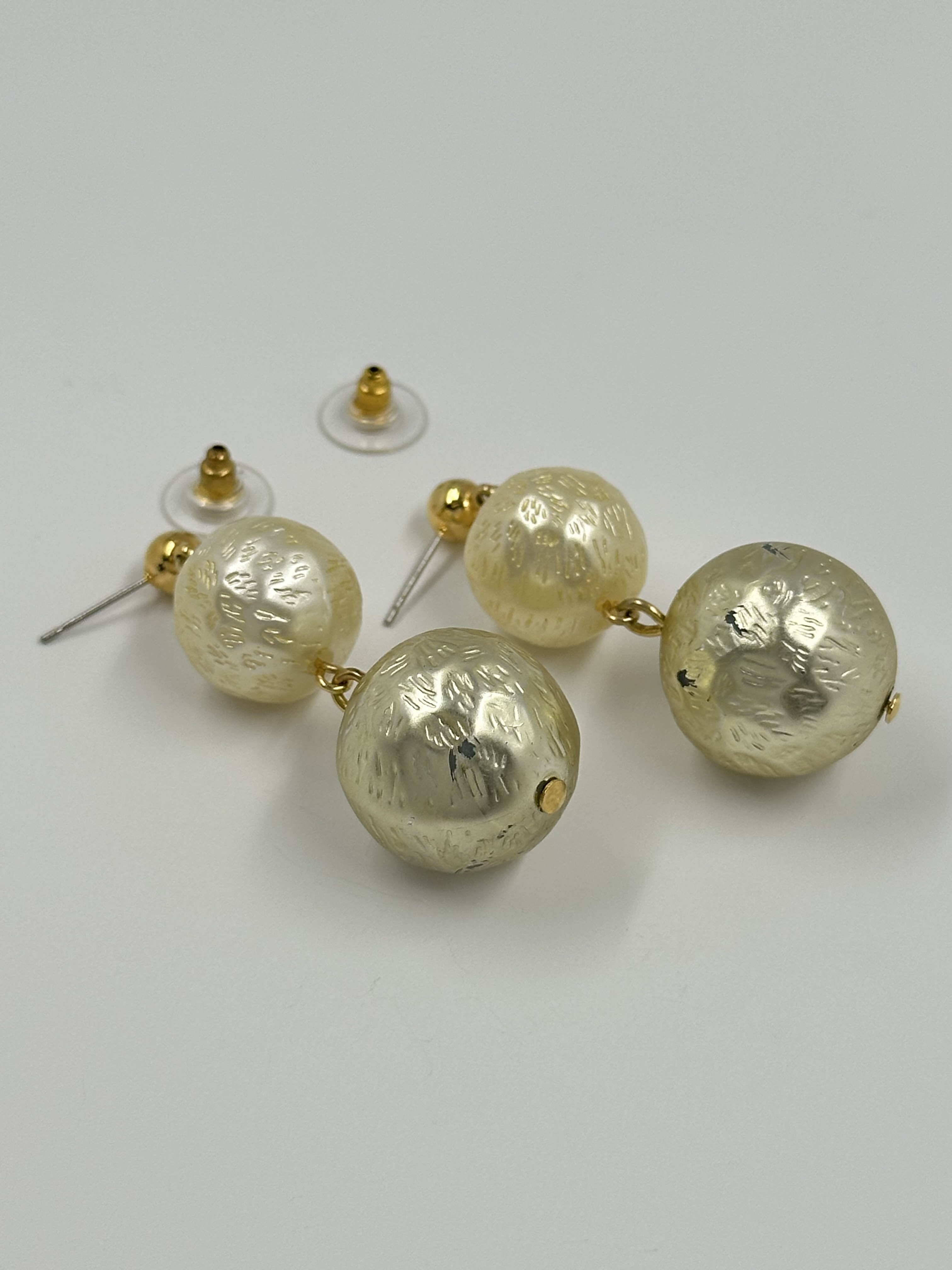Бижутерный сплав, имитация жемчуга. Диаметр колец 2,3см. Длина с подвесками 3,6см.