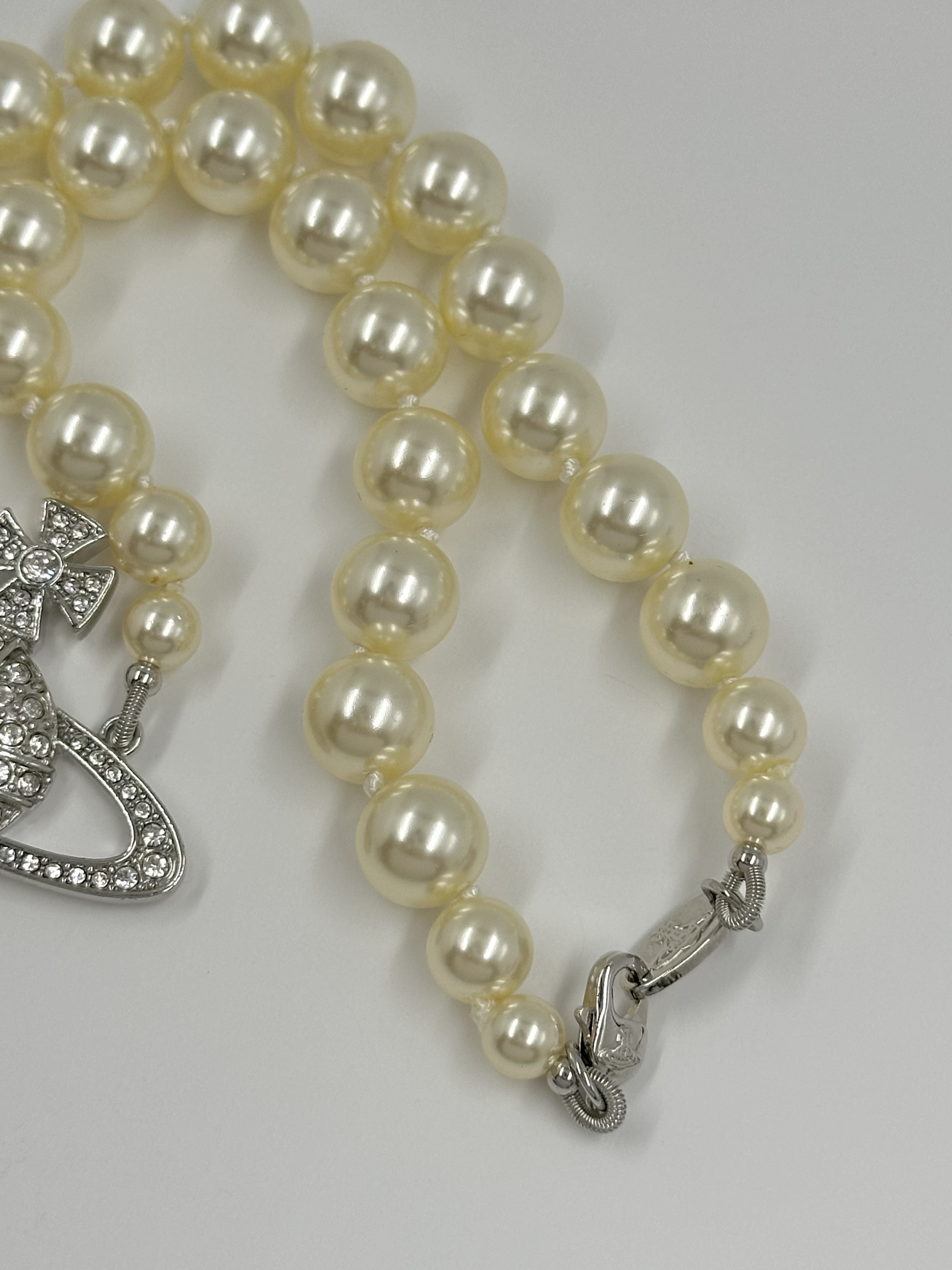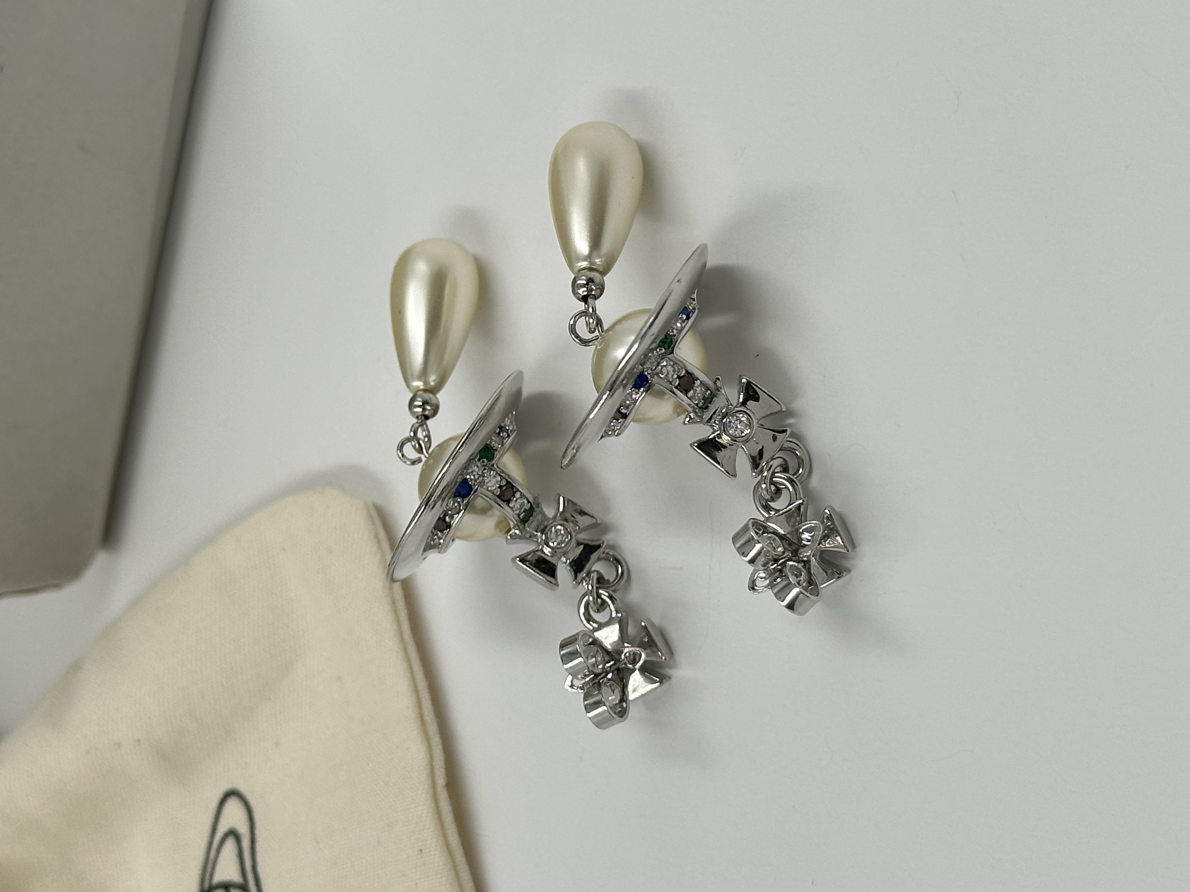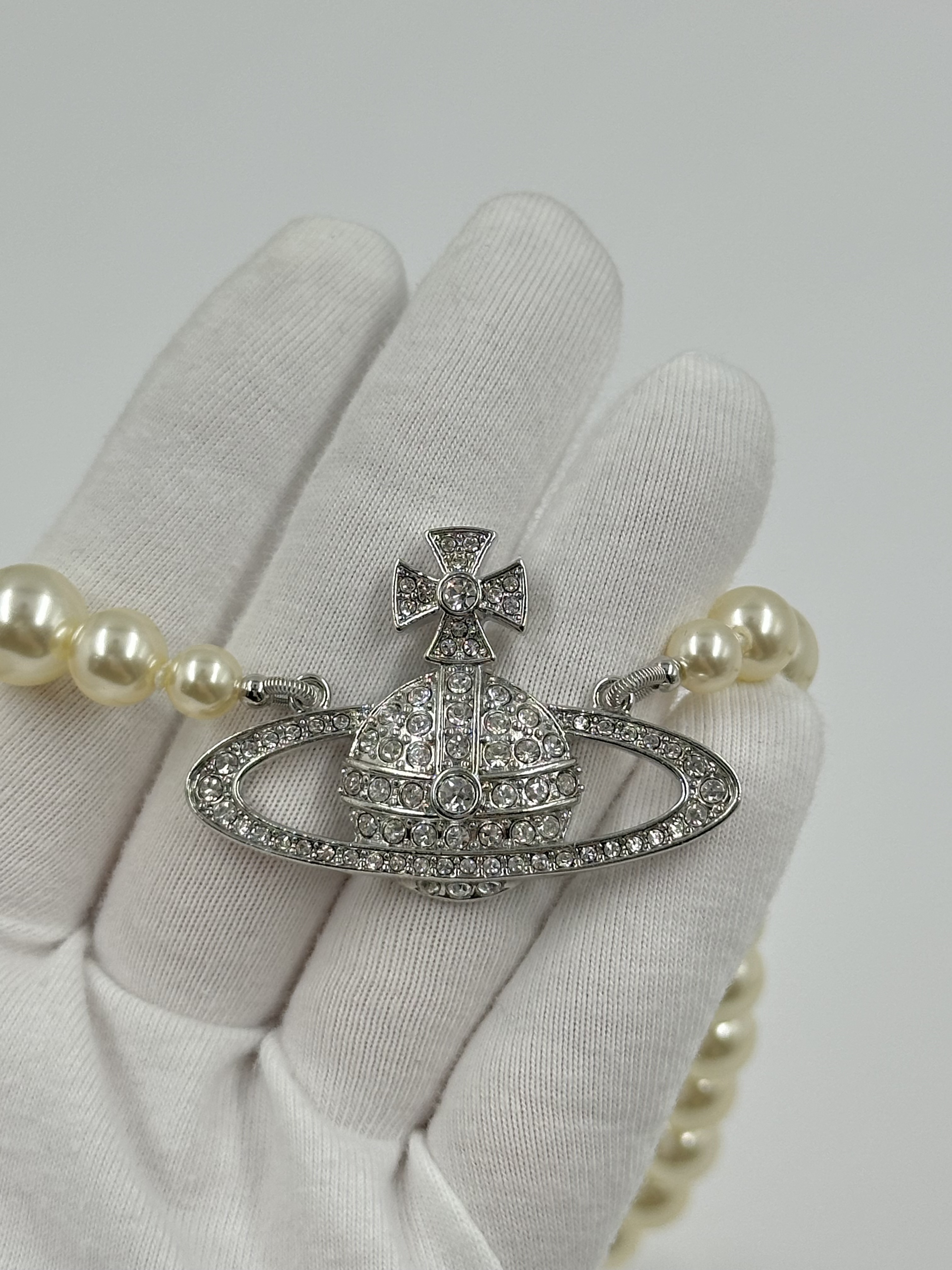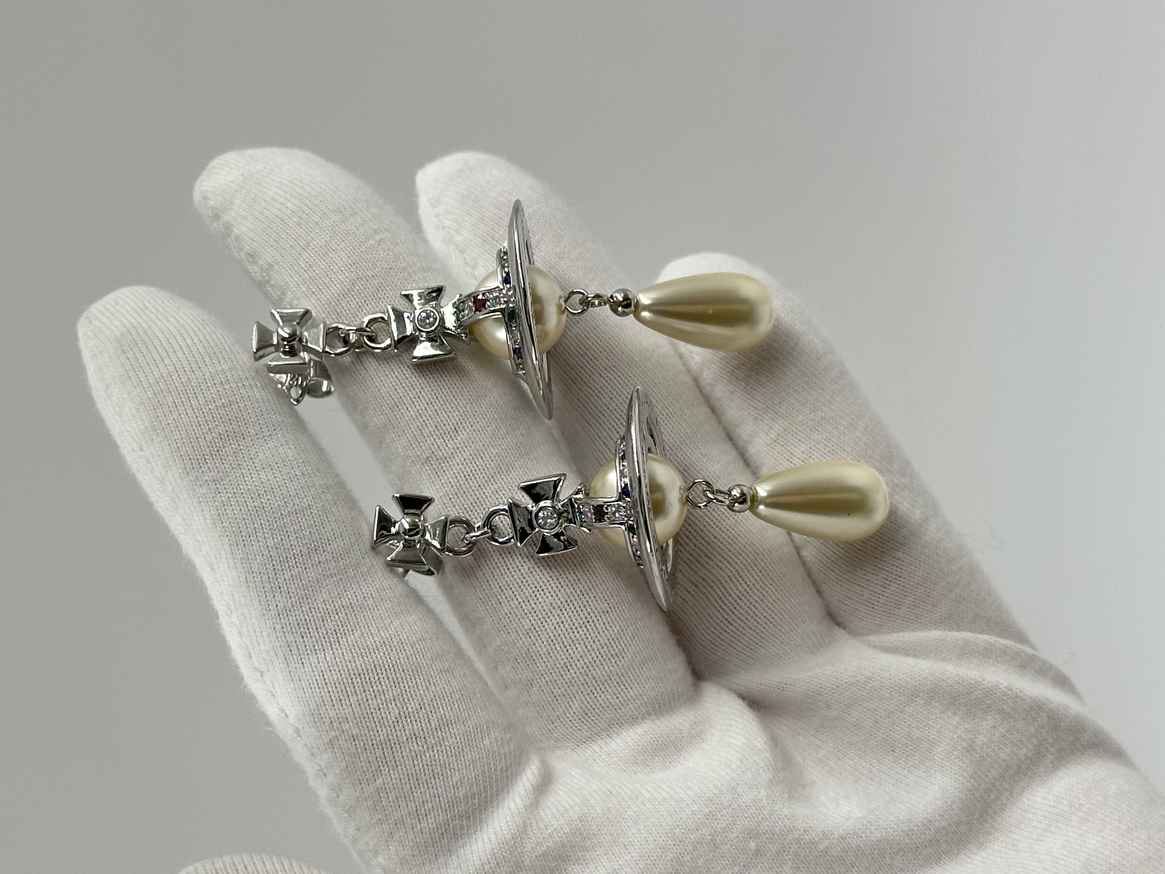 Бижутерный сплав, кристаллы, имитация жемчуга. Размер 5,5см. Украшению около 5 лет.