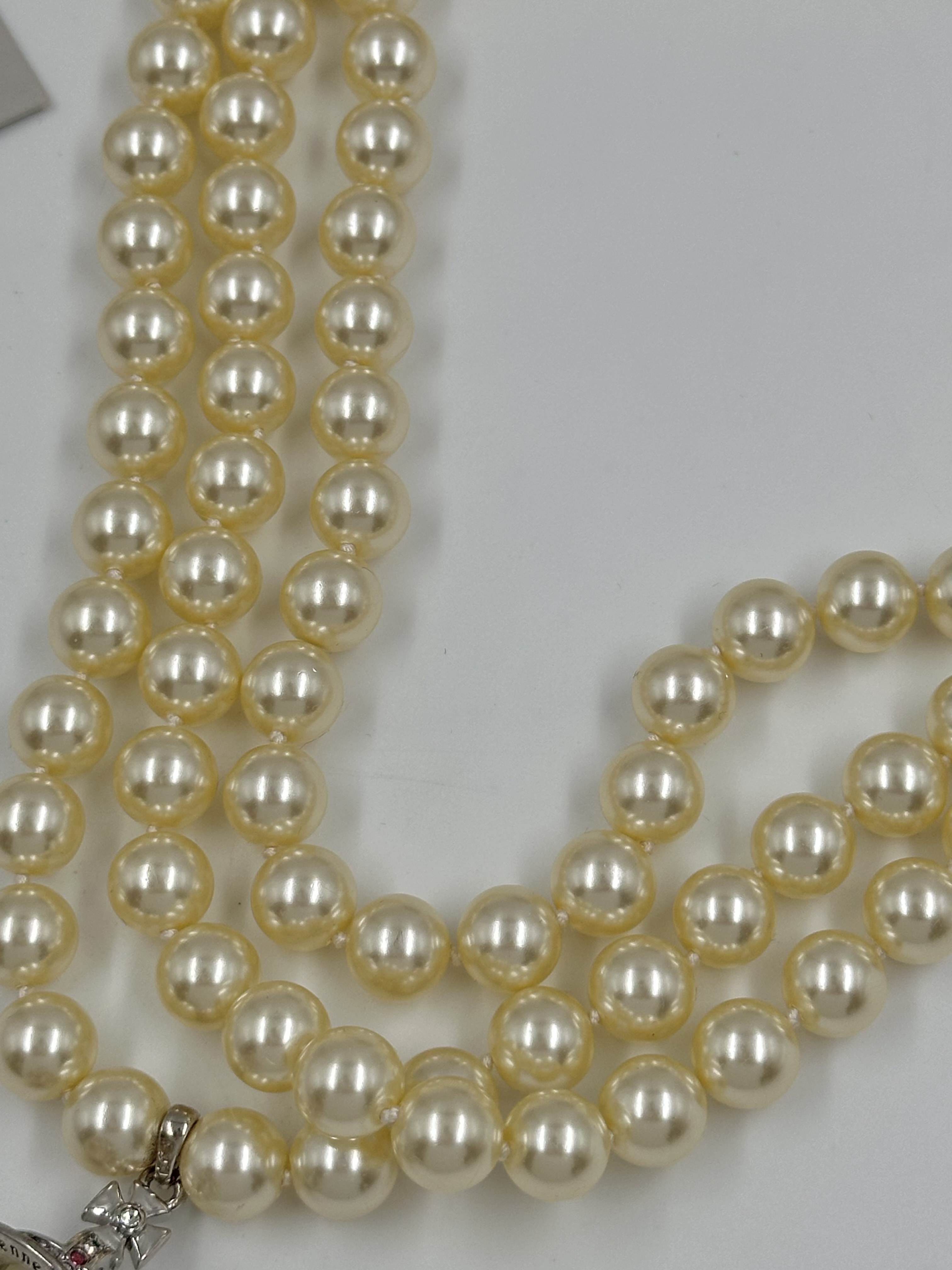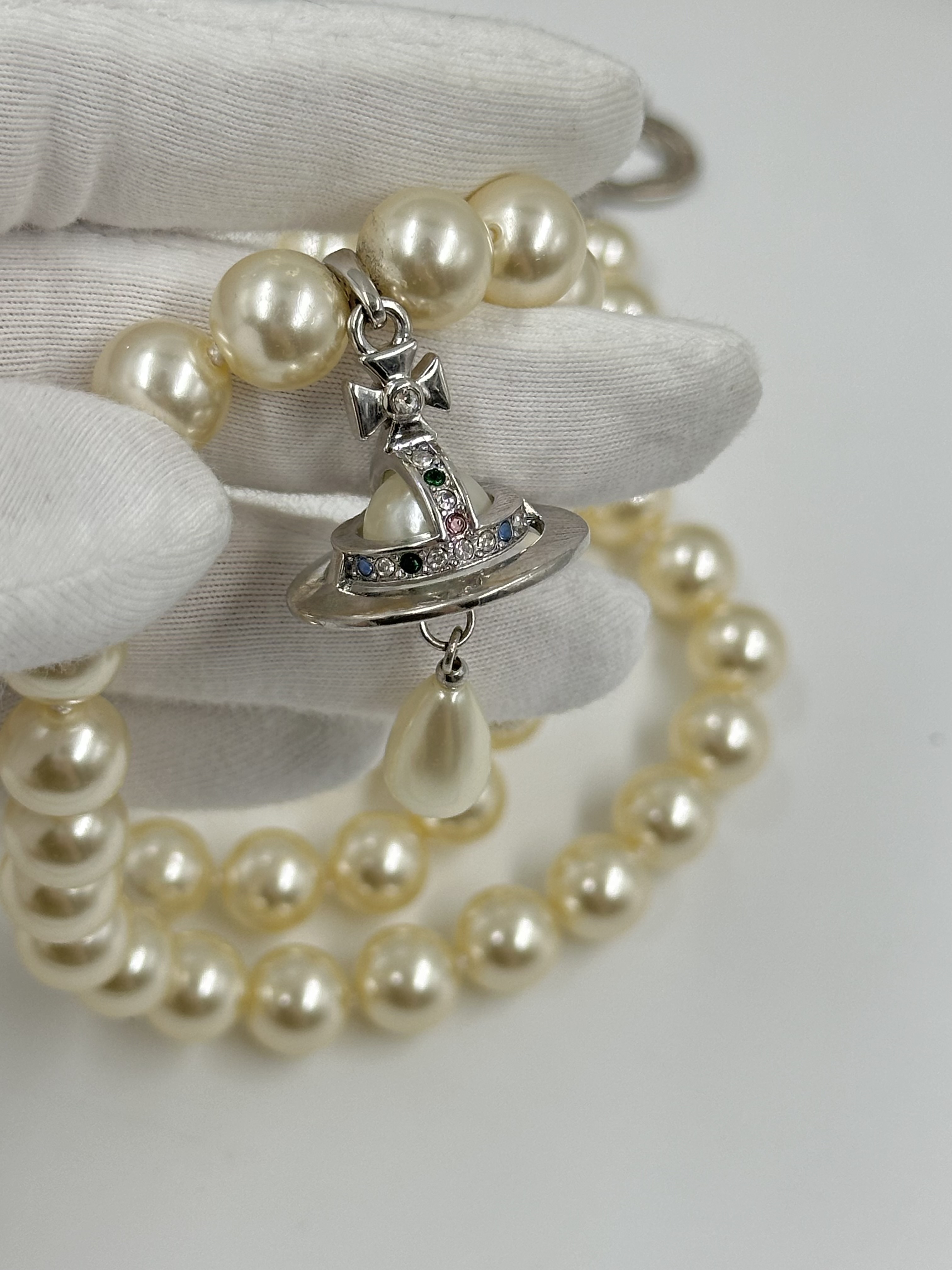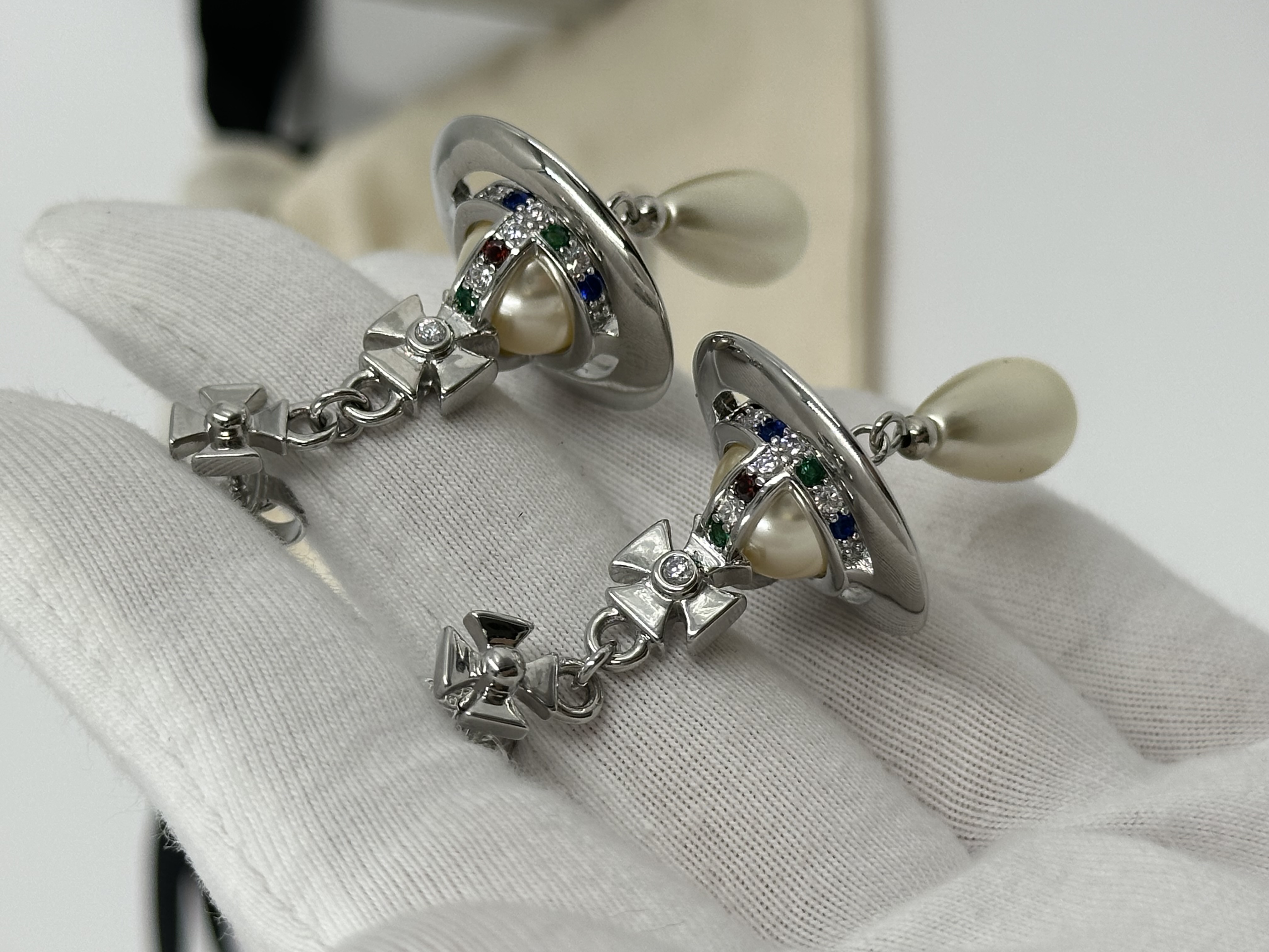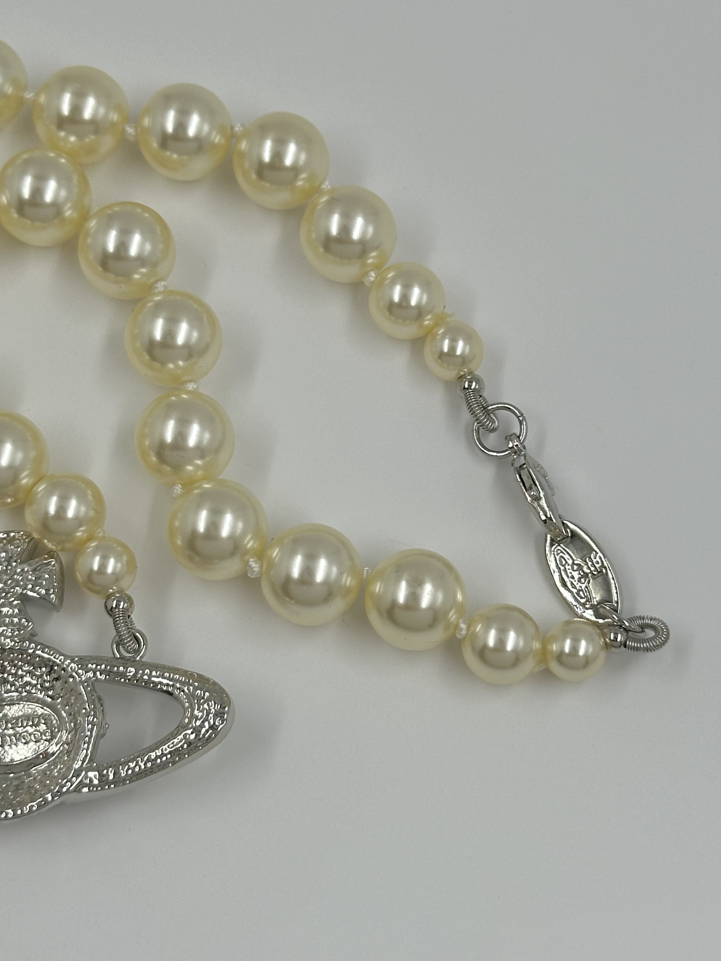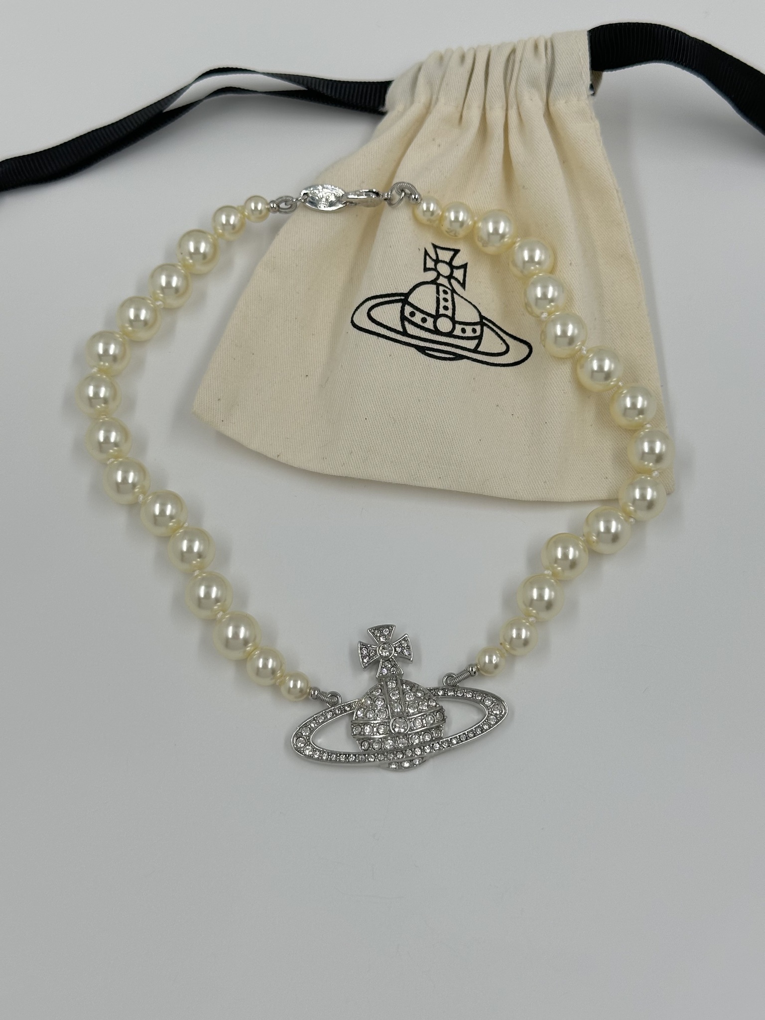 Бижутерный сплав, кристаллы, имитация жемчуга. Размер 5,5см. Украшению около 5 лет.