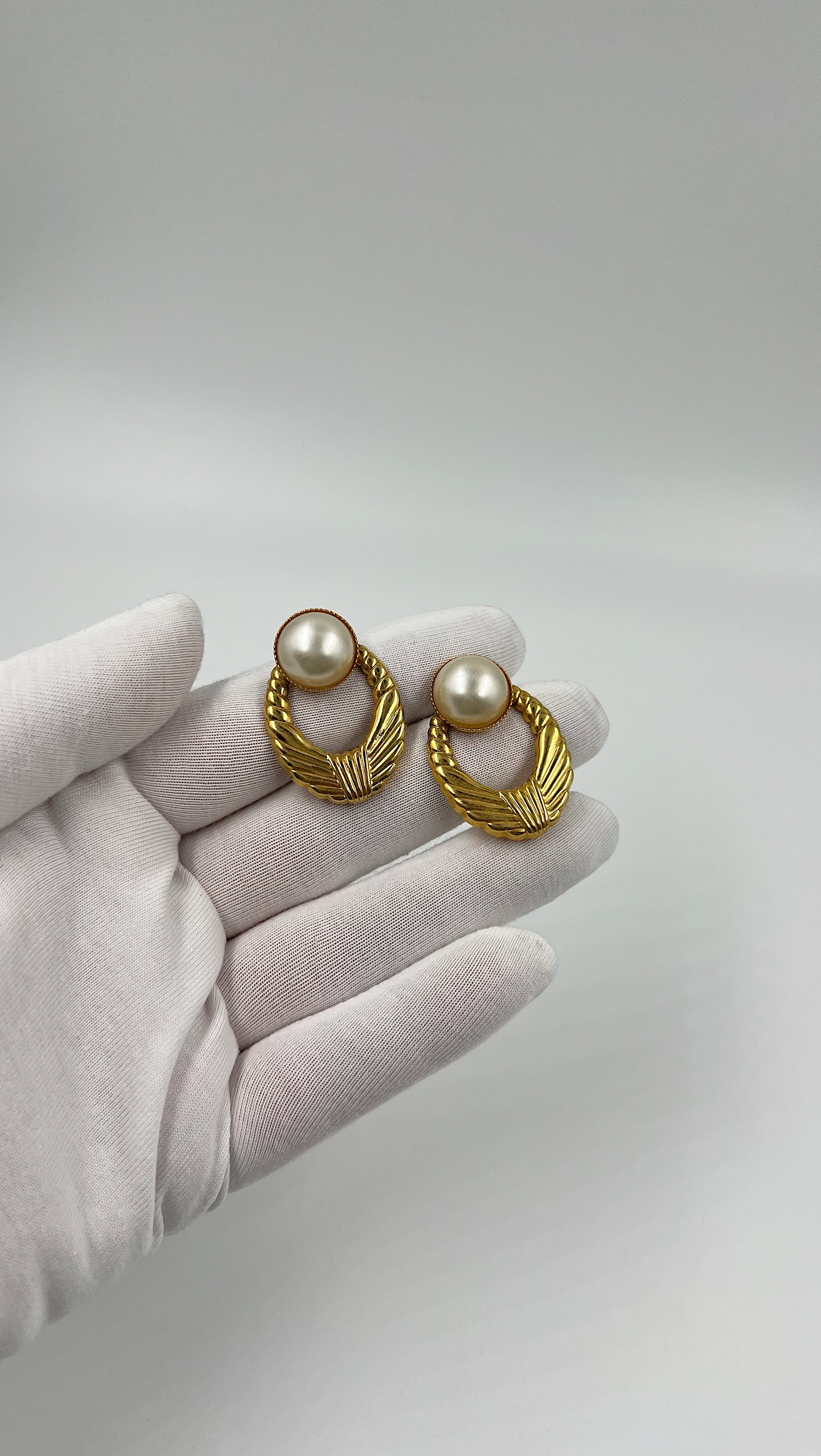 Бижутерный сплав, имитация жемчуга. Размер 3,2см.