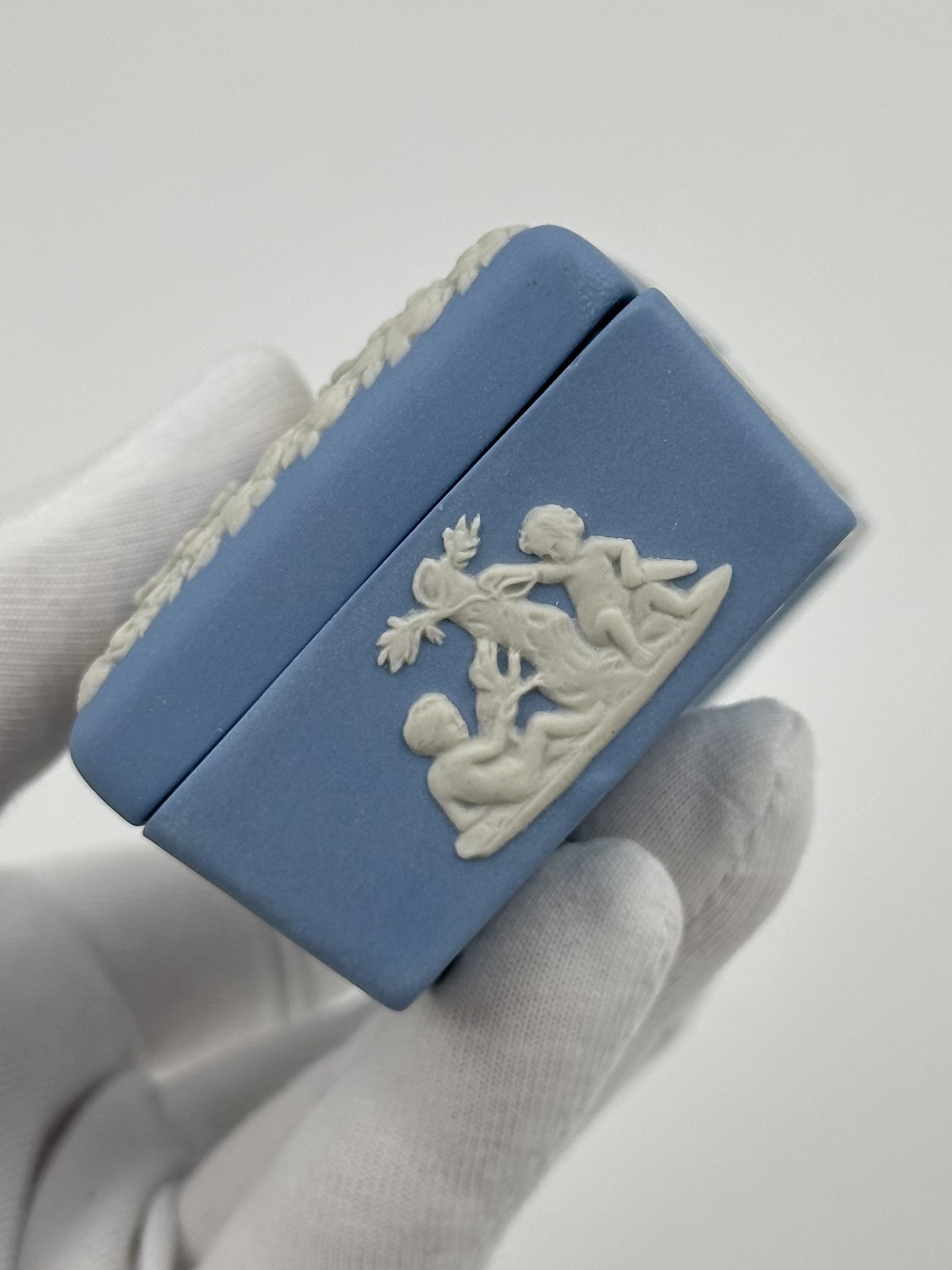 Фарфор. Присутсвуют небольшие следы клея, скол на одном декоративном элементе.