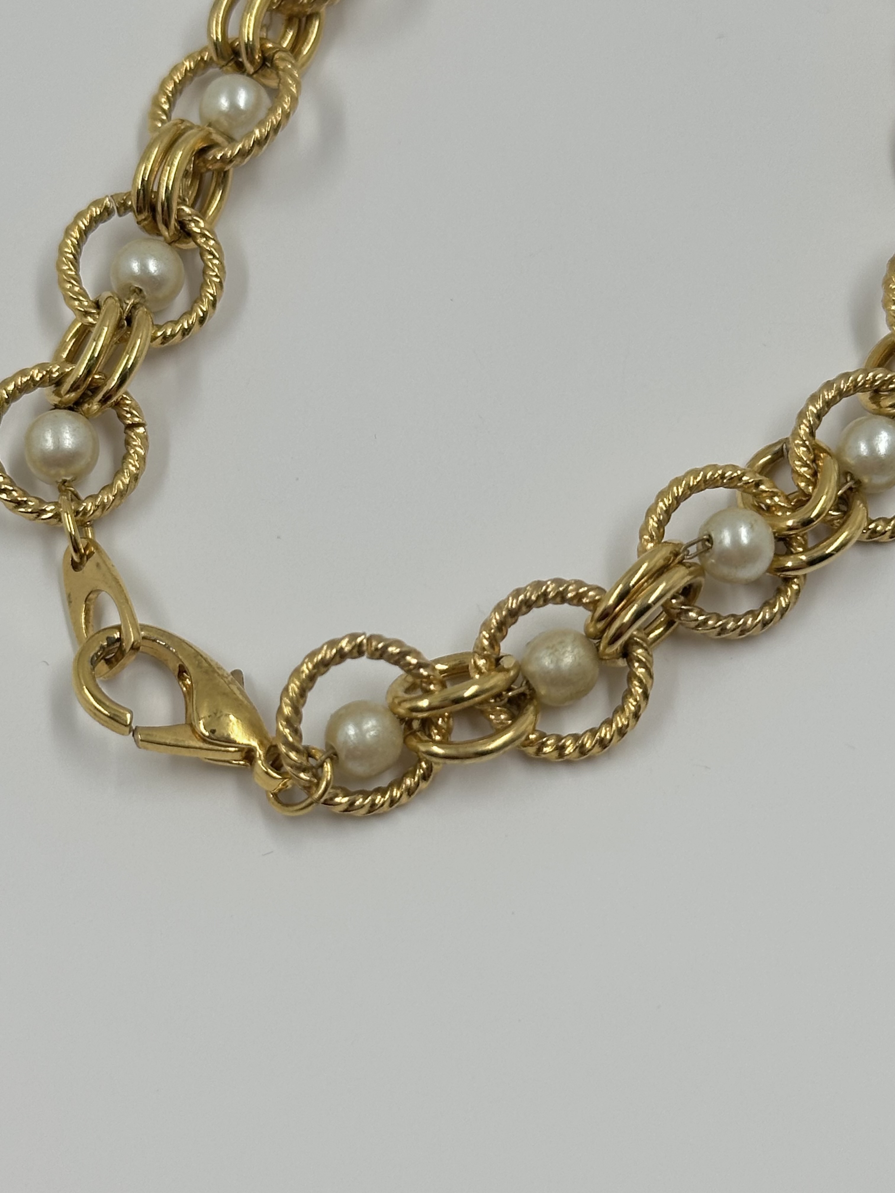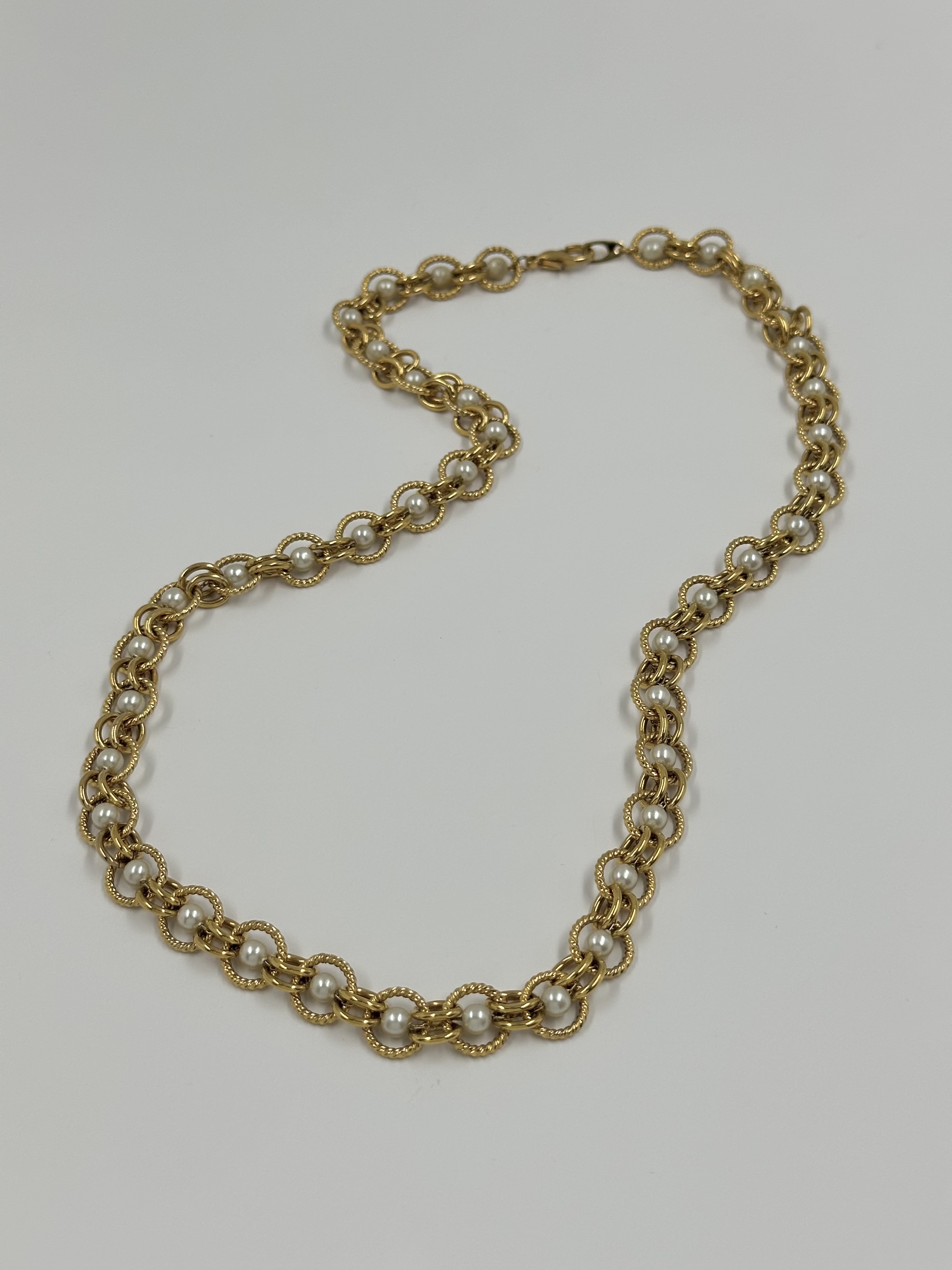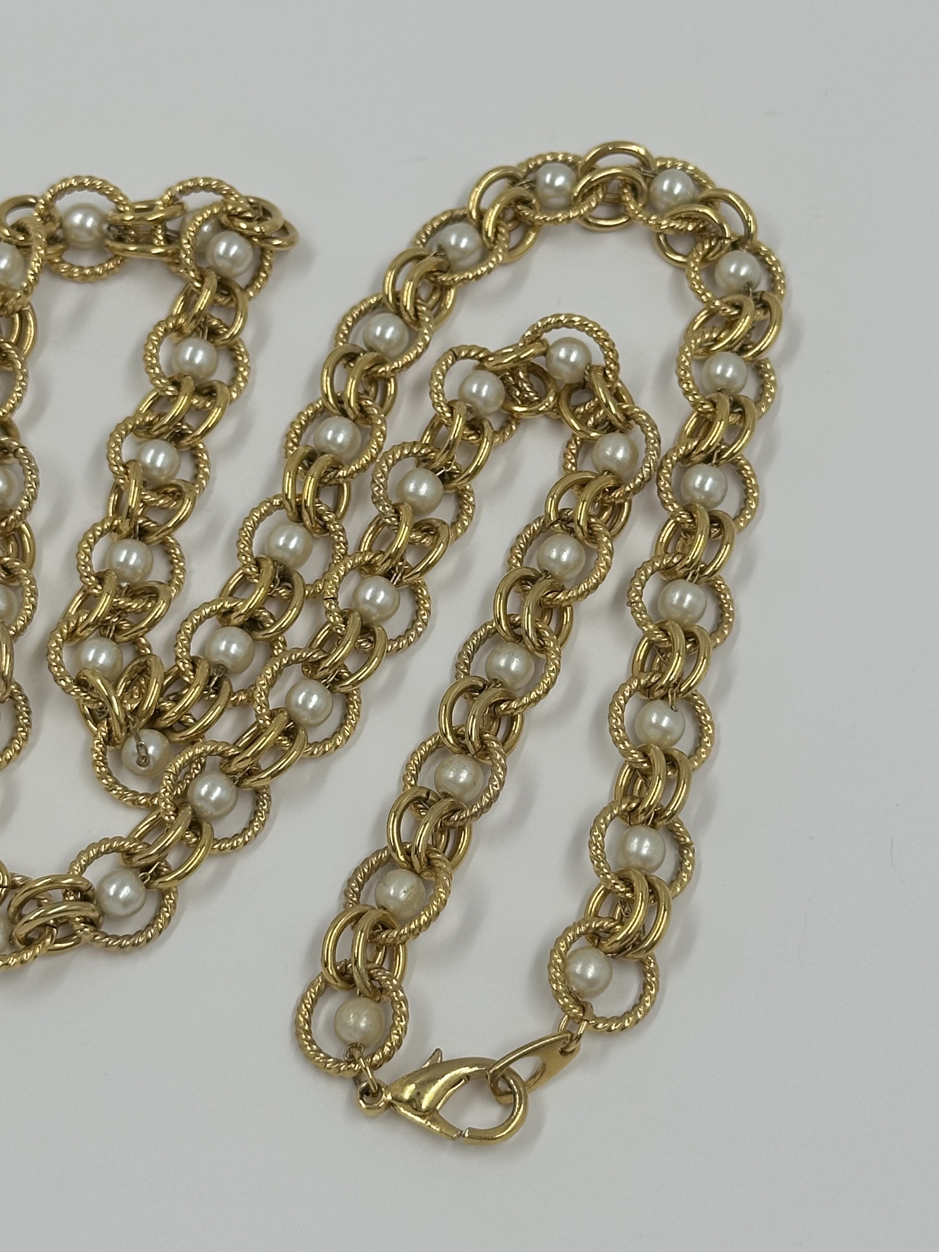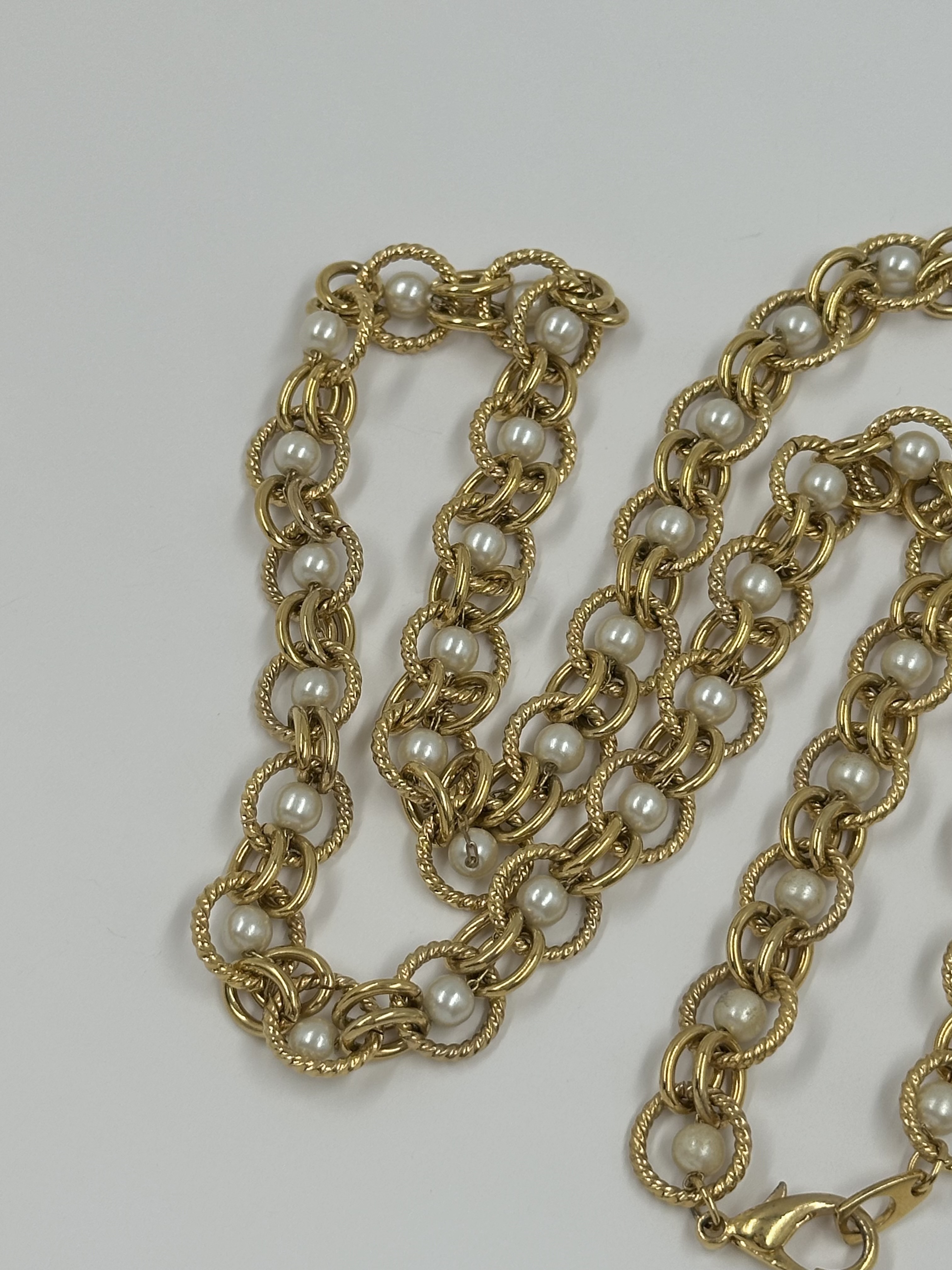 Бижутерный сплав, пластик. Местами на бусинах присутствуют потертости. Длина 62,5см.