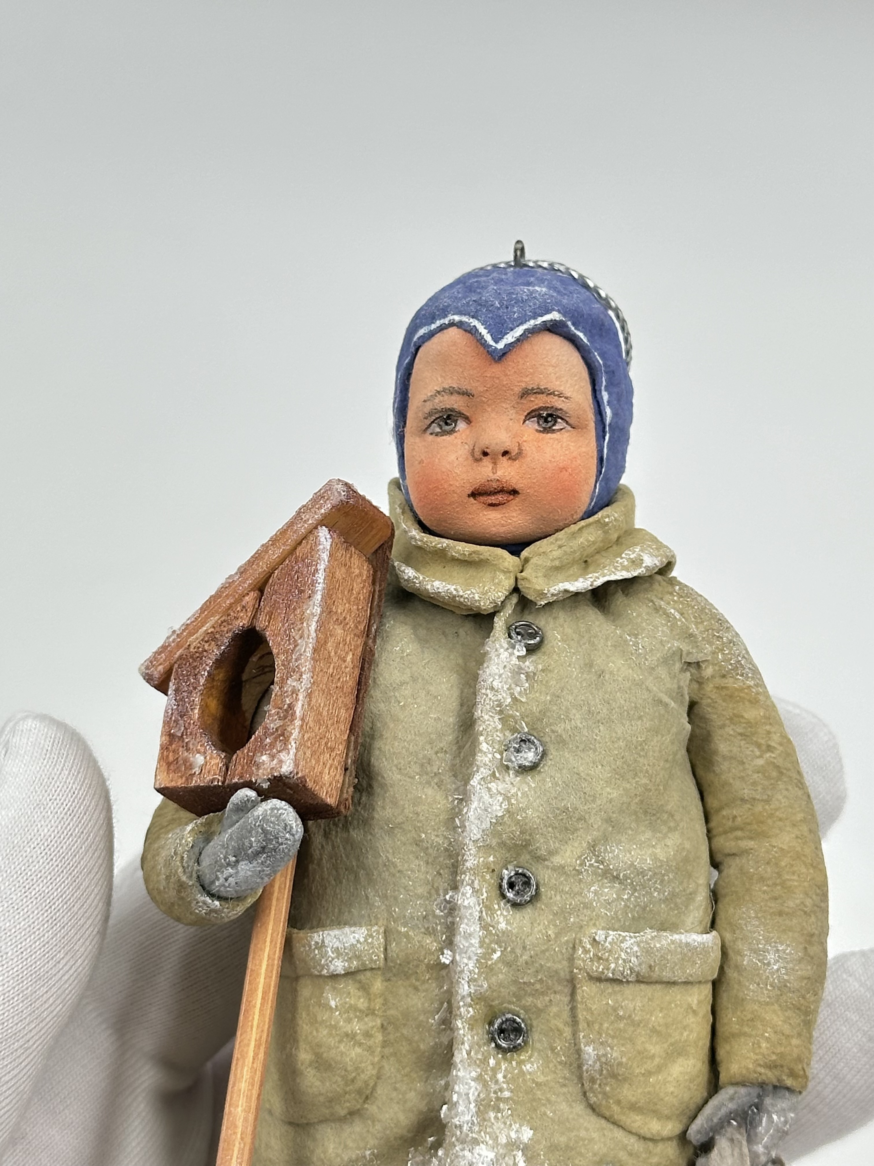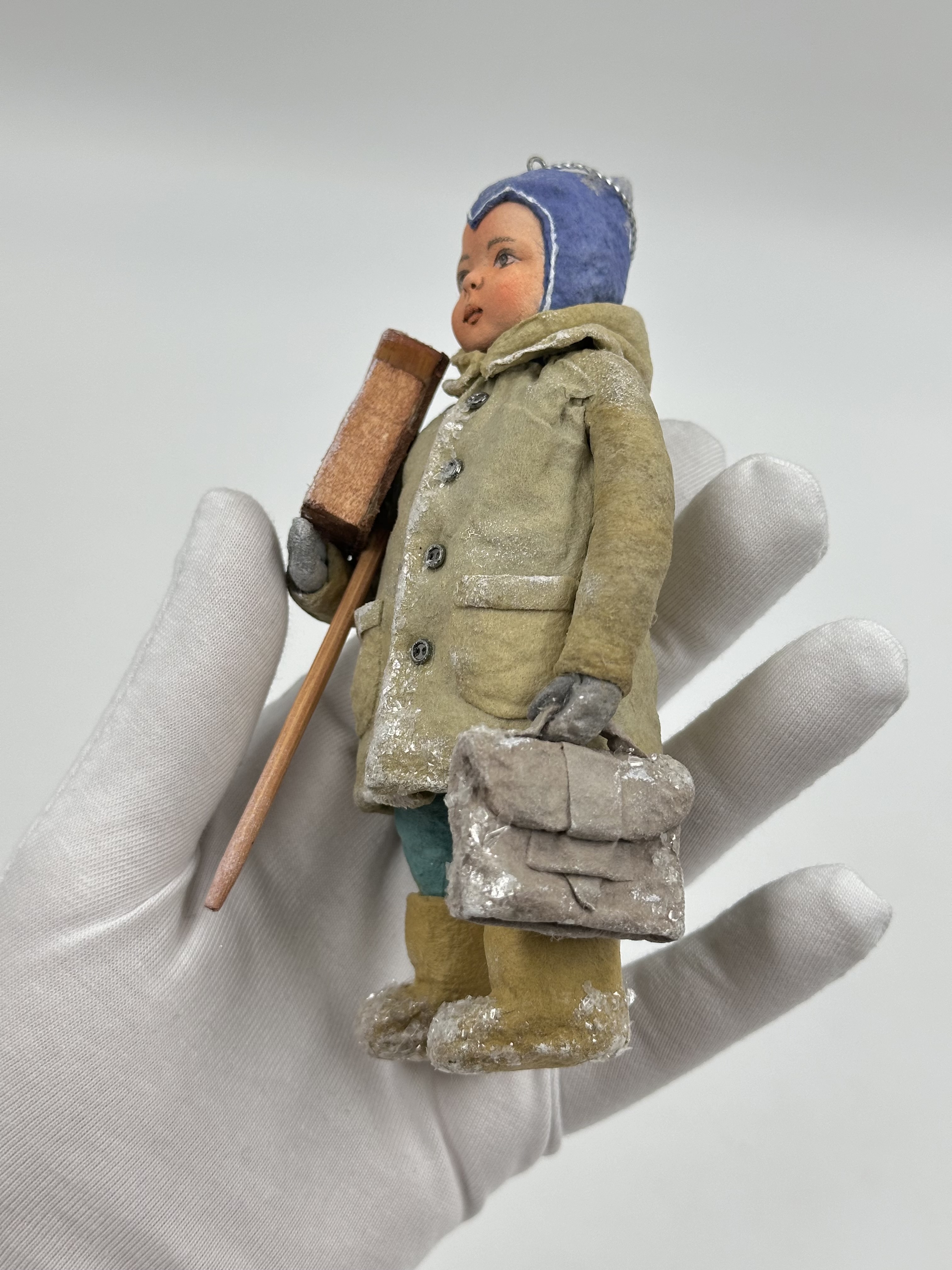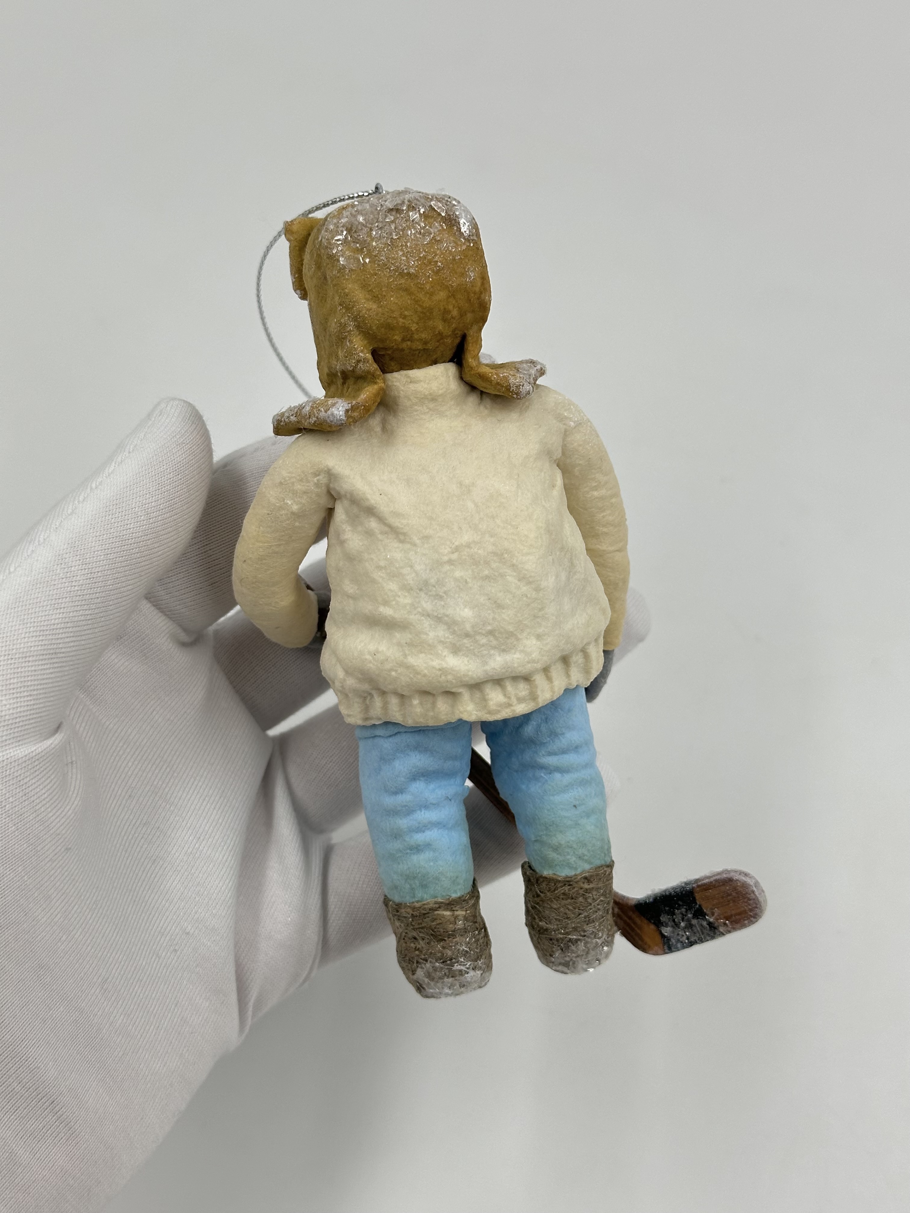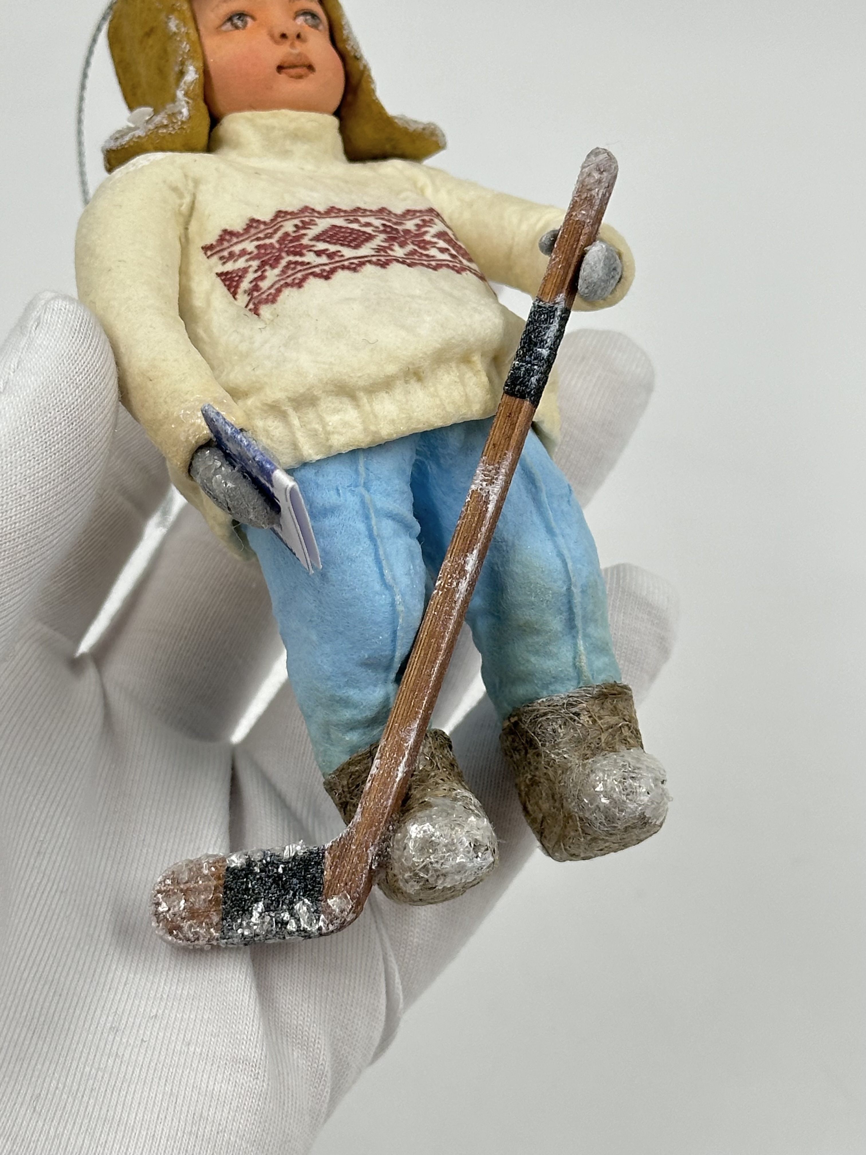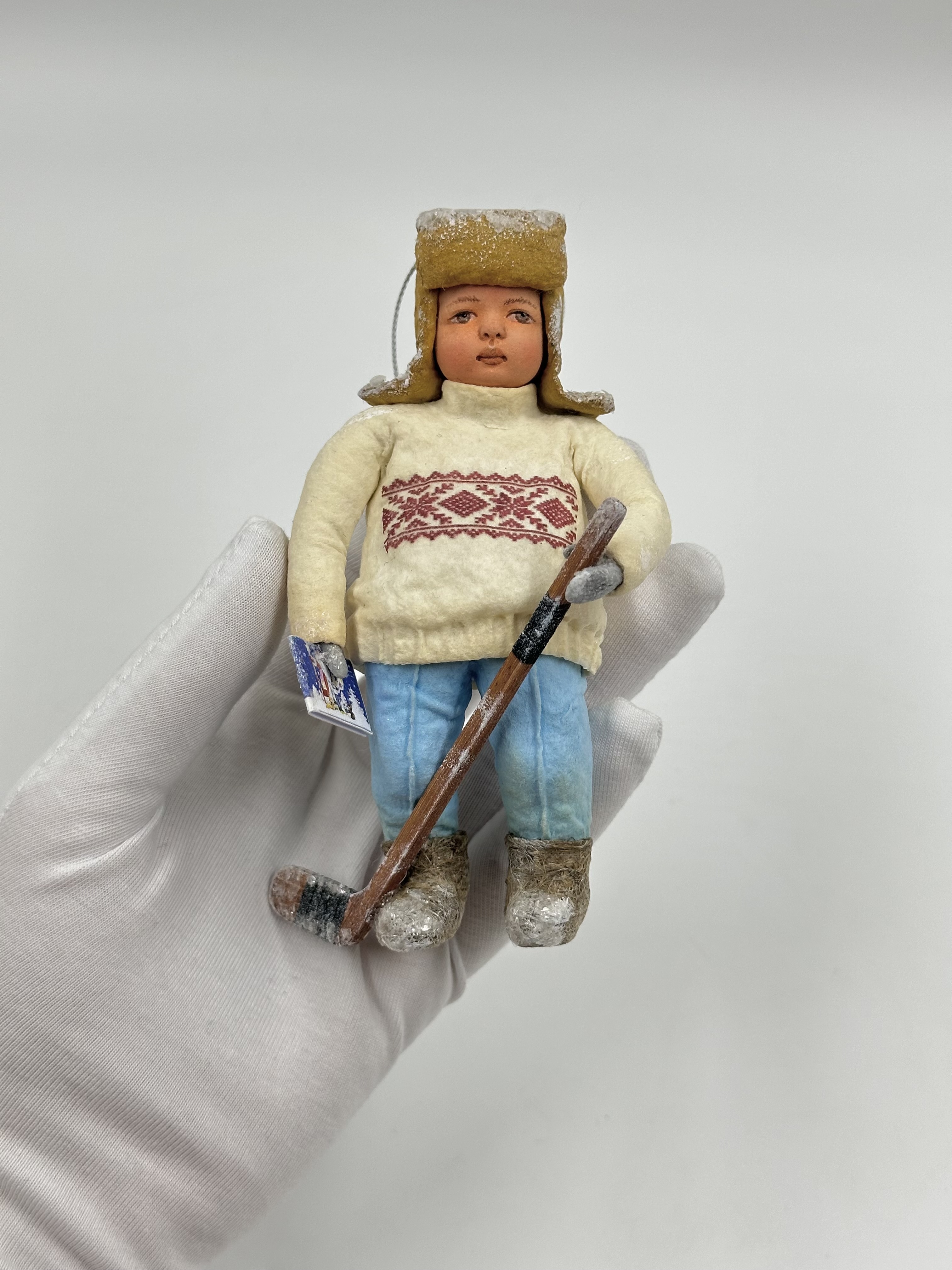 Ёлочное украшение в винтажном стиле «Мальчик с хоккейной клюшкой»