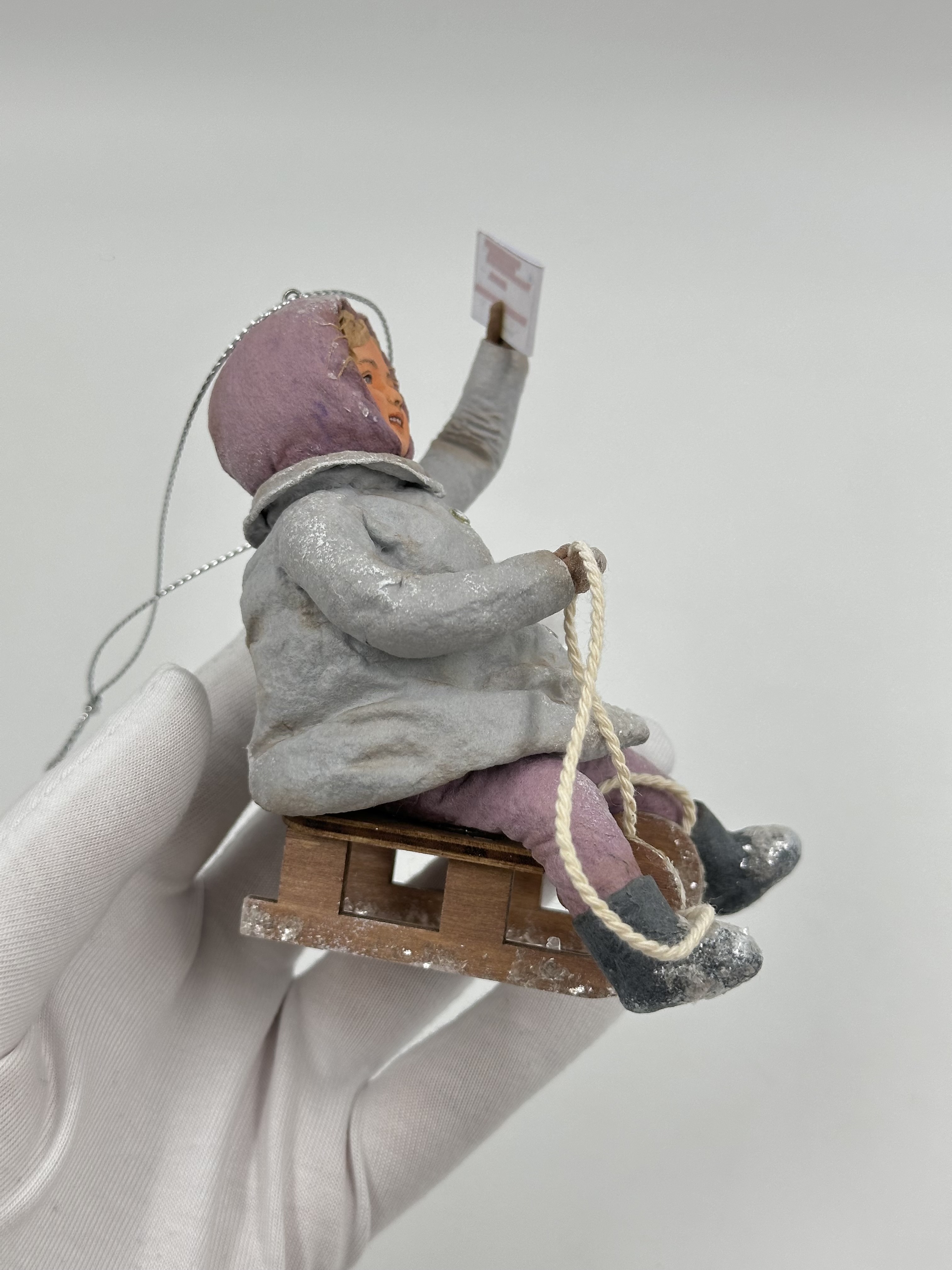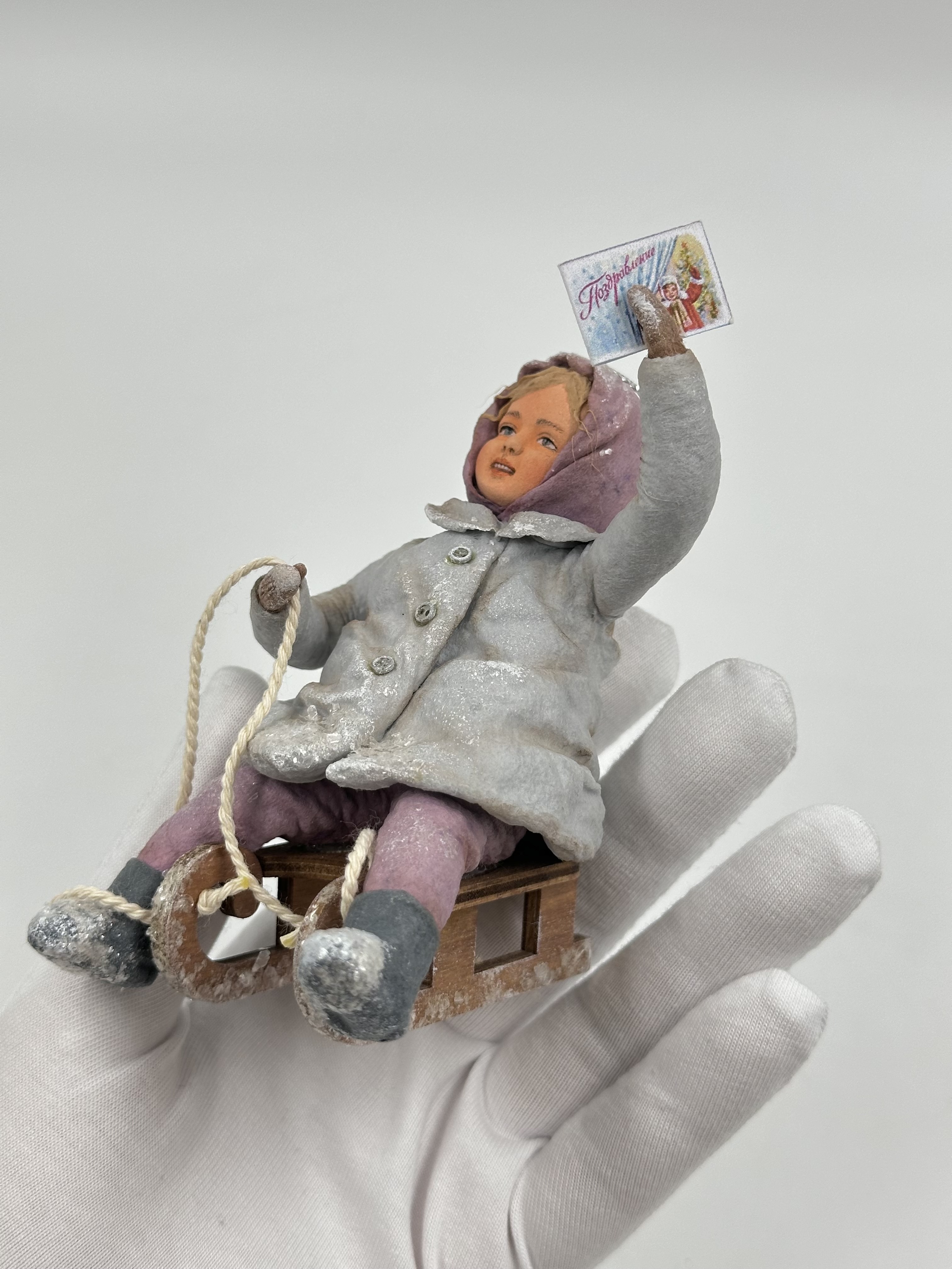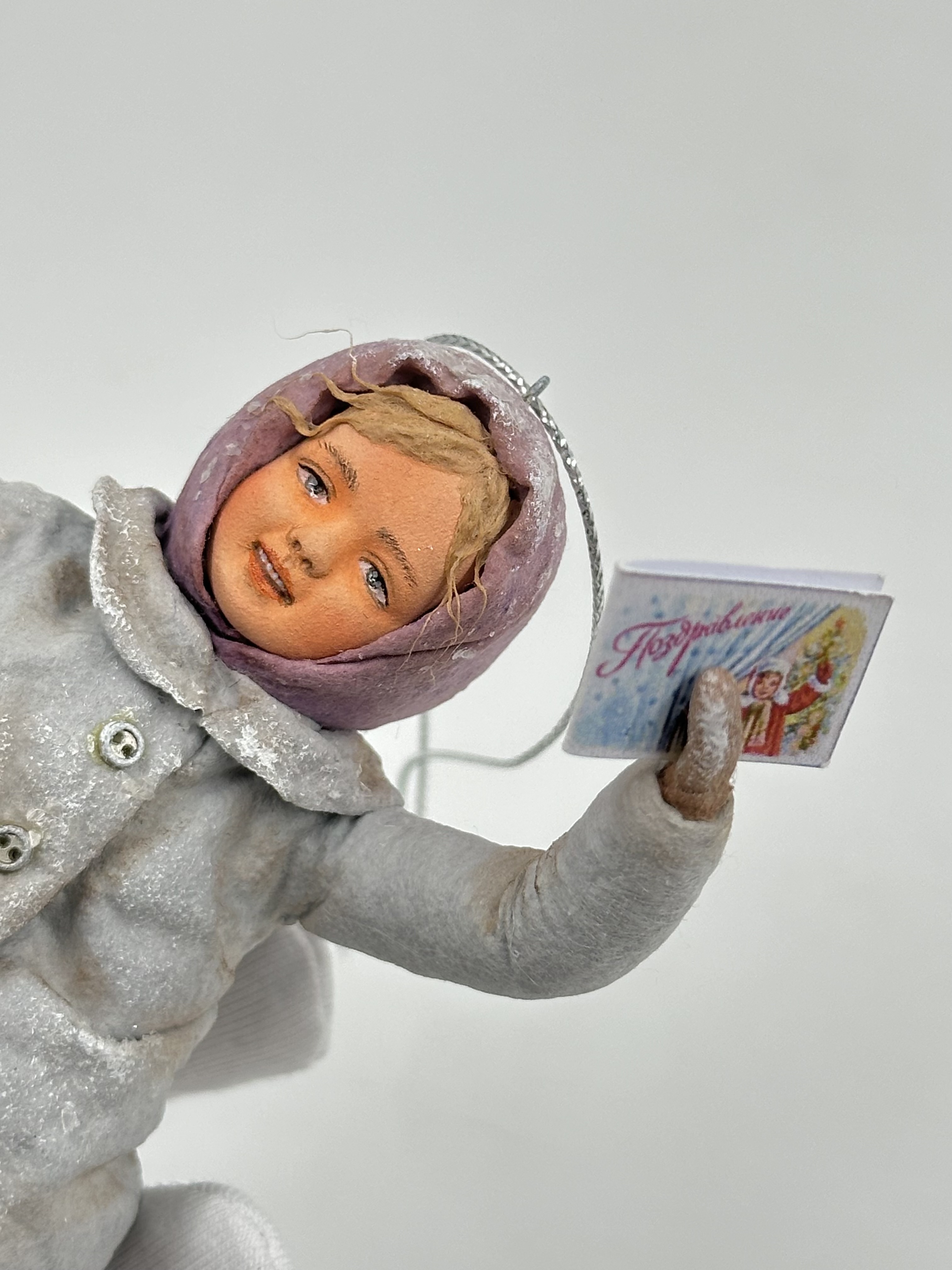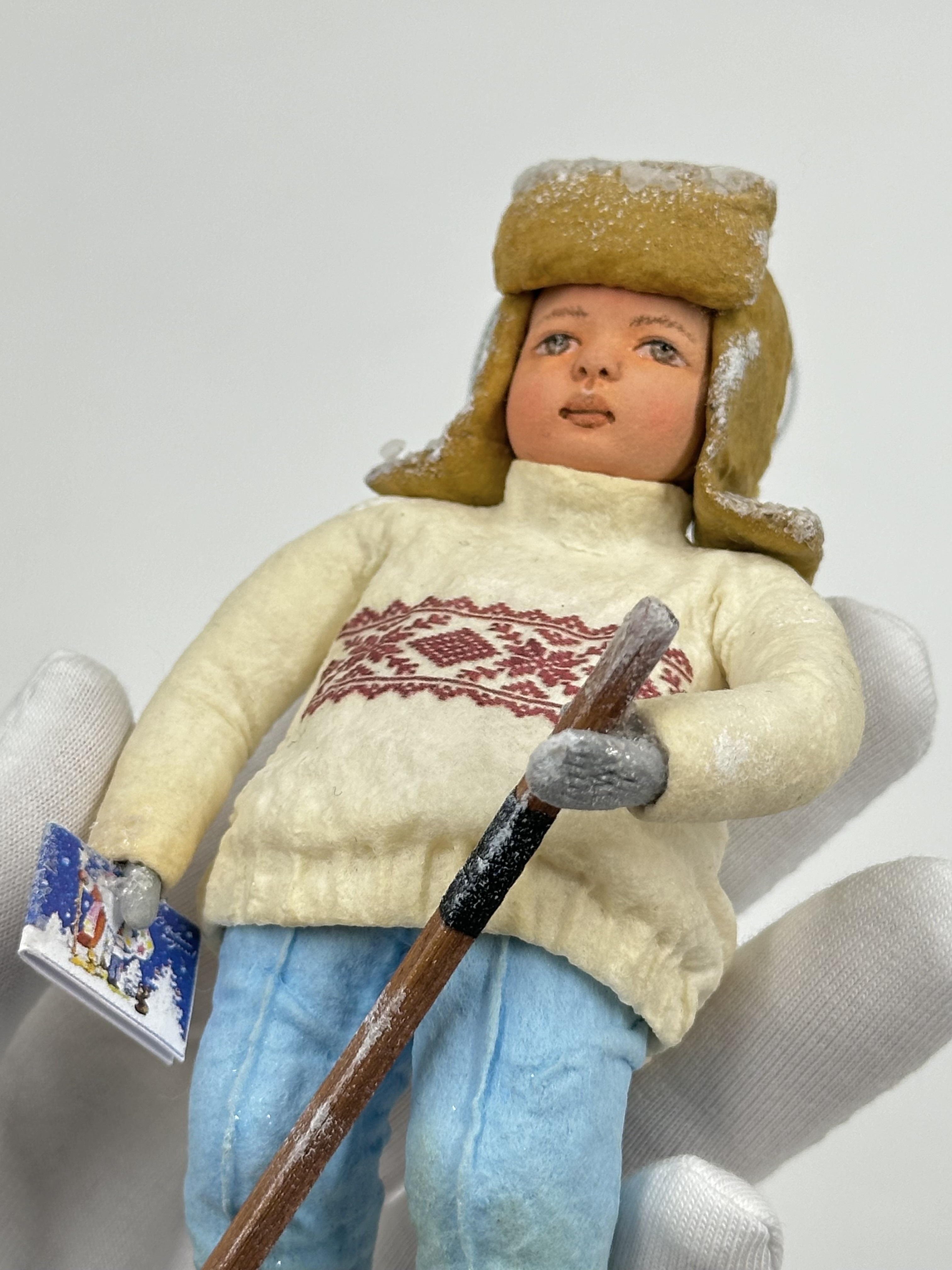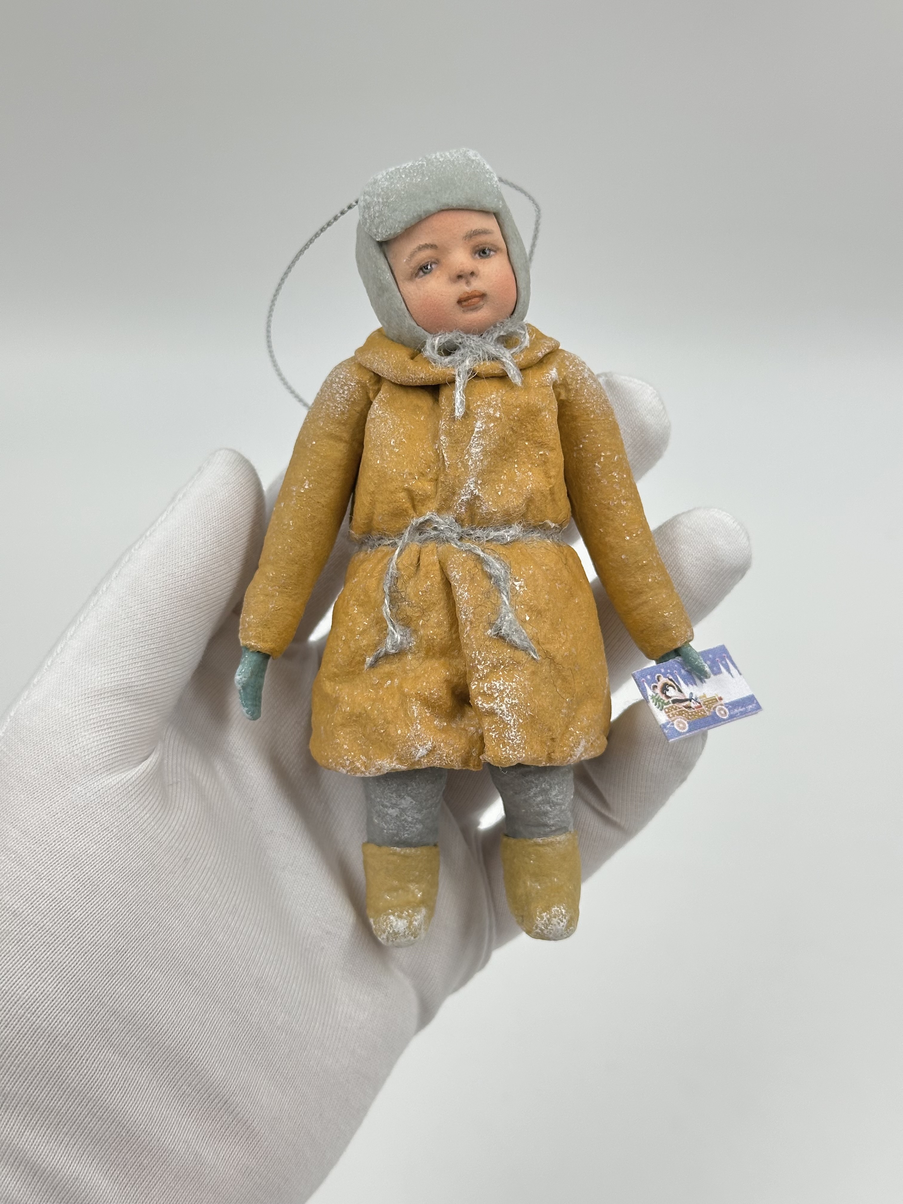 Ёлочное украшение в винтажном стиле «Мальчик с хоккейной клюшкой»