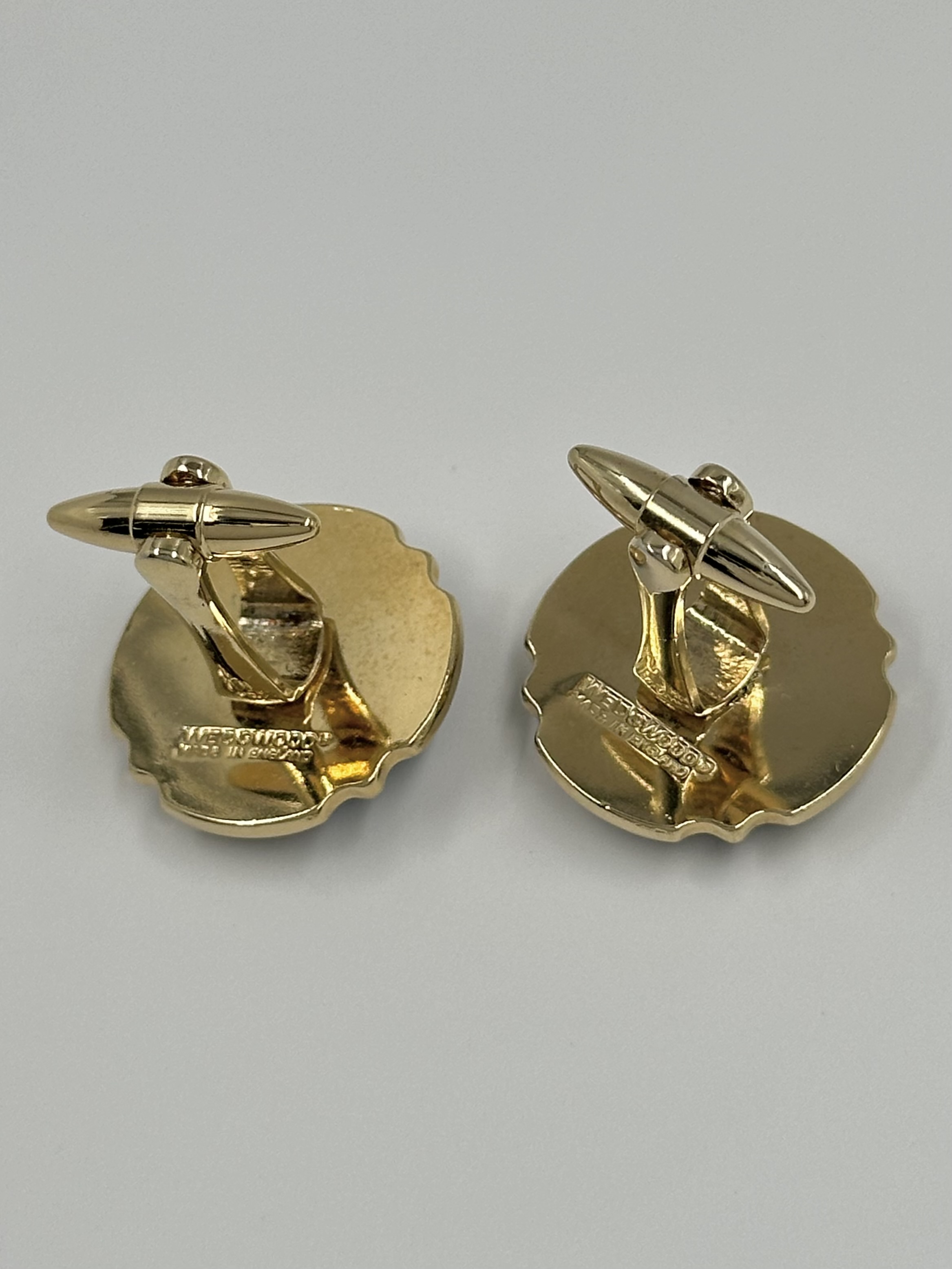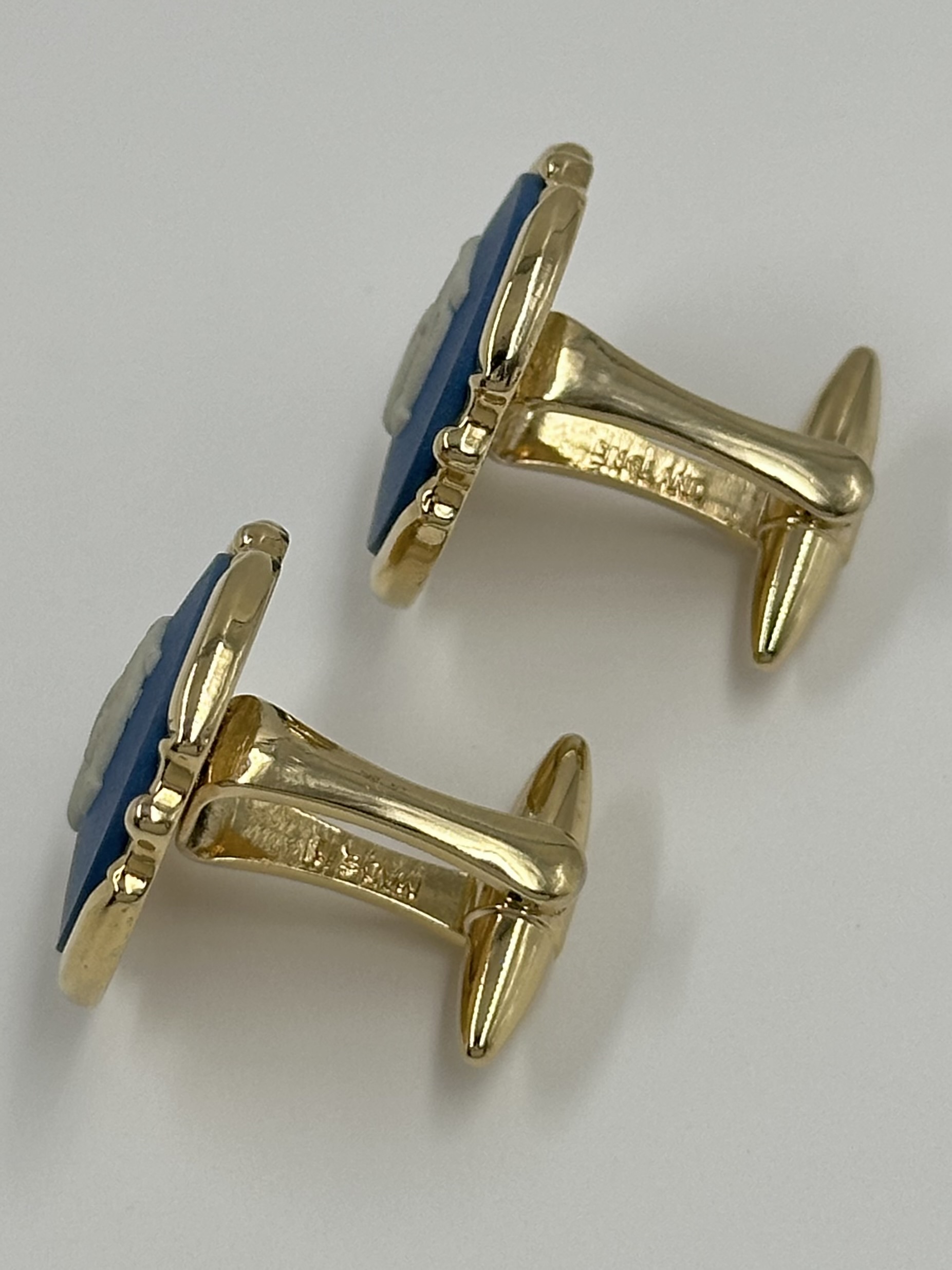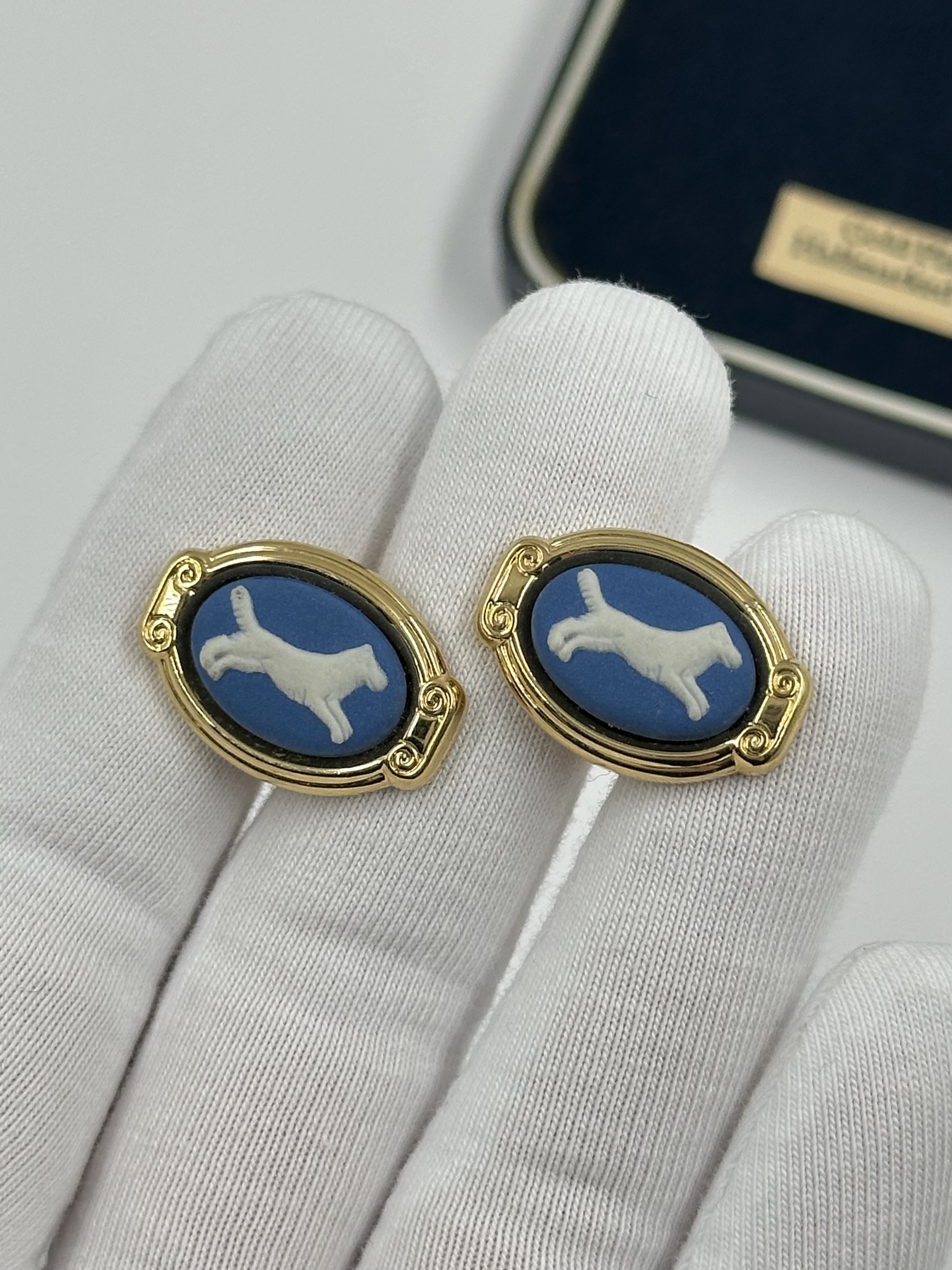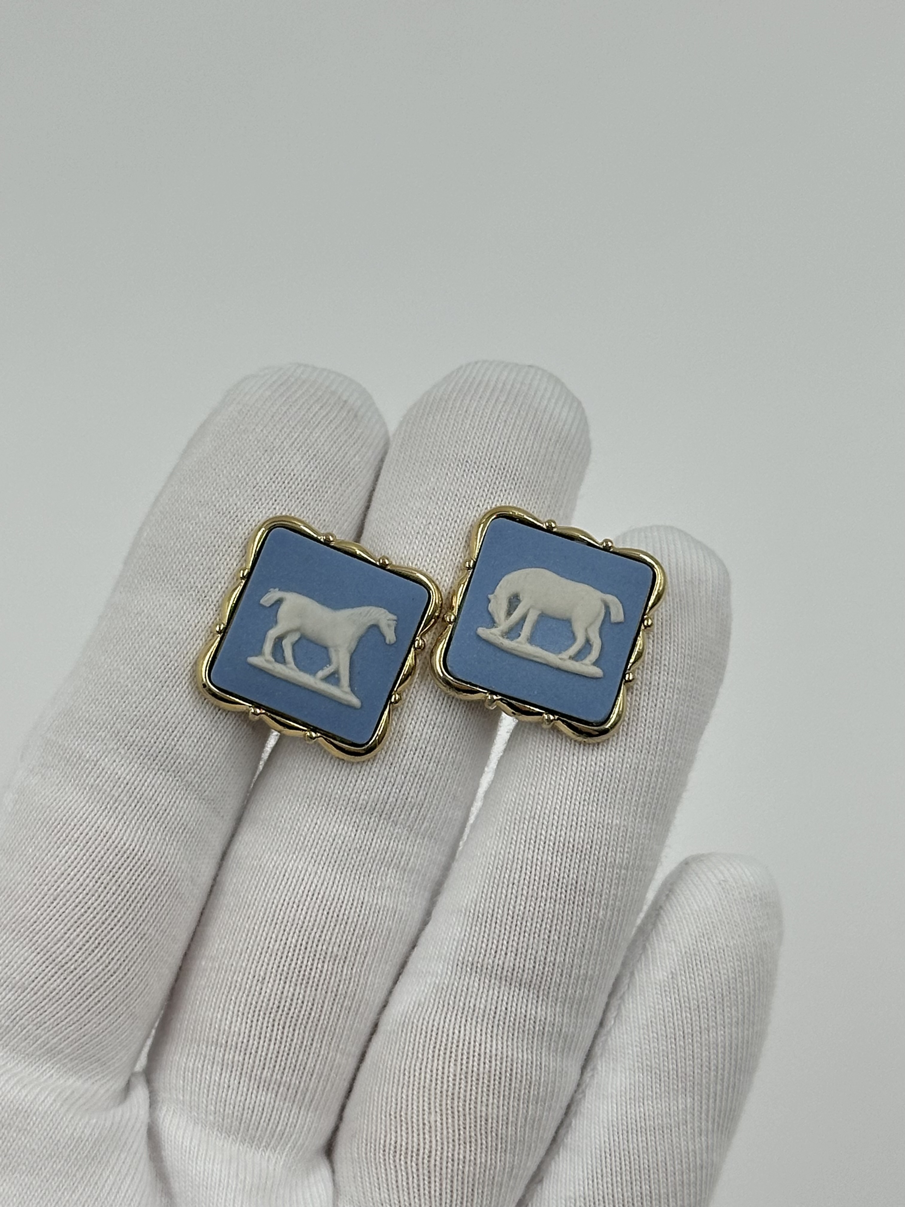 Бижутерный сплав, бисквитный фарфор. Присутствуют потертости покрытия.