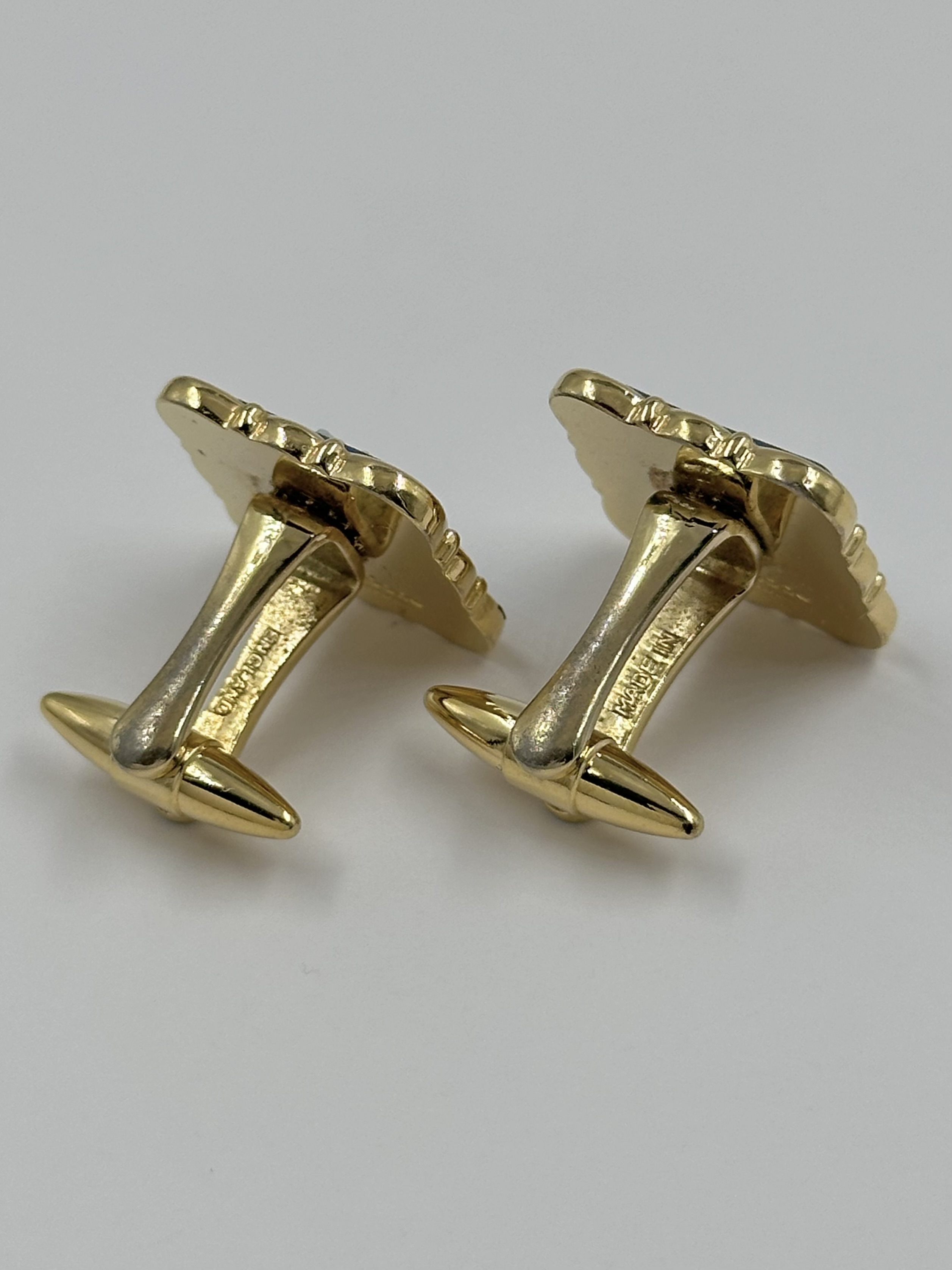 Бижутерный сплав, позолота. Присутствуют потертости с обратной стороны. Размер декоративной части 1,8см.