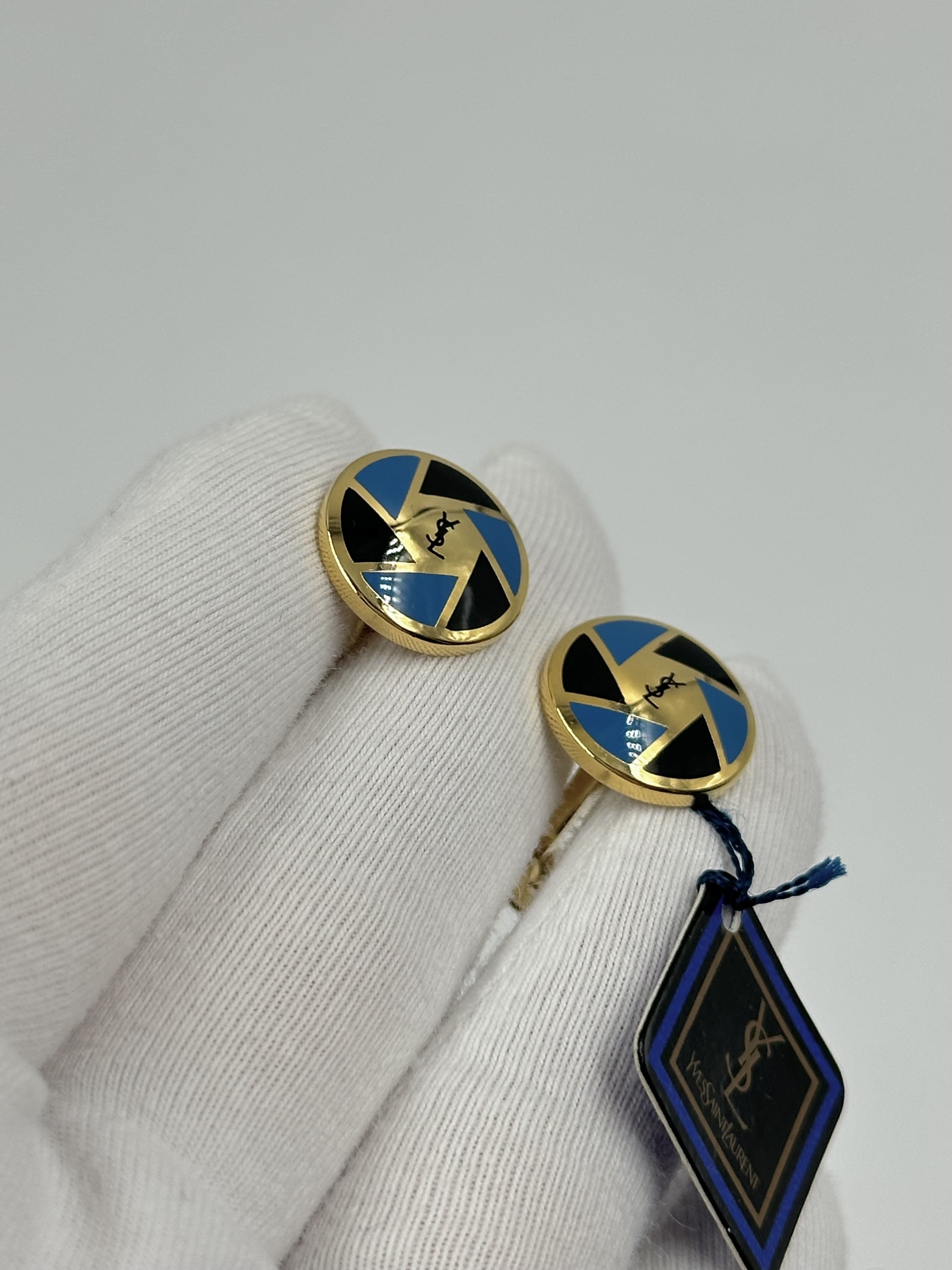 Бижутерный сплав, позолота, эмаль. Присутствуют небольшие точечные потемнения покрытия. Размер декоративной части 1,5см.