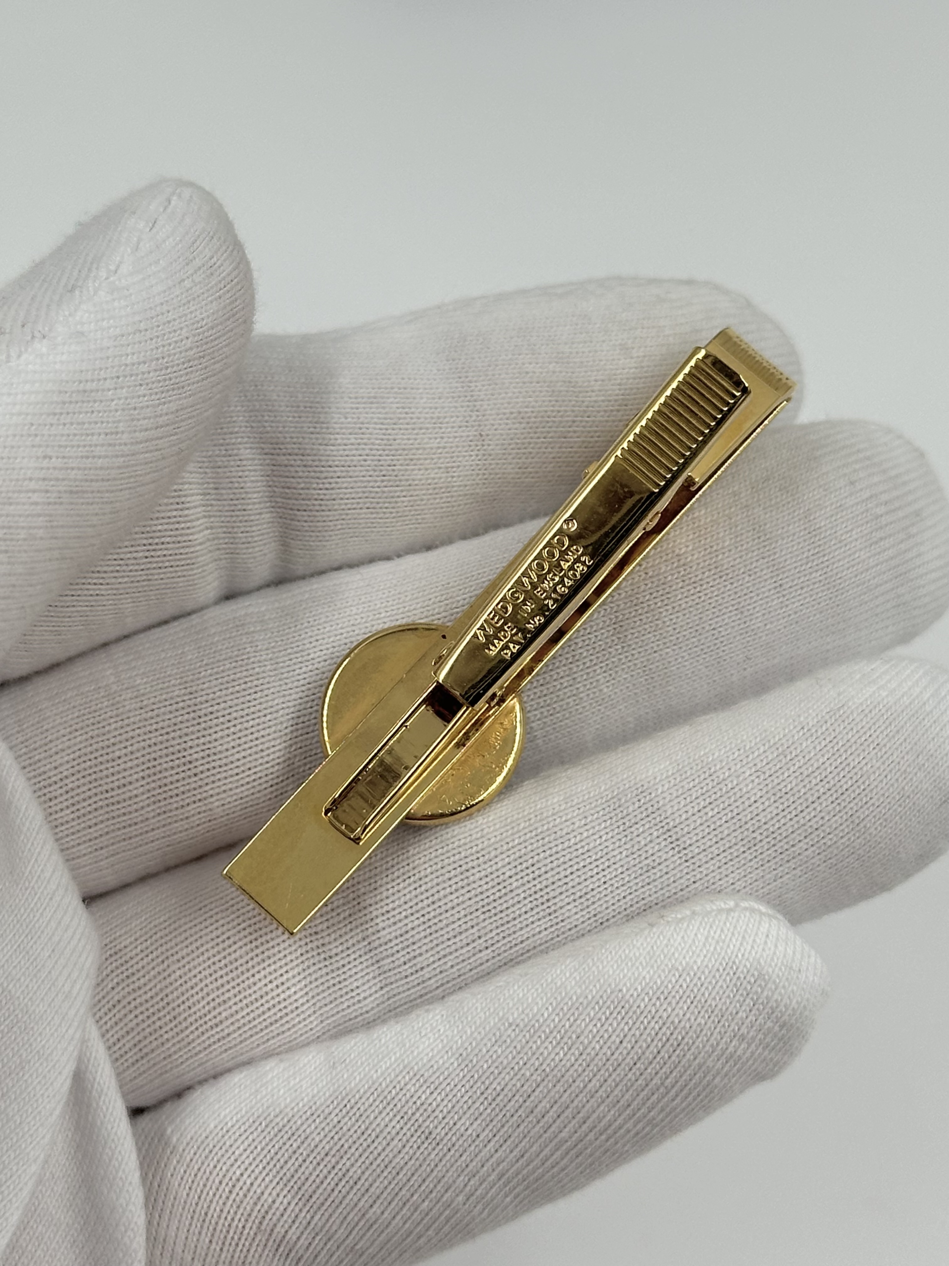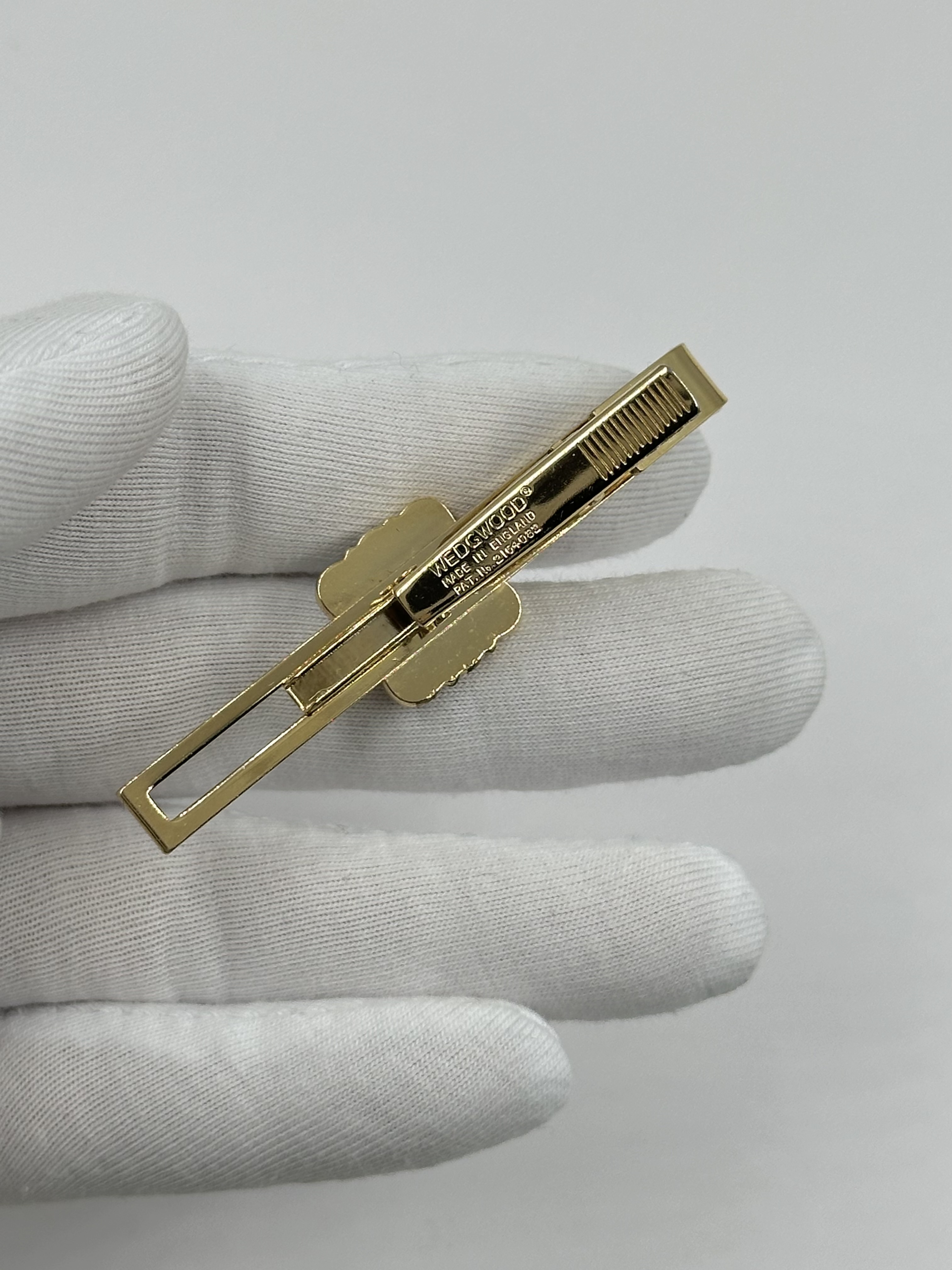Бижутерный сплав, позолота, фарфор.